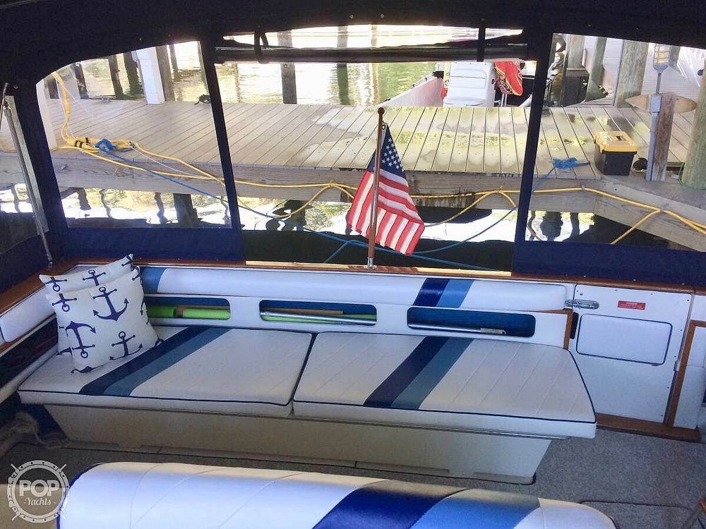 This vessel is located in Baltimore, Maryland and is in good condition. She is also equipped with twin Mercruiser engines that have 441 hours.