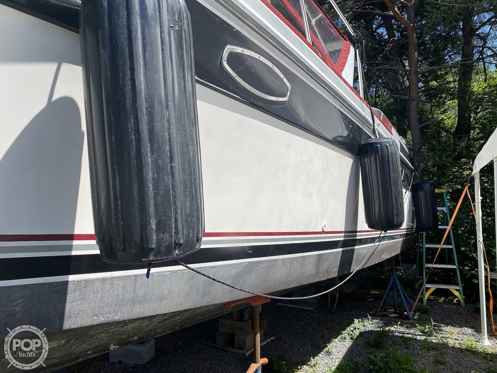 This vessel is located in Cape Vincent, New York and is in decent condition. She is also equipped with twin Crusader engines that have 1,017 hours.