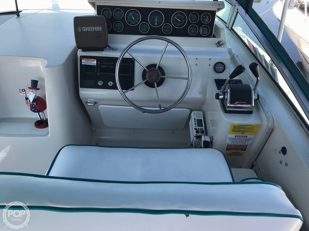 This boat is located in New Hamburg, New York and is in great condition. She is also equipped with twin Mercruiser engines that have 325 hours.