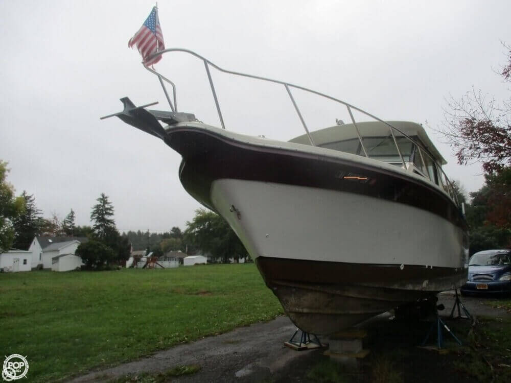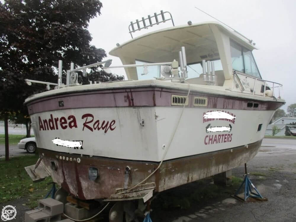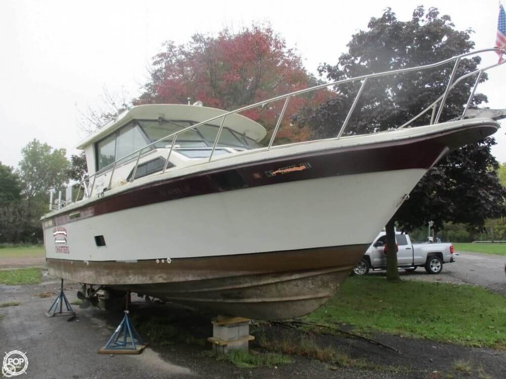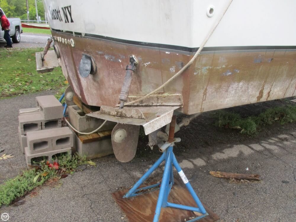This boat is located in Olcott, New York and is in decent condition. She is also equipped with twin Volvo Penta engines.