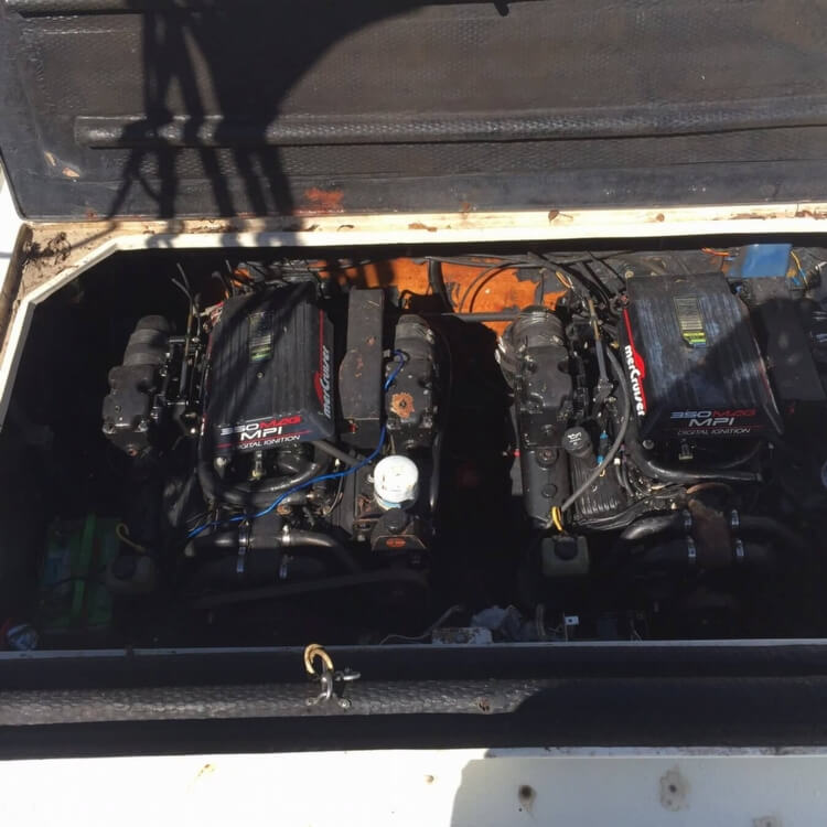 This vessel is located in Geismar, Louisiana and is in need of lots of work. She is also equipped with twin Mercruiser engines that have only 76 hours.