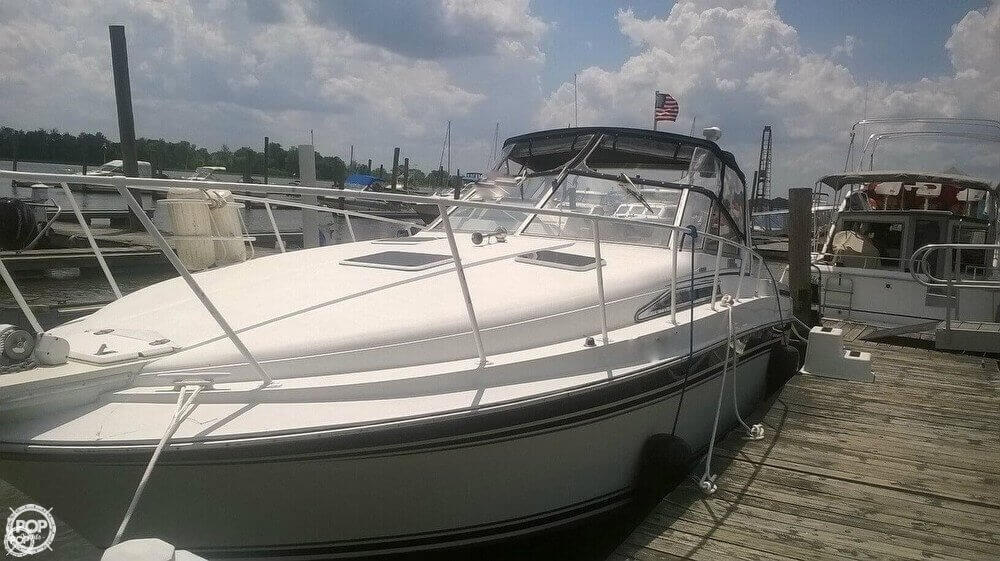 This boat is located in Philadelphia, Pennsylvania and is in great condition. She is also equipped with twin Mercruiser engines that have 680 hours.