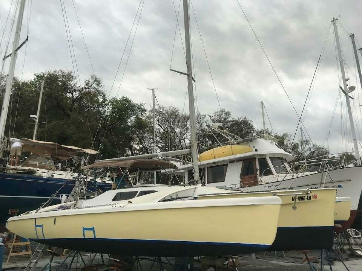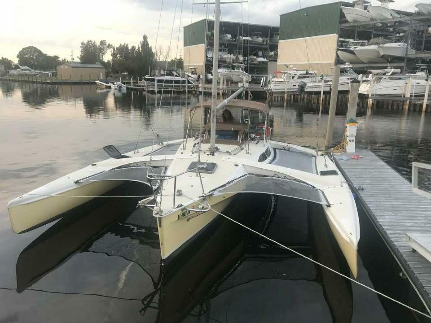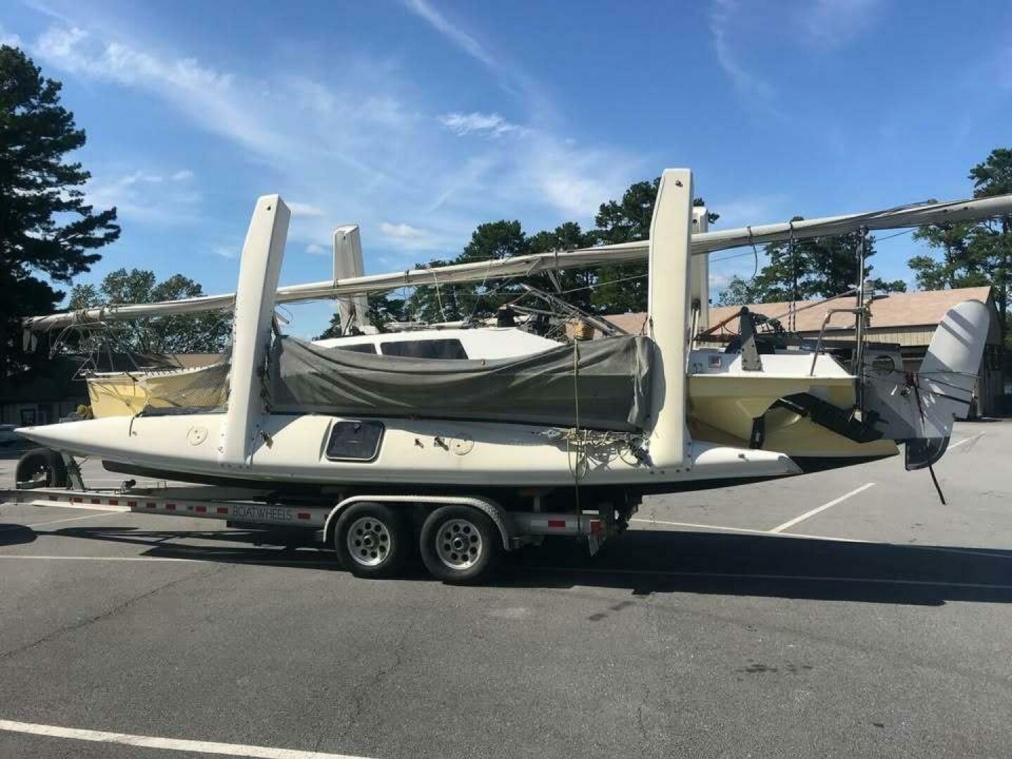 Experience the thrill of sailing with this legendary 1991 Corsair F-27, meticulously maintained and outfitted with numerous extras for both performance and comfort. This trimaran stands out with its eye-catching Awlgrip Fighting Yellow hull and is ready for your next adventure.This model was designed by Ian Farrier and commercially introduced in 1986 after the prototype first sailed in May 1985. It has a length overall of 27.08 ft , a waterline length of 26.25 ft , displaces 2,600 lb Corsair 27 This model was designed by Ian Farrier and built between 1986 and 1997Key Features:* Distinctive Awl grip Fighting Yellow Hull* Harken Roller Furler* Oversized Anchor Rollers* Suzuki 9.9 EFI Motor with Power Start, Power Tilt/Trim, and output alternator* Custom Canvas Enclosure* Bimini Top* Chart Plotter (GARMIN-echomap-CHIRP-94sv) with Ocean and Lake Charts* Modern Cassette Head* Trailer: Boat wheels, tandem axle with Serg-o-matic brakes on both axles 10,400lbs* New Hatches* Starboard fold-down ladder* Auto-pilot* Sleeps 5* Top speed is around 20 knots* Dacron main included* Upgraded oval mast with double spreaders and bowsprit-Will support a screecher (included)-Will support an asymmetric spinnaker (included)-Will support a square top main (not included)* In addition to the dacron genoa (currently installed on roller-furler), a storm jim and racing jib are also included.History & Upgrades:The owner acquired this remarkable boat after a thrilling multihull race in Sarasota, Florida. The renowned Steve Marsh then thoroughly checked and upgraded it at the Finish Line of the Treasure Coast in Stuart, Florida. At this time a Harken roller furler and Dacron sails were added plus a comprehensive bottom job.This Corsair F-27 is more than just a sailboat; it's a proven, fast, and blue-water-capable vessel that is also trailerable—simply amazing. This boat has many cherished memories and is ready to create new ones with its next owner. Whether you're a seasoned sailor or looking to start your sailing journey, this trimaran offers unmatched performance and comfort.Don't miss the opportunity to own this legendary Ian Farrier-designed, constructed piece of sailing history. Contact us today to schedule a viewing and see why this Corsair F-27 is the perfect choice for your sailing adventures.