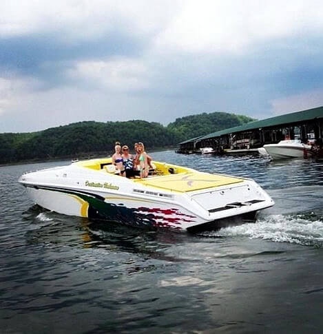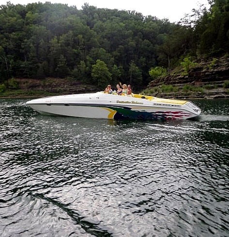 This vessel is located in Jamestown, Kentucky and is in great condition. She is also equipped with triple Mercruiser engines.