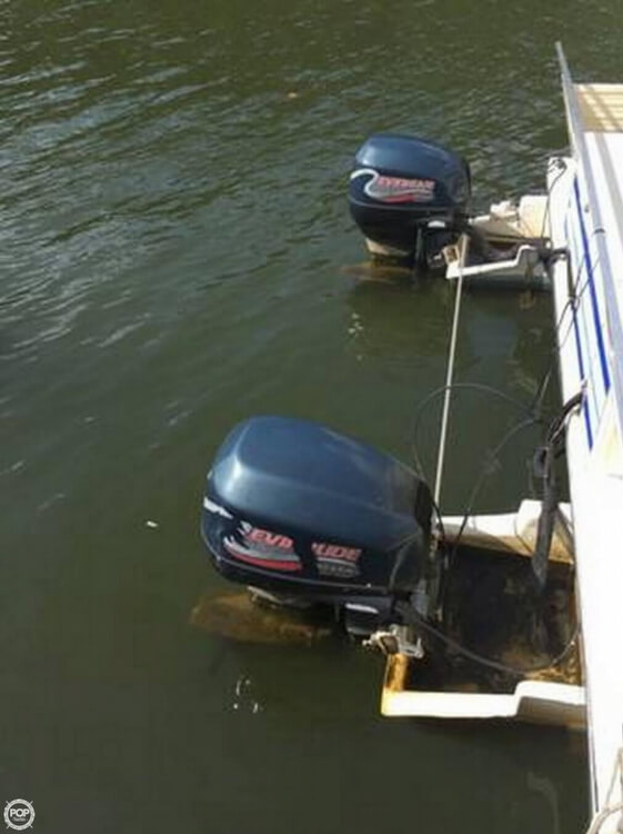 READY TO GO!! 44' long x 14' wide with Twin 90 hp Evinrude outboard engines Sleeps 8 Full head with shower This has been a very well maintained boat!