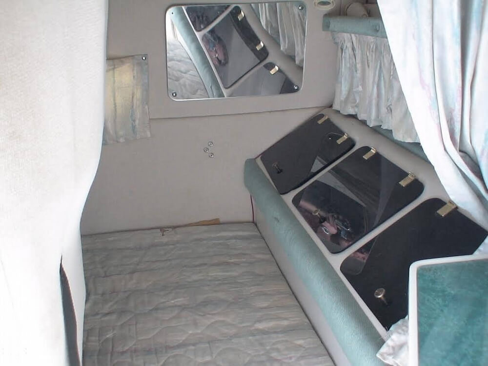 This boat is located in Great Falls, Virginia and is in need of some work. She is also equipped with twin Mercruiser engines.