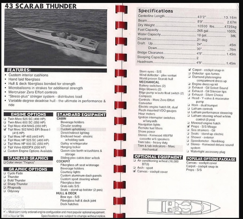 If you are in the market for a high performance boat, look no further than this 1994 Scarab Thunder 43, just reduced to $73,000 (offers encouraged).