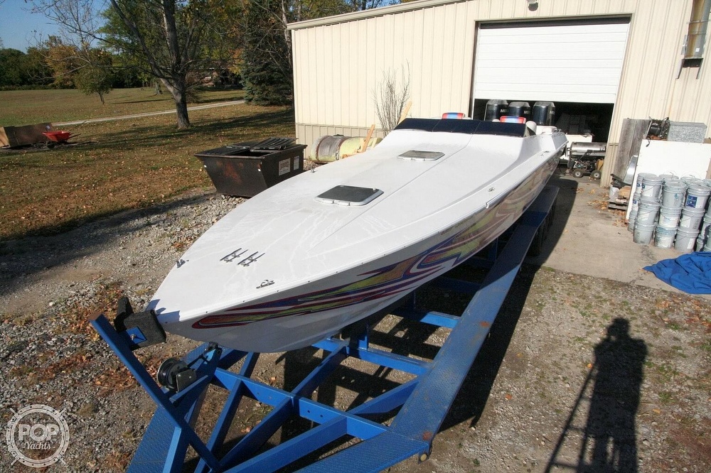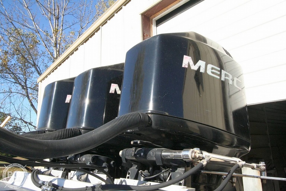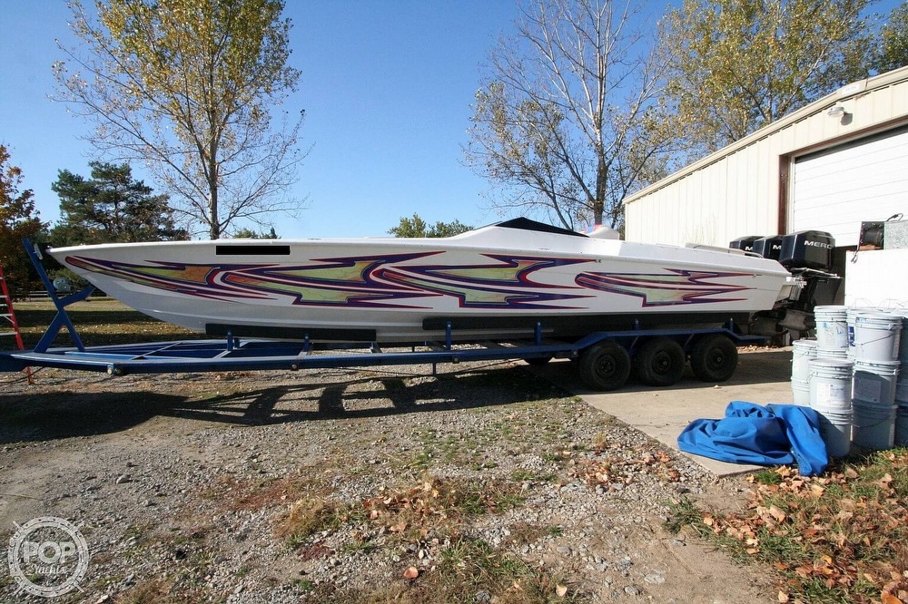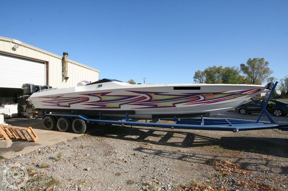 Speeds up to 90 MPH on this infamous powerplay hull with triple outboards!!!