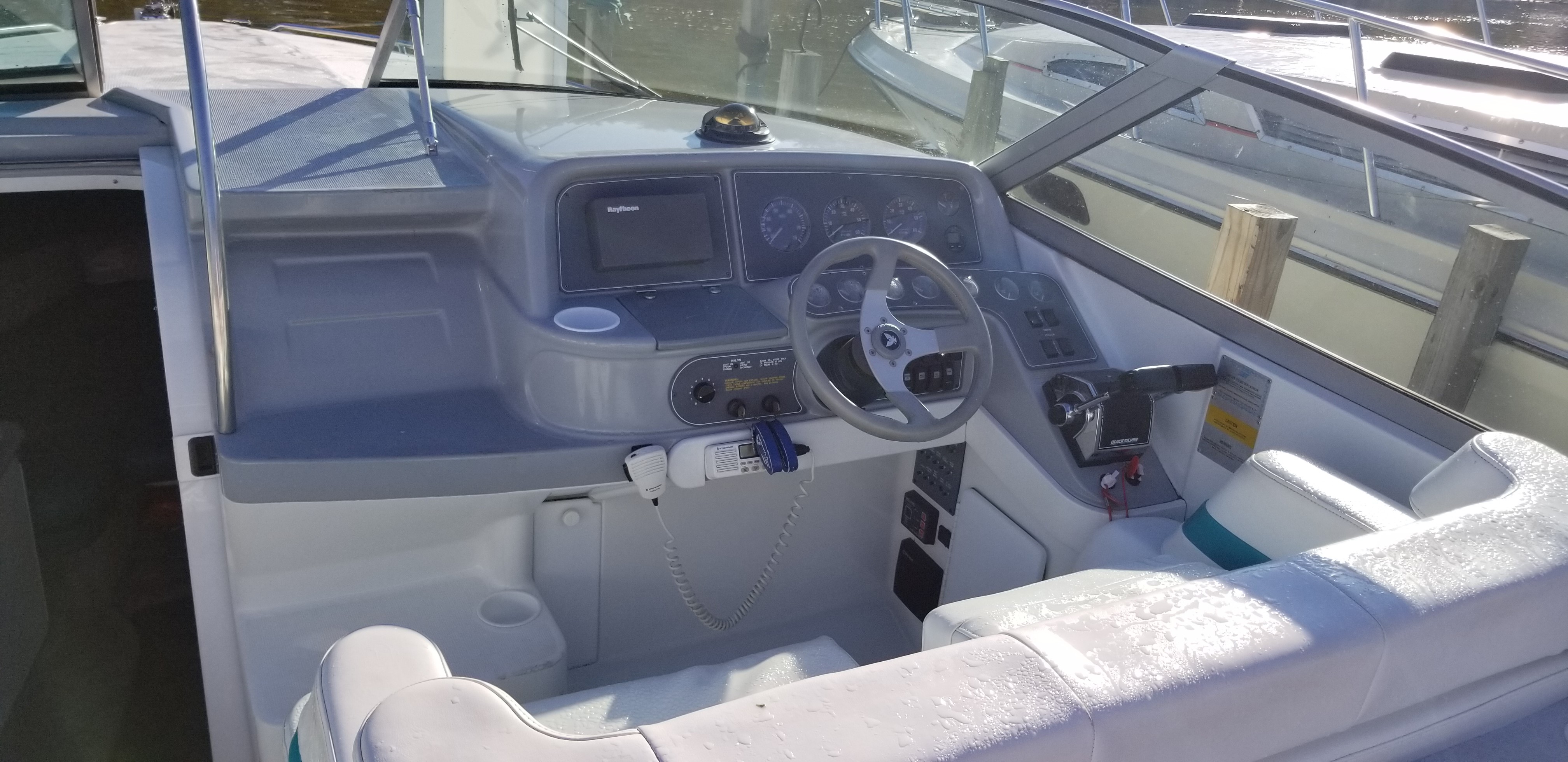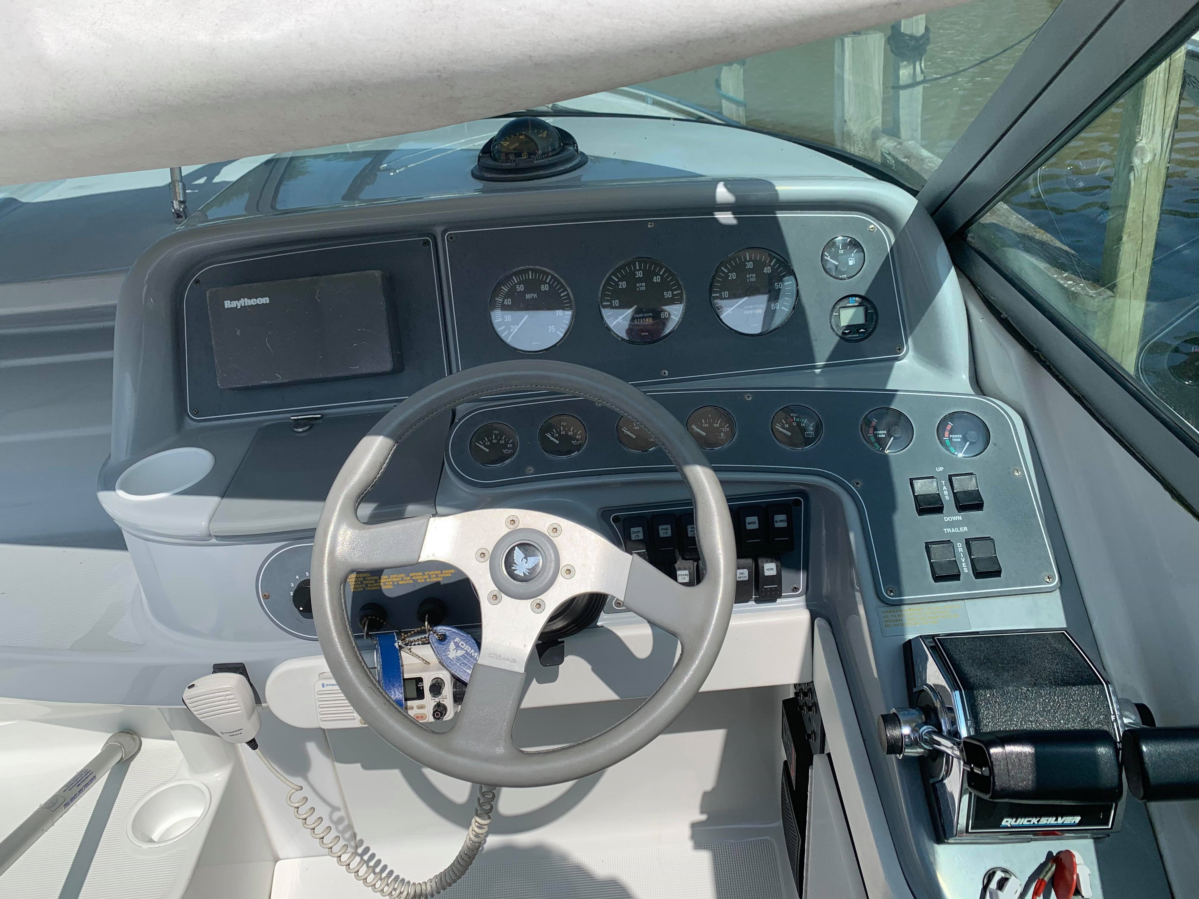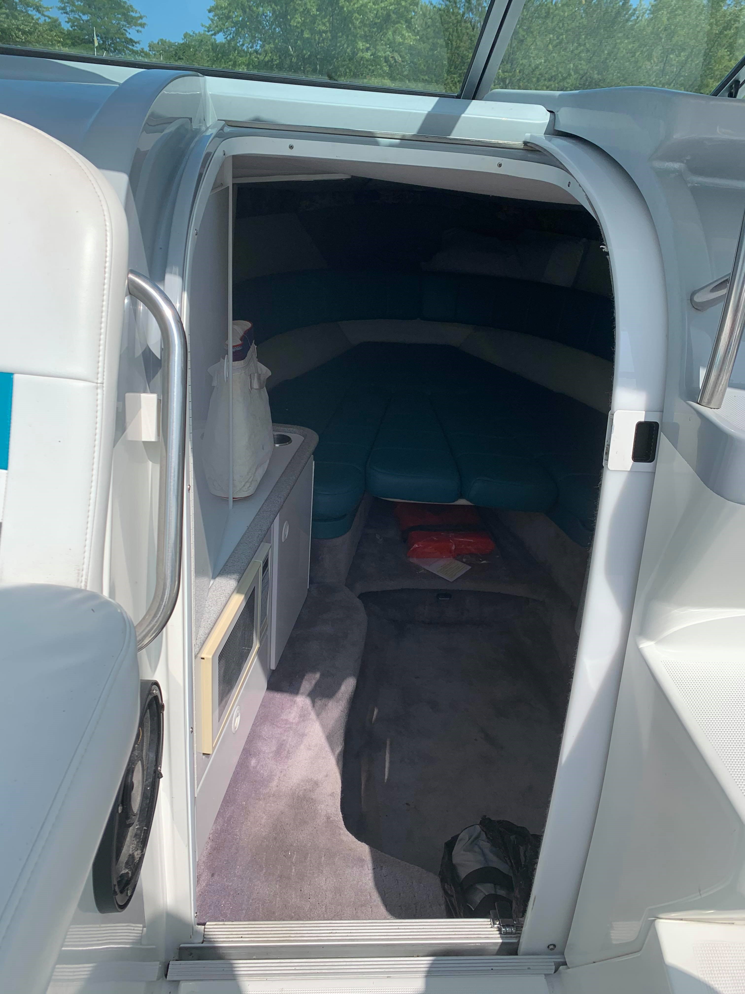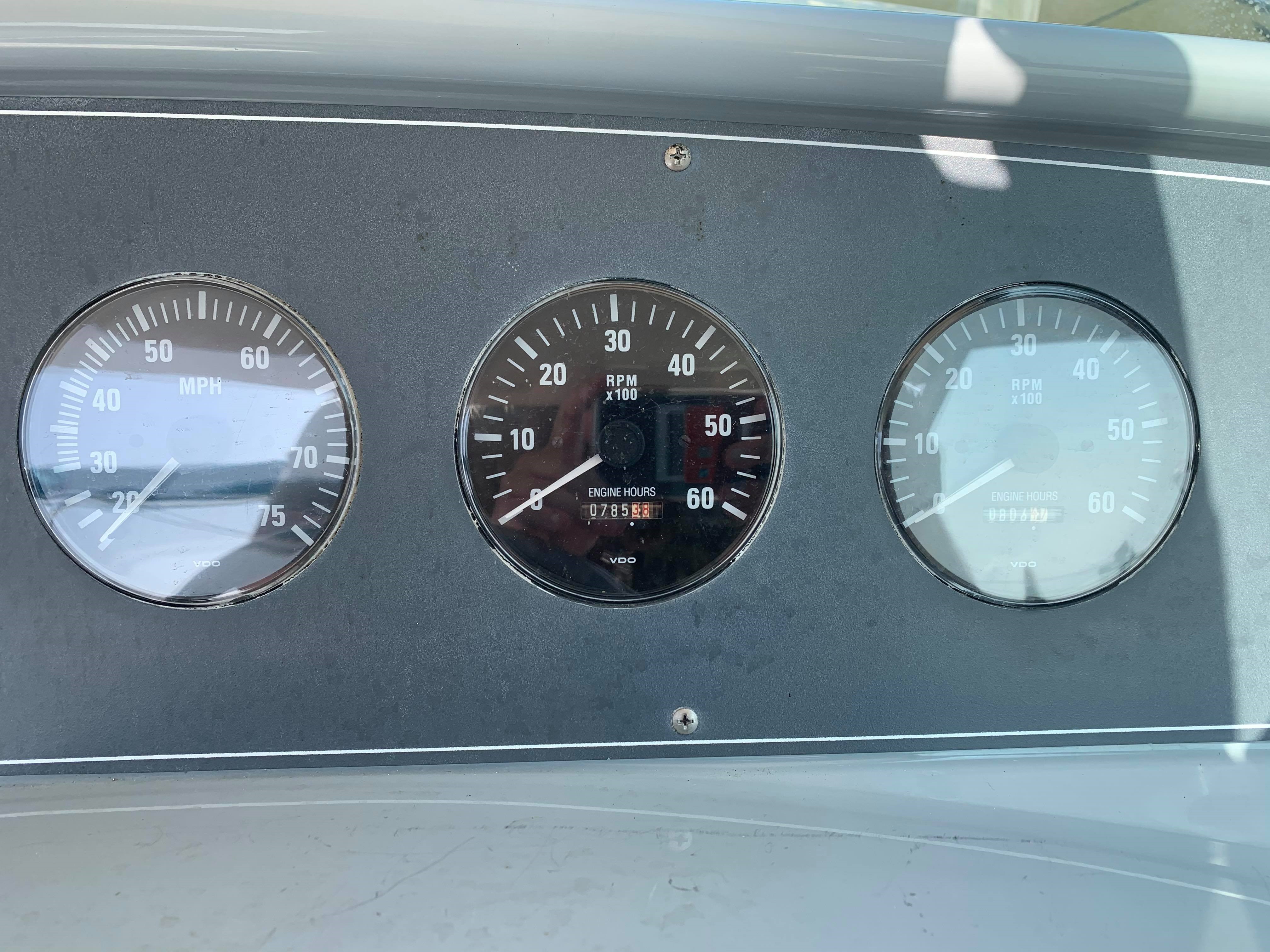 800 hours on boat,looks and runs great,twin 7.4 merc's with Bravo 3 drives,run 42mph at 3000 rpm, all white hull, white bottom paint,interior looks great. NO TRAILER.