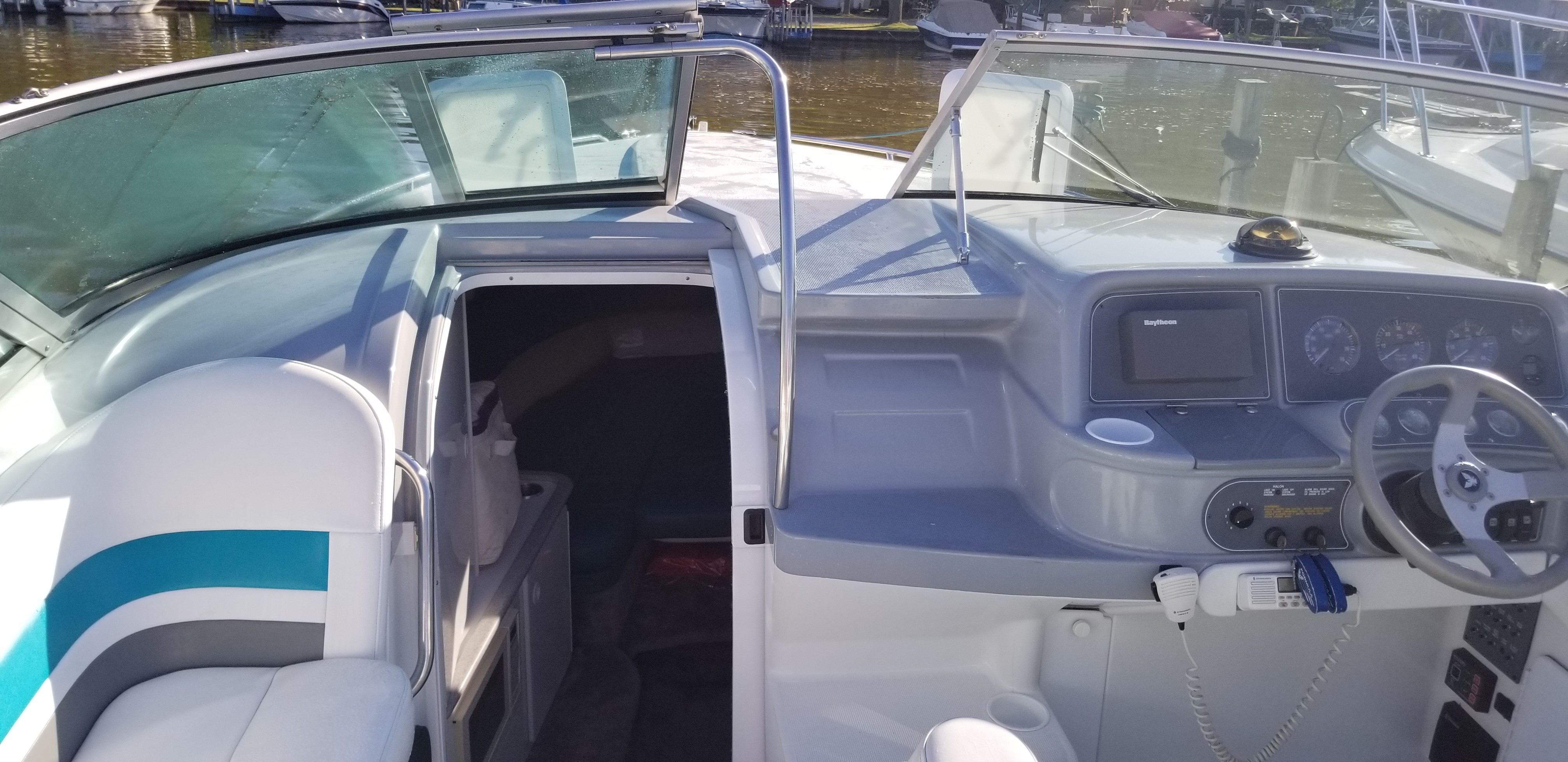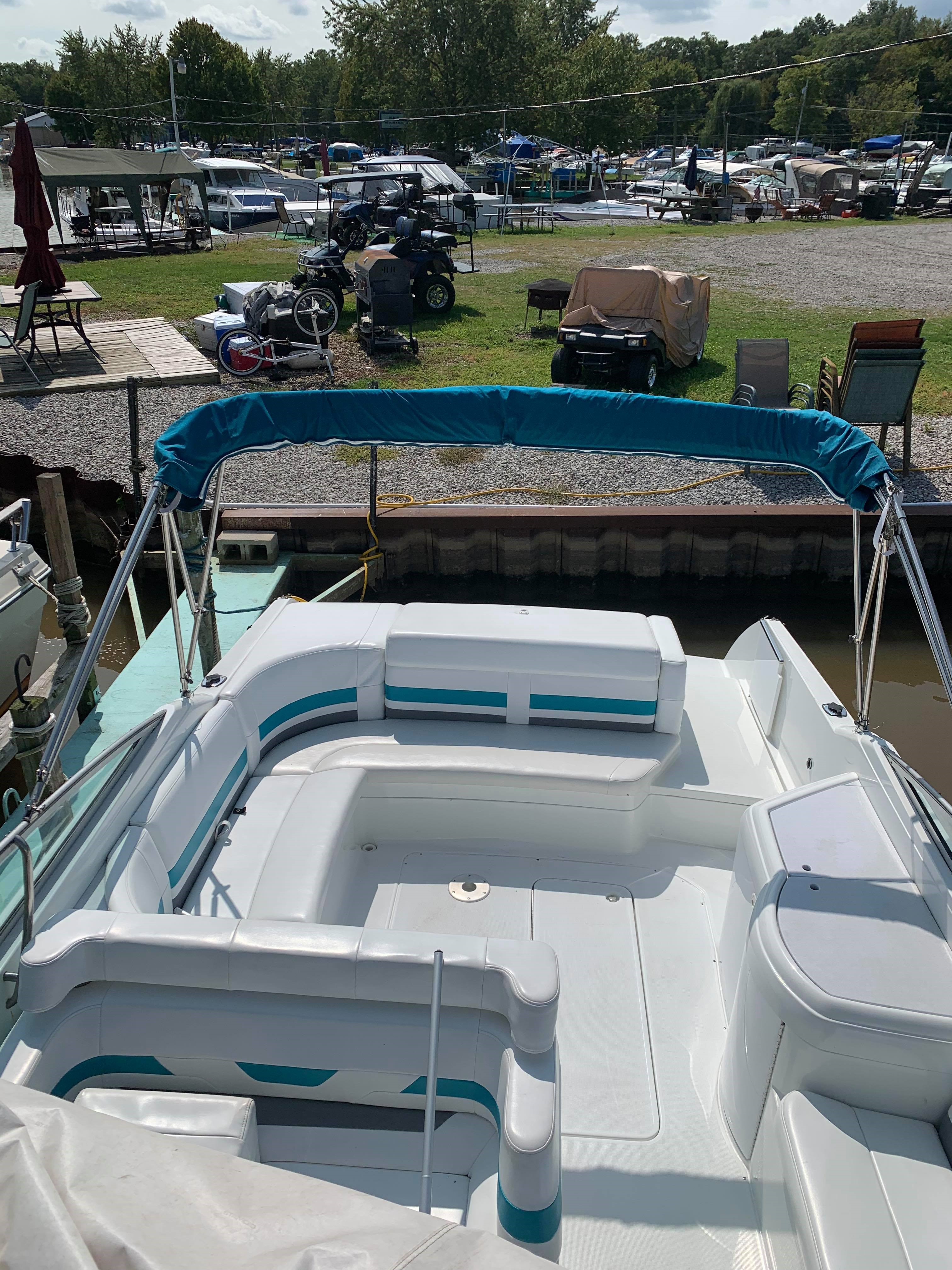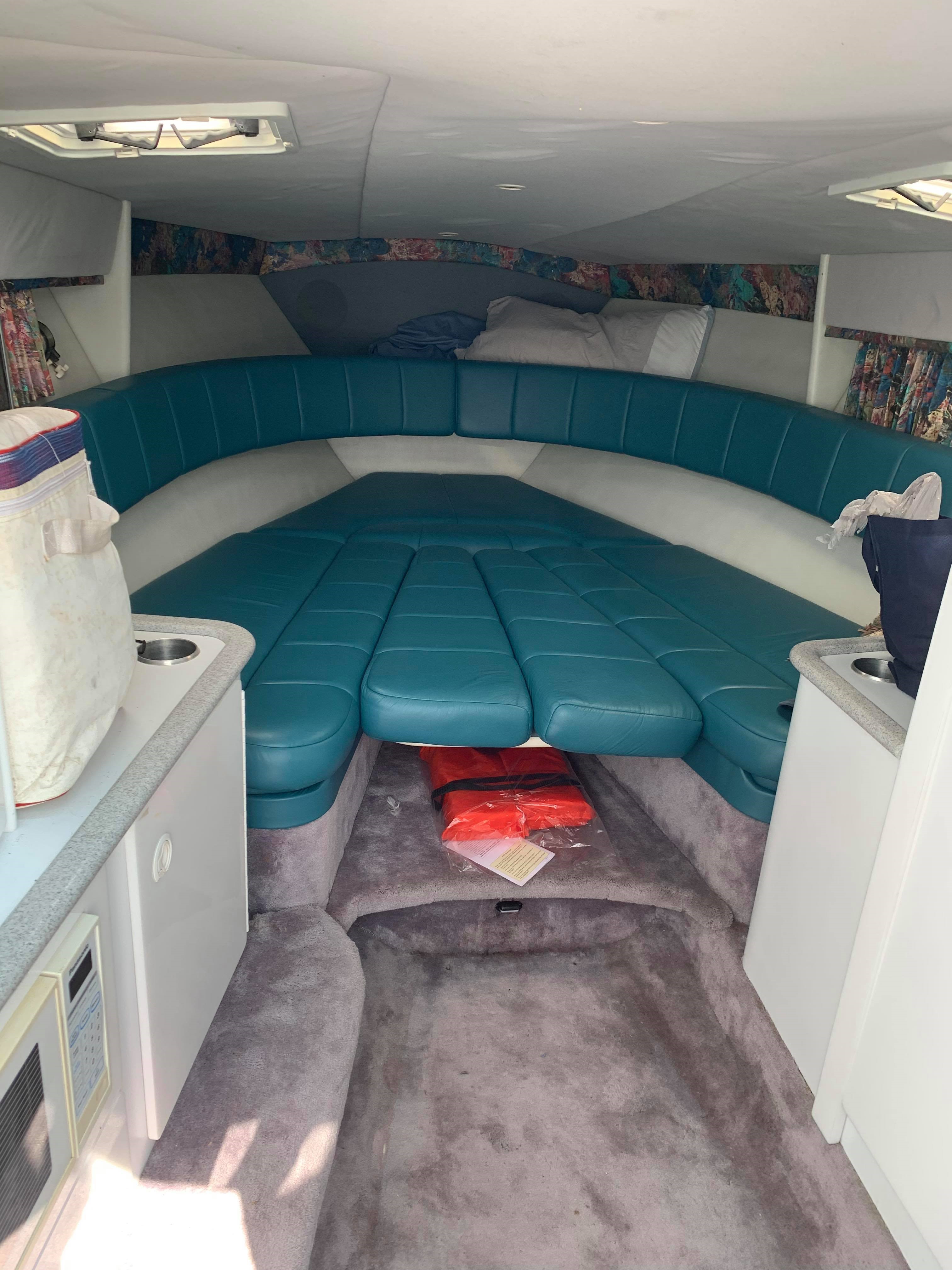 800 hours on boat,looks and runs great,twin 7.4 merc's with Bravo 3 drives,run 42mph at 3000 rpm, all white hull, white bottom paint,interior looks great. NO TRAILER.