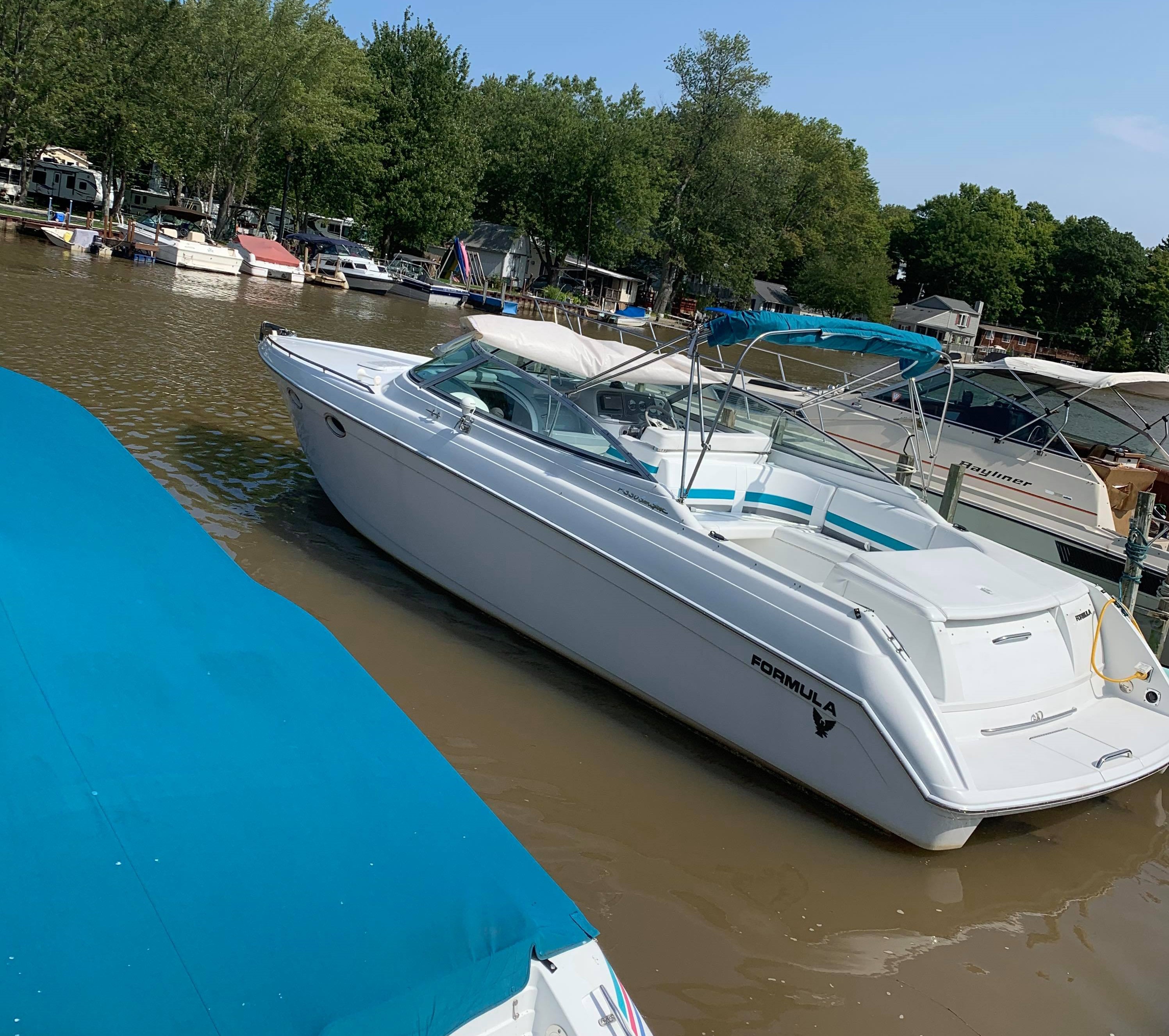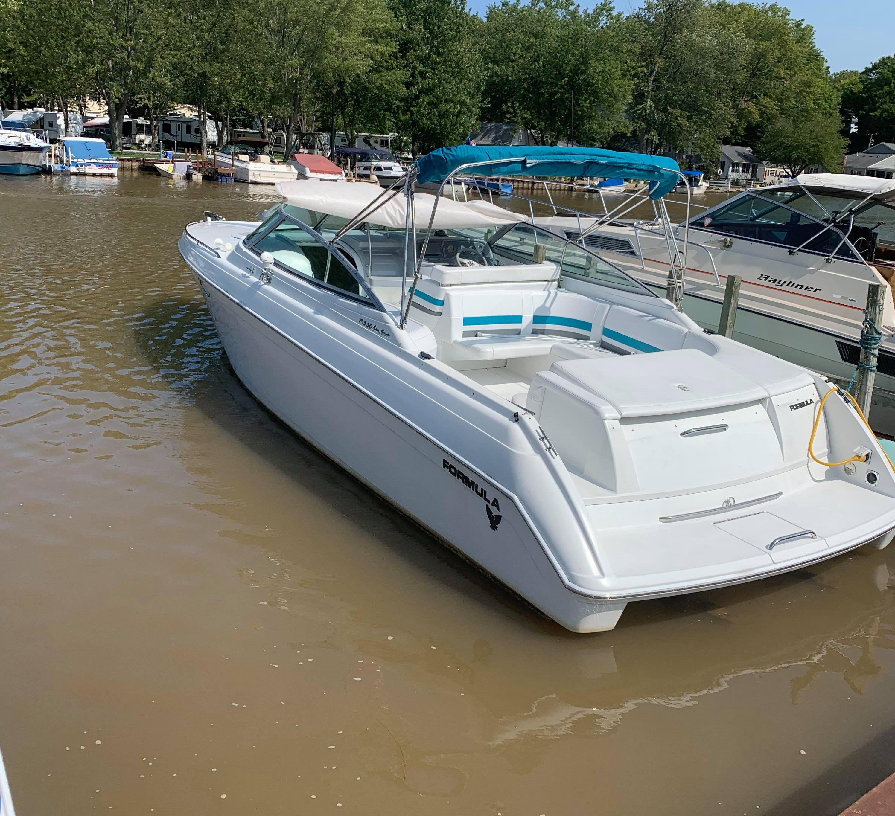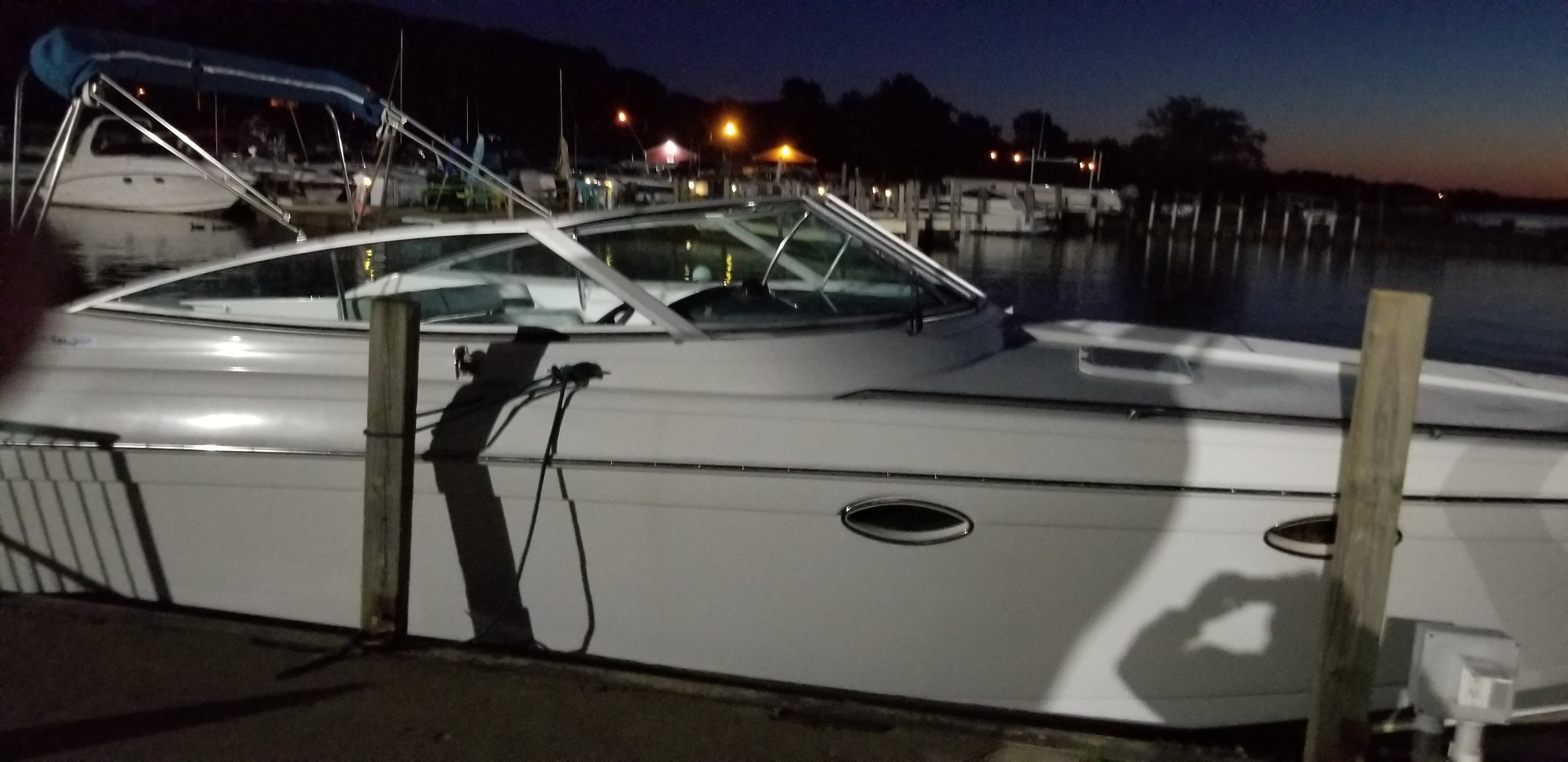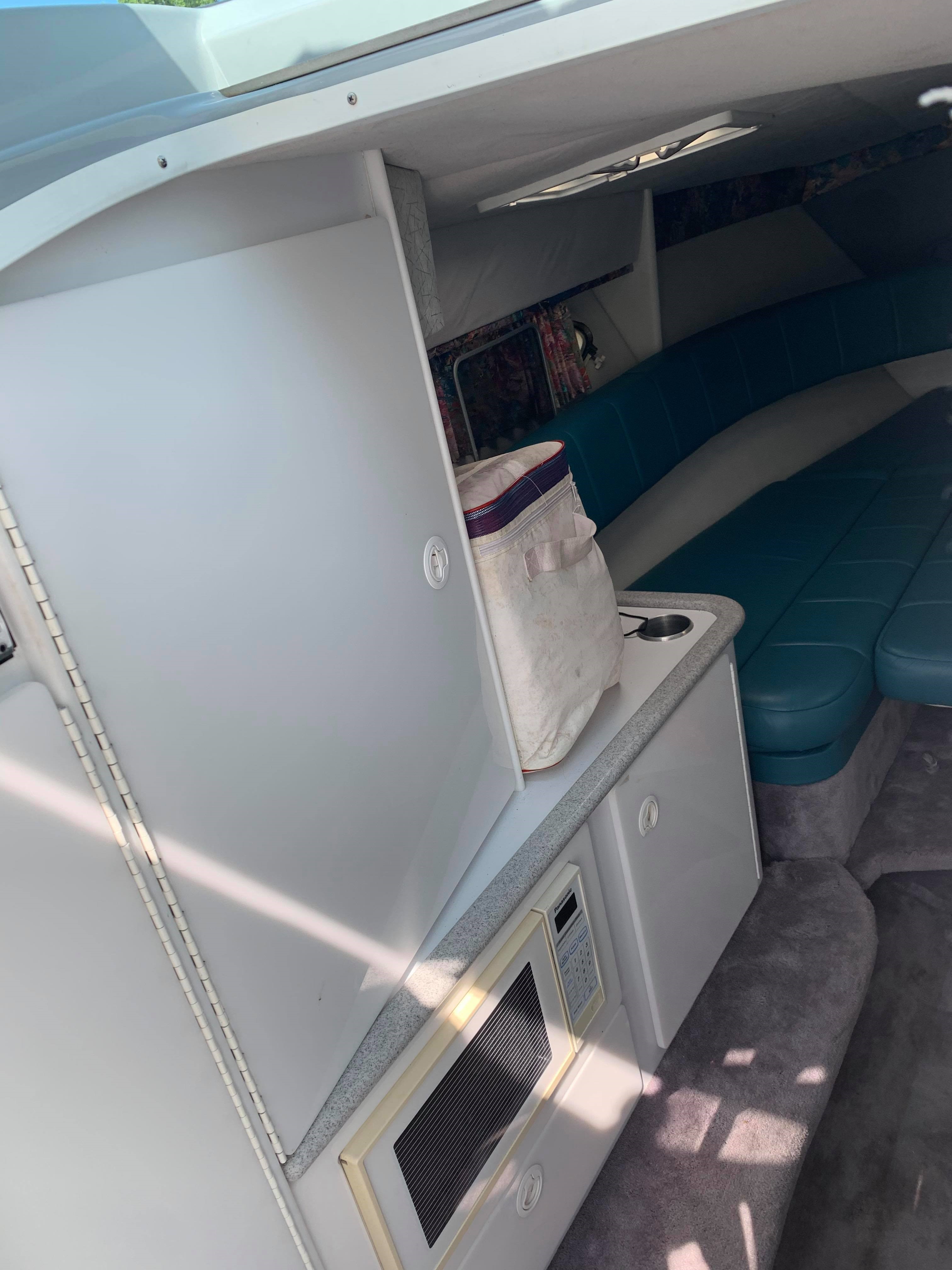 800 hours on boat,looks and runs great,twin 7.4 merc's with Bravo 3 drives,run 42mph at 3000 rpm, all white hull, white bottom paint,interior looks great. NO TRAILER.