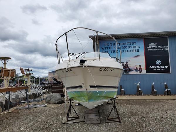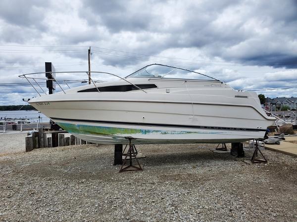 The Bayliner 2355 Ciera Sunbridge makes big boat virtues surprisingly affordable. This family cruiser delivers comfort, performance and privacy. The bi-level cockpit with reversible lounge seat, and slide-out seat, provides room for all. Inside, there are two separate double berths, a highly functional galley with sink and icebox, and an enclosed head with portable toilet. Every Bayliner for 1998 is designed and built to meet or exceed all applicable standards of the US. Coast Guard, and every one carries the certification seal of the National Marine Manufacturers Association. Everything from gelcoats to carpeting is subjected to extreme climate exposure and stress testing far beyond the limits of normal use. The biggest test comes when the hull meets the water the prototypes are put through grueling performance, handling and endurance trials. Hull strength, ride characteristics, fuel efficiency, engine performance and more are all scientifically evaluated. Bayliner seals the transom opening during the lay-up process. Most builders simply cut an opening through the transom of a completed hull, exposing stiffening end grain and inviting decay. No exposed wood means longer hull lifE.