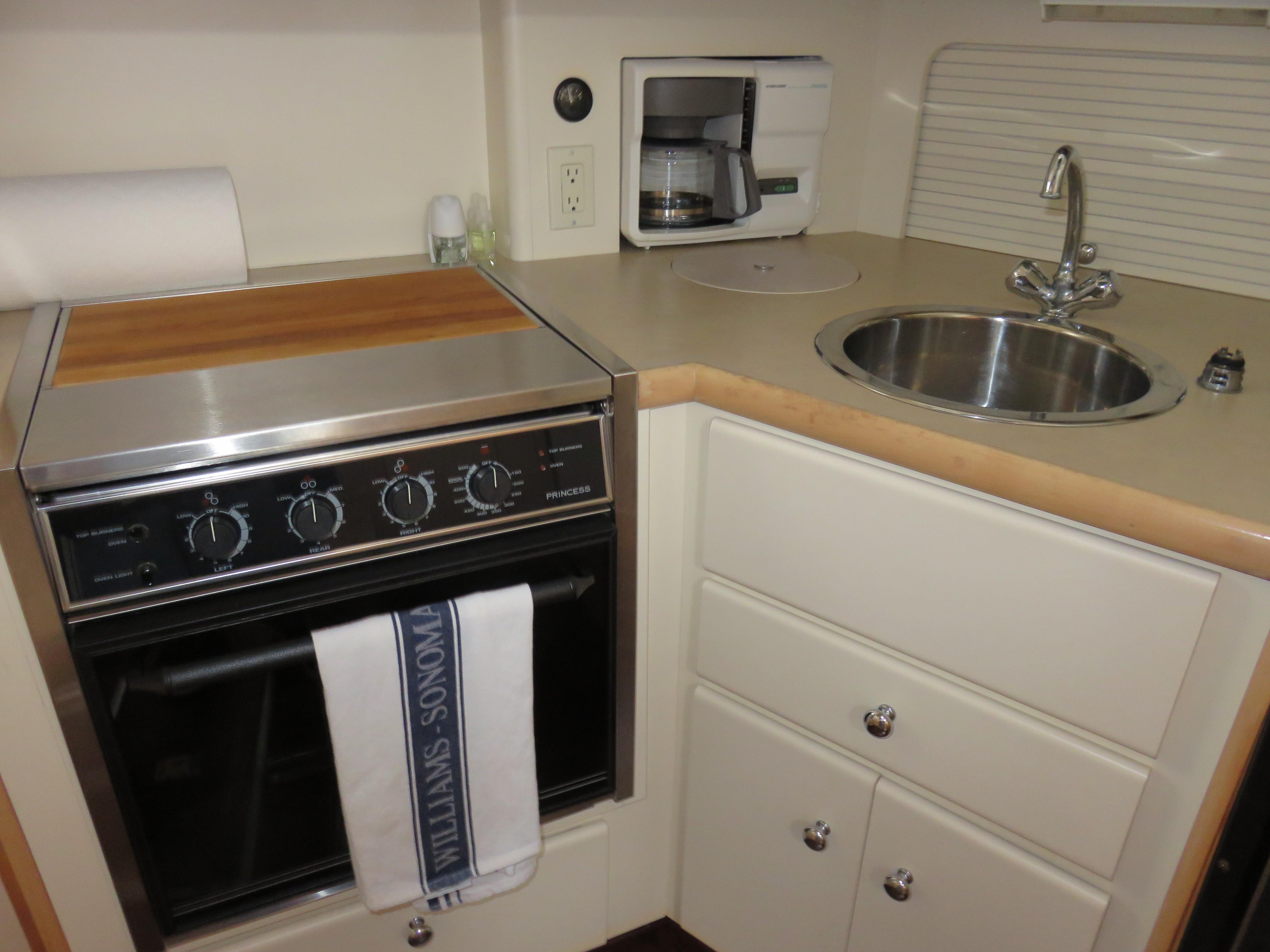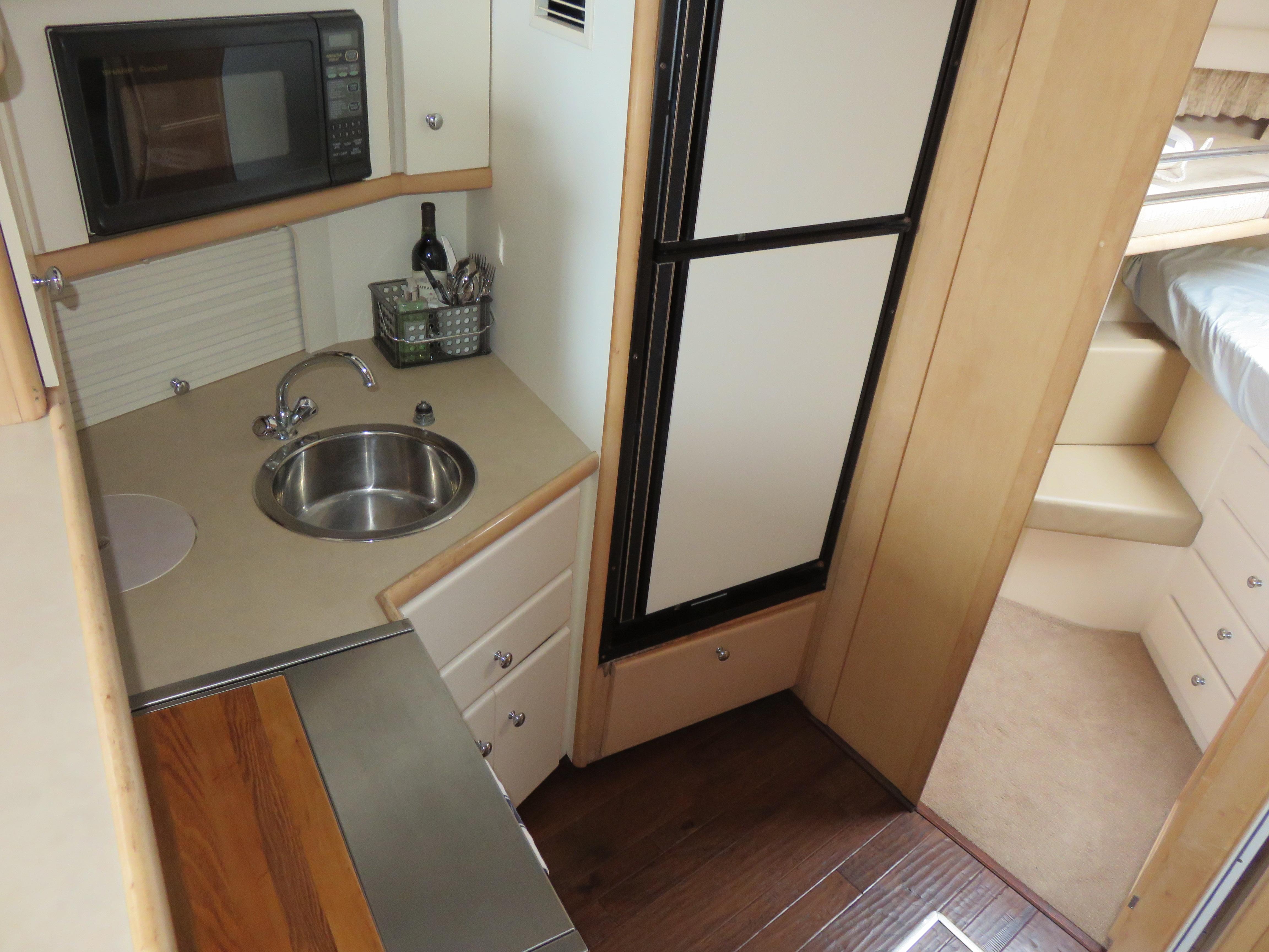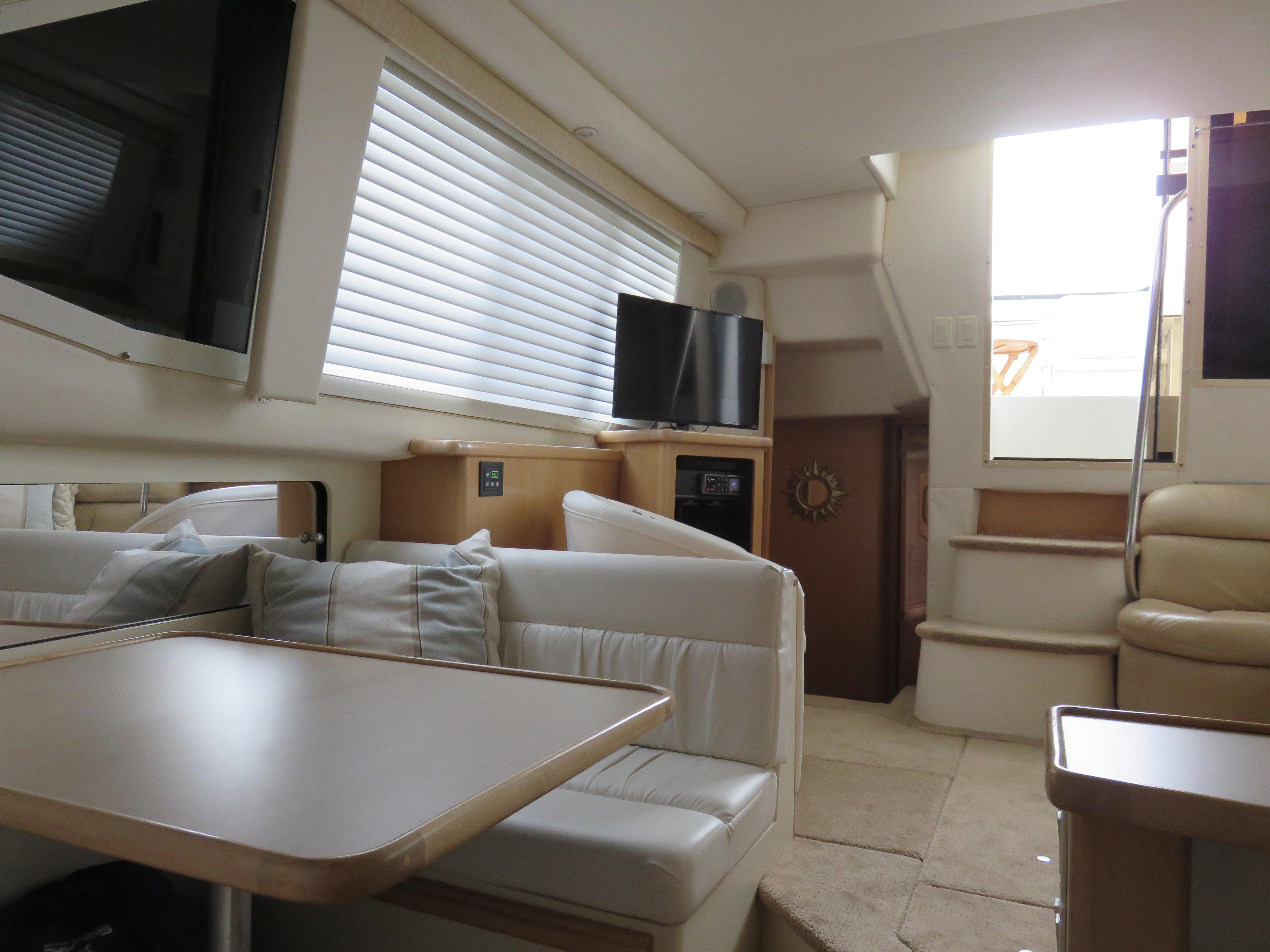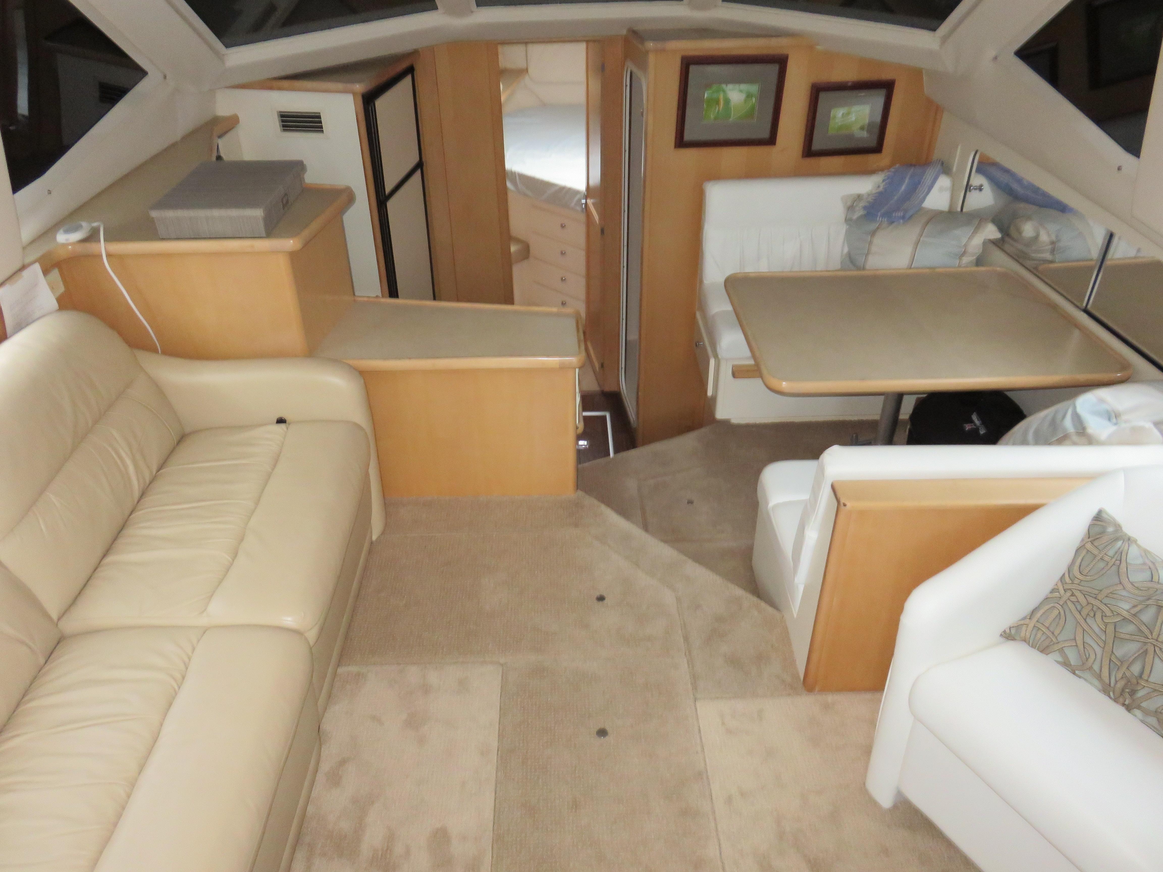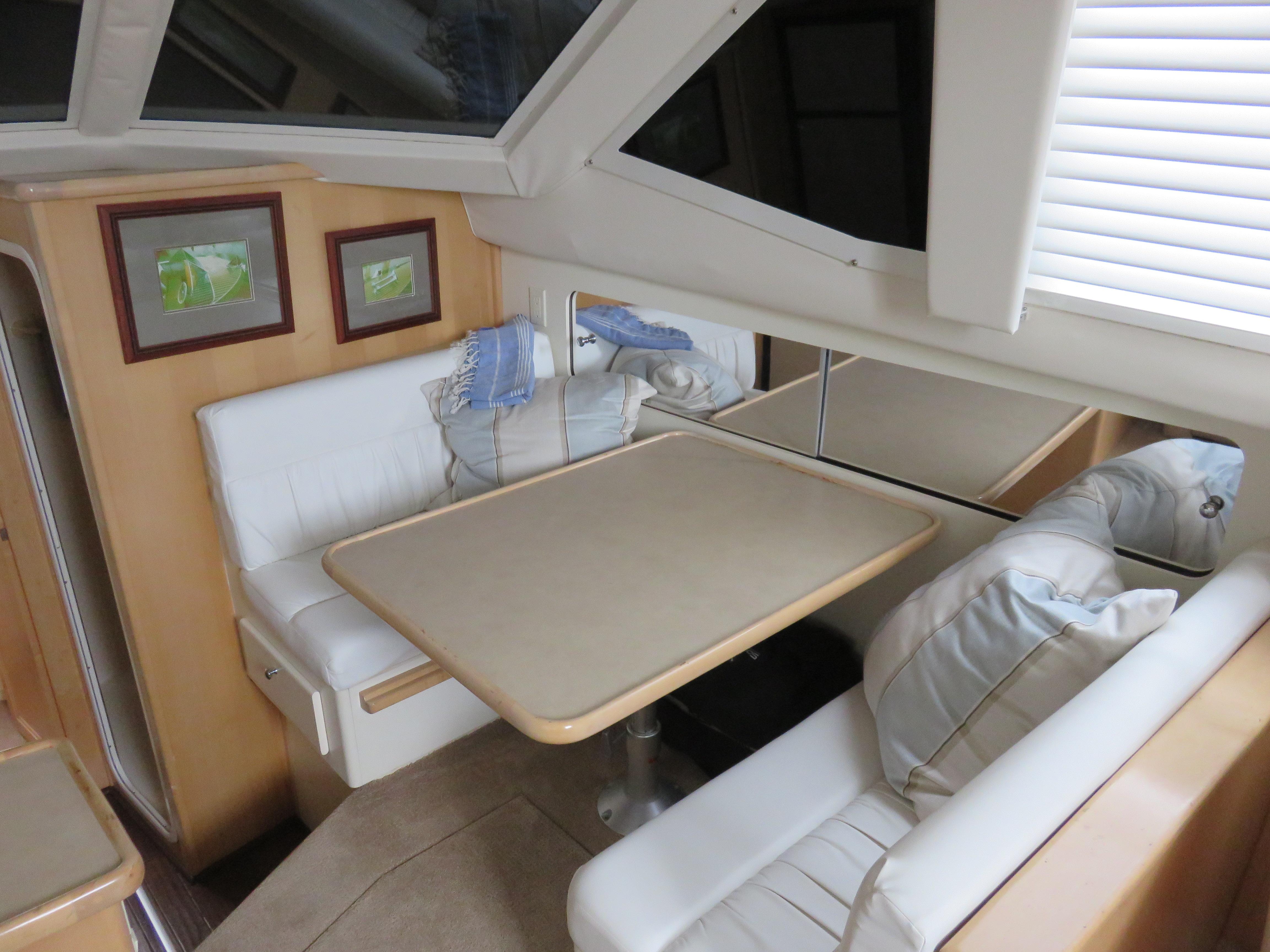 She offers two staterooms with separate heads and showers. The full service galley with adjacent dinette are open to view the salon. The salon itself has a large L-shaped sofa to port and is opposite of the dinette offering great entertaining options.