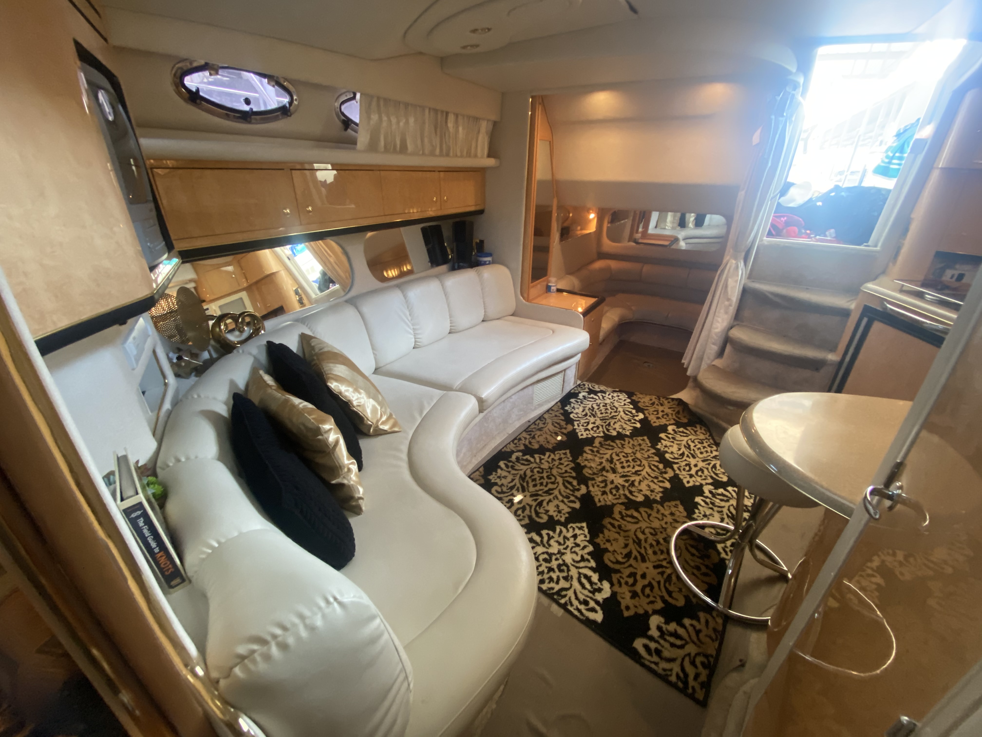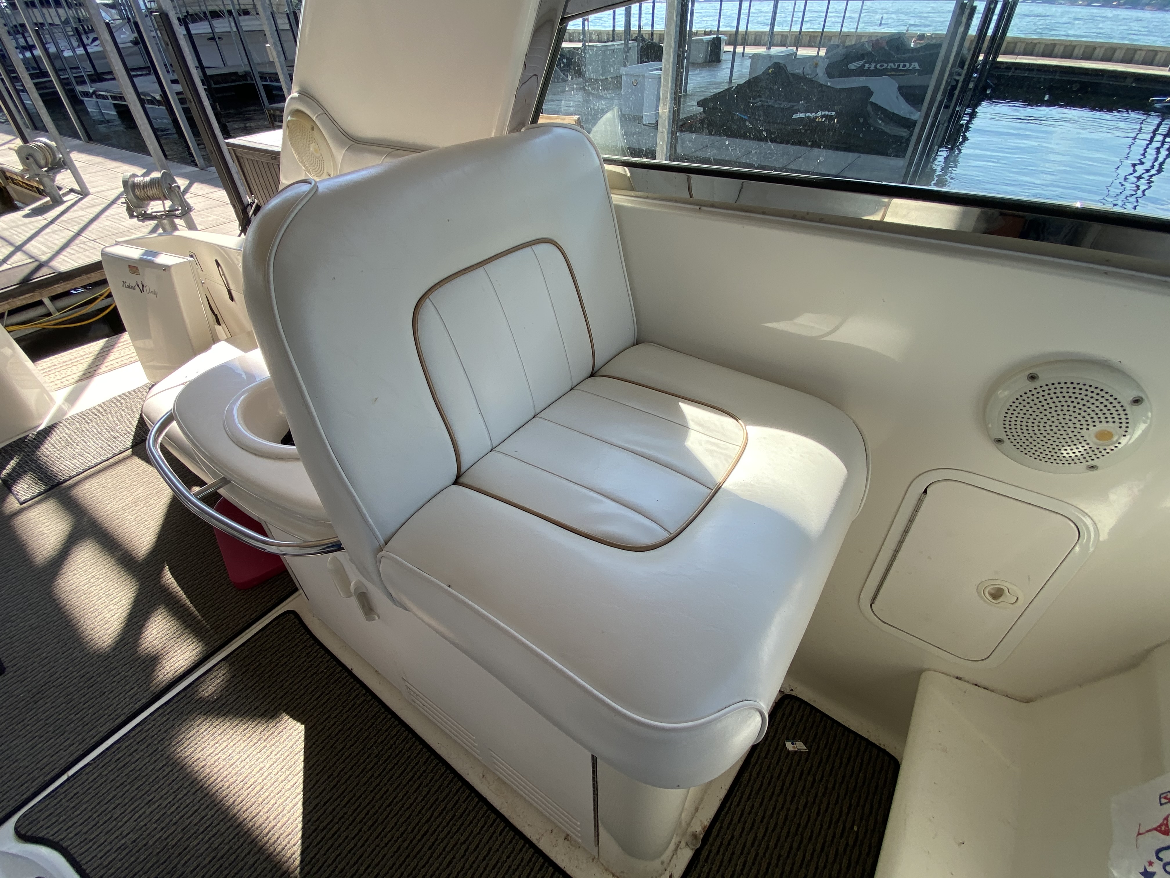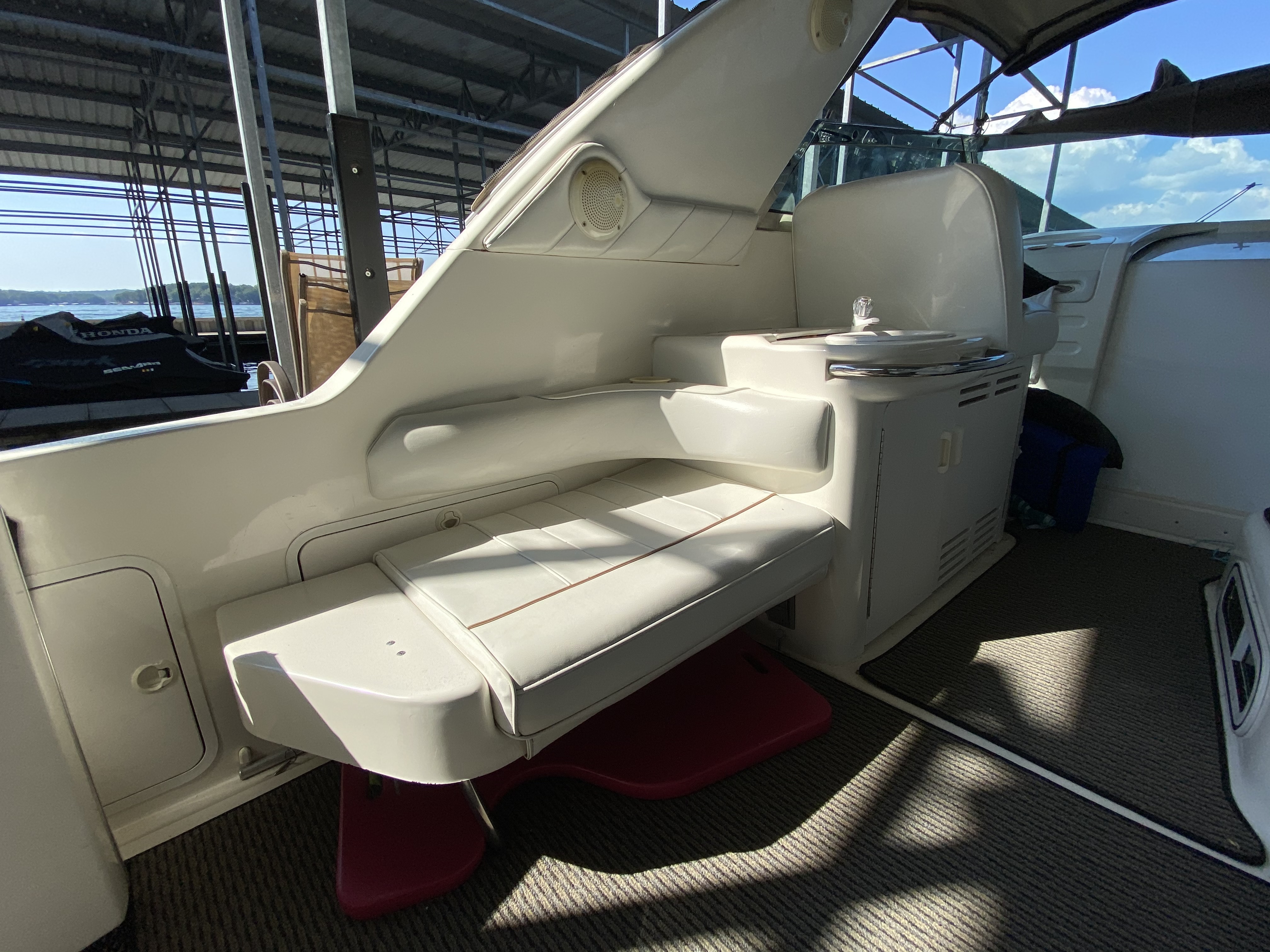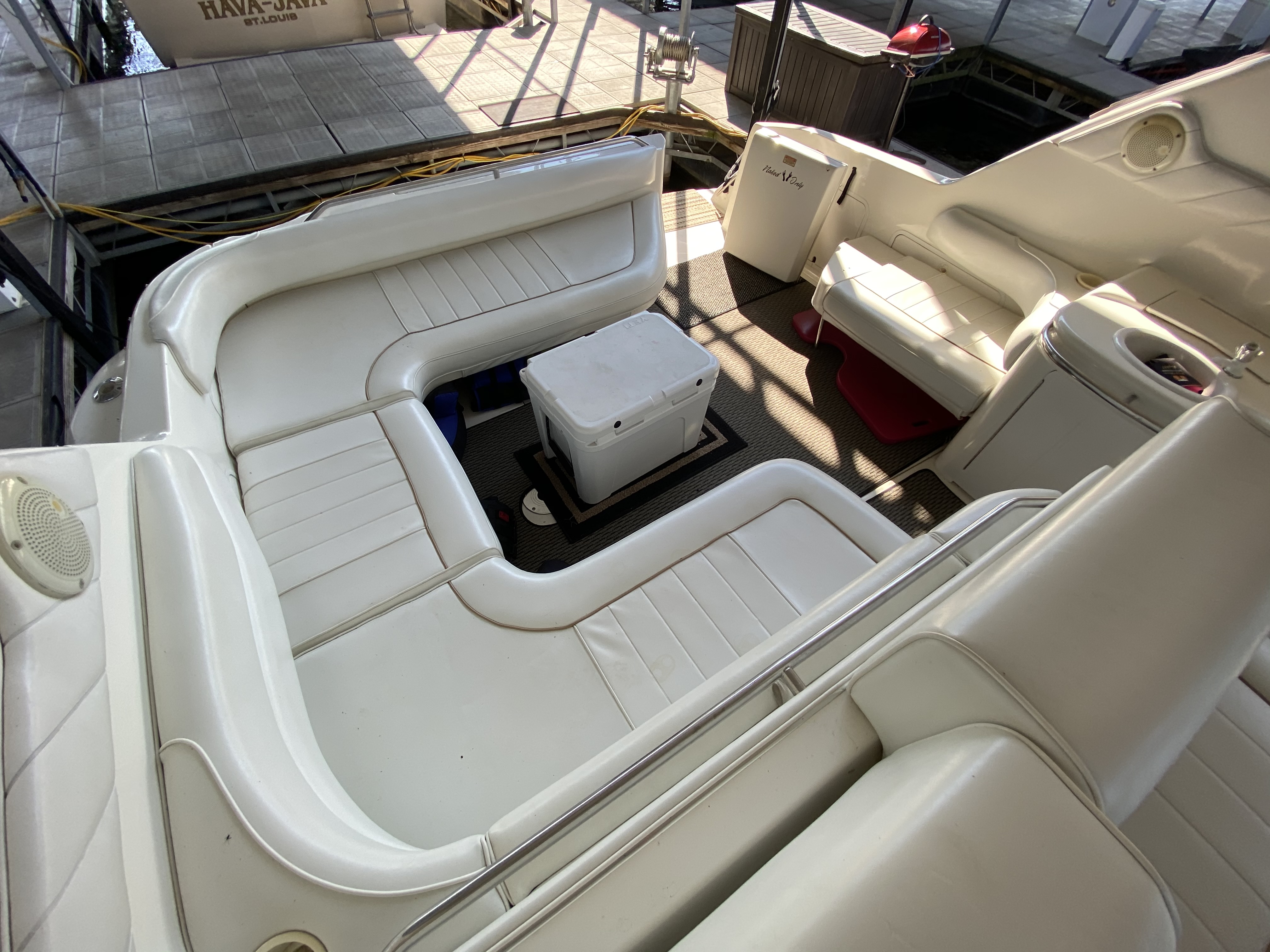 Stylish cruiser that offers style, space, and comfort. Roomy cockpit and sleeping for 6 in cabin with a privacy door for forward stateroom. Beautiful maple cabinets, fuel injected engines, and only 500 hours makes this boat the complete package.