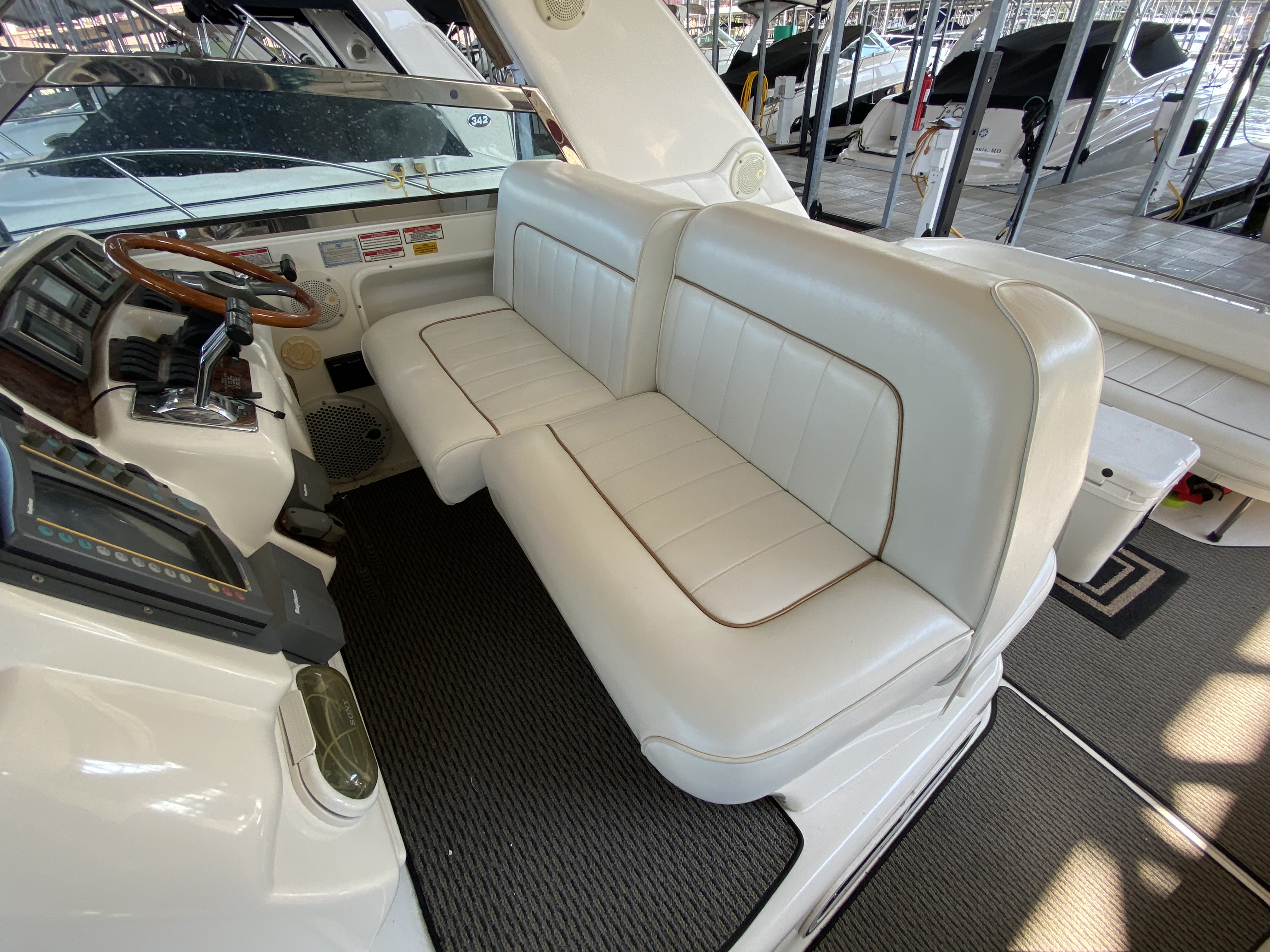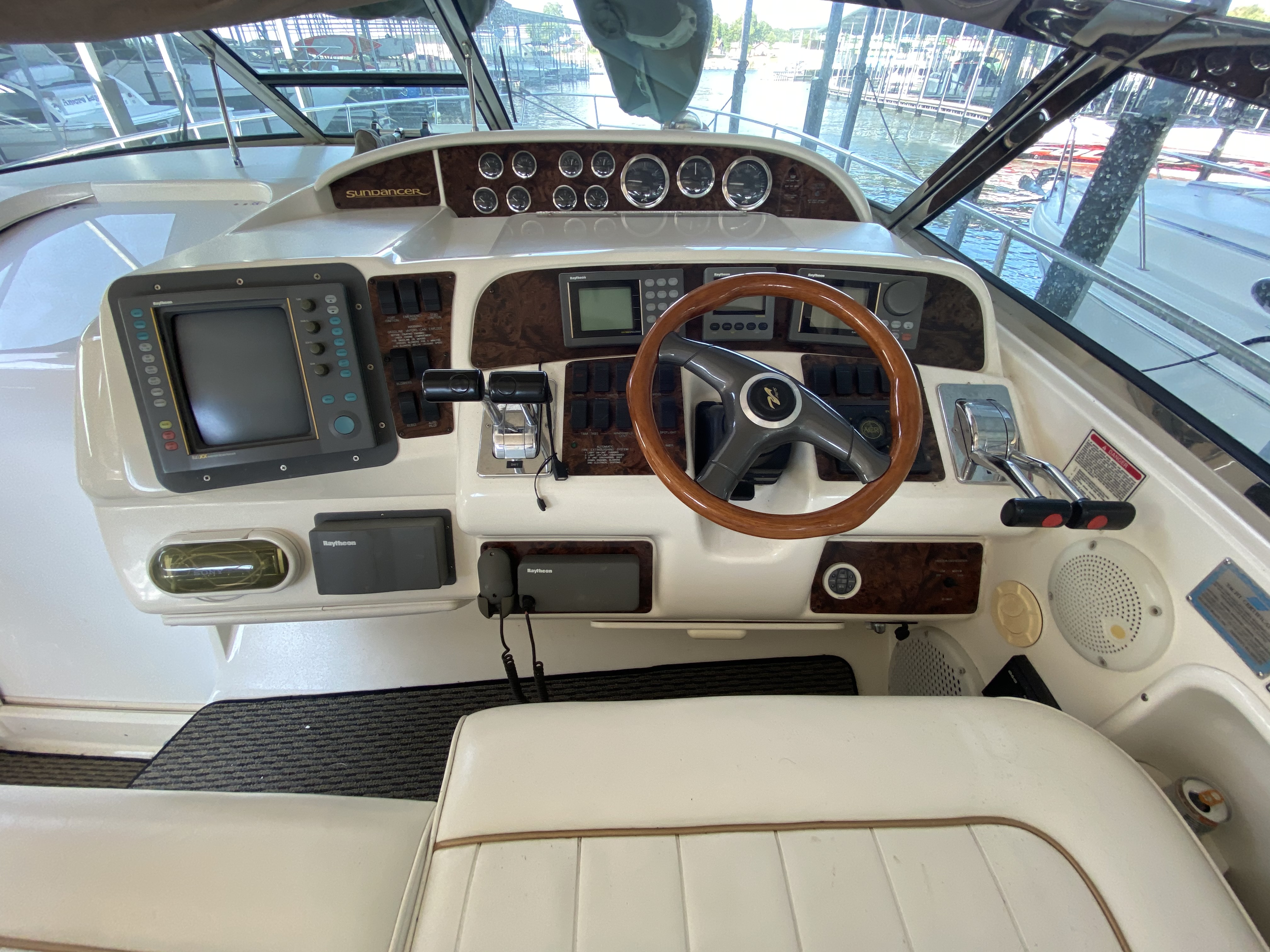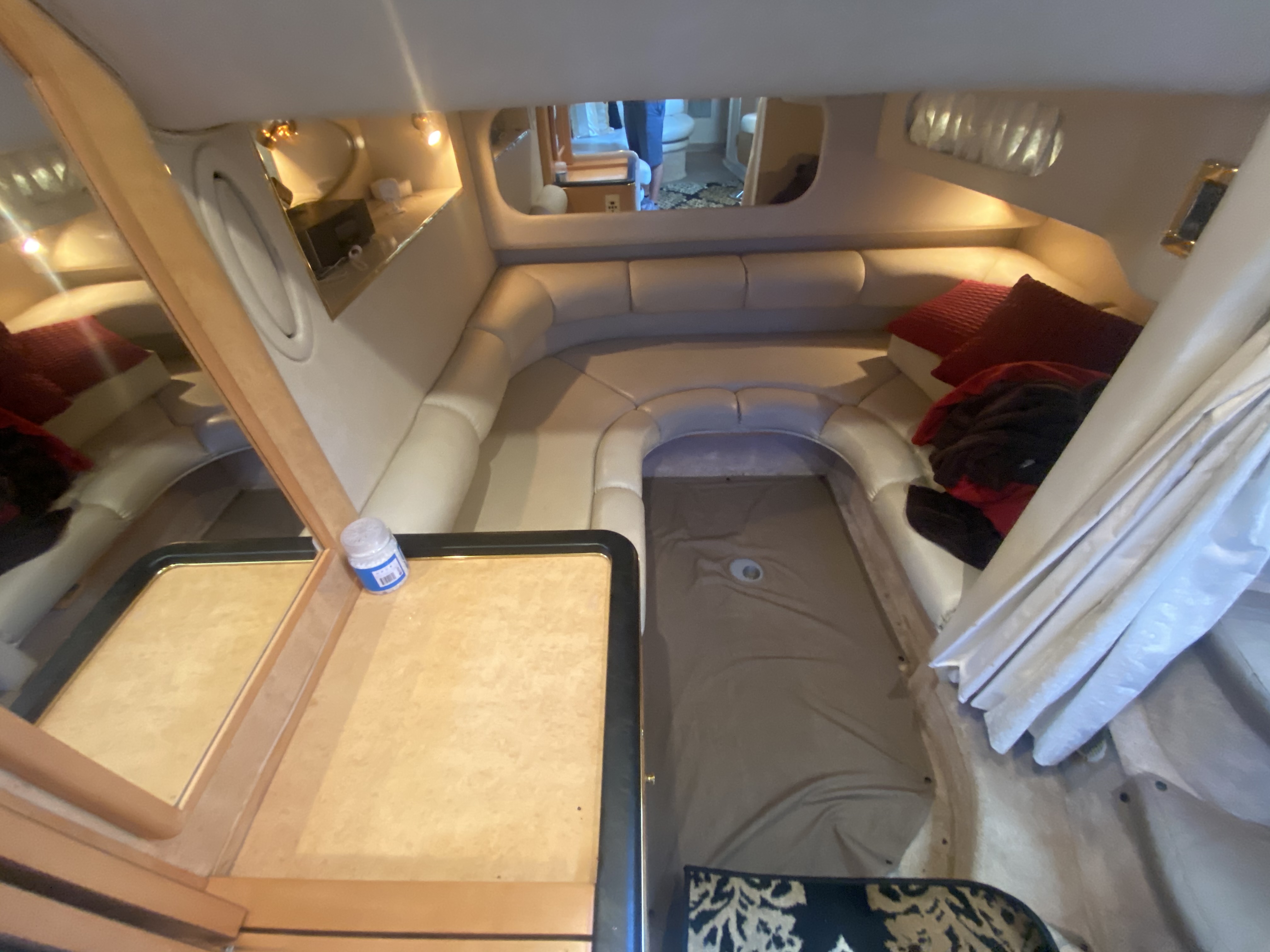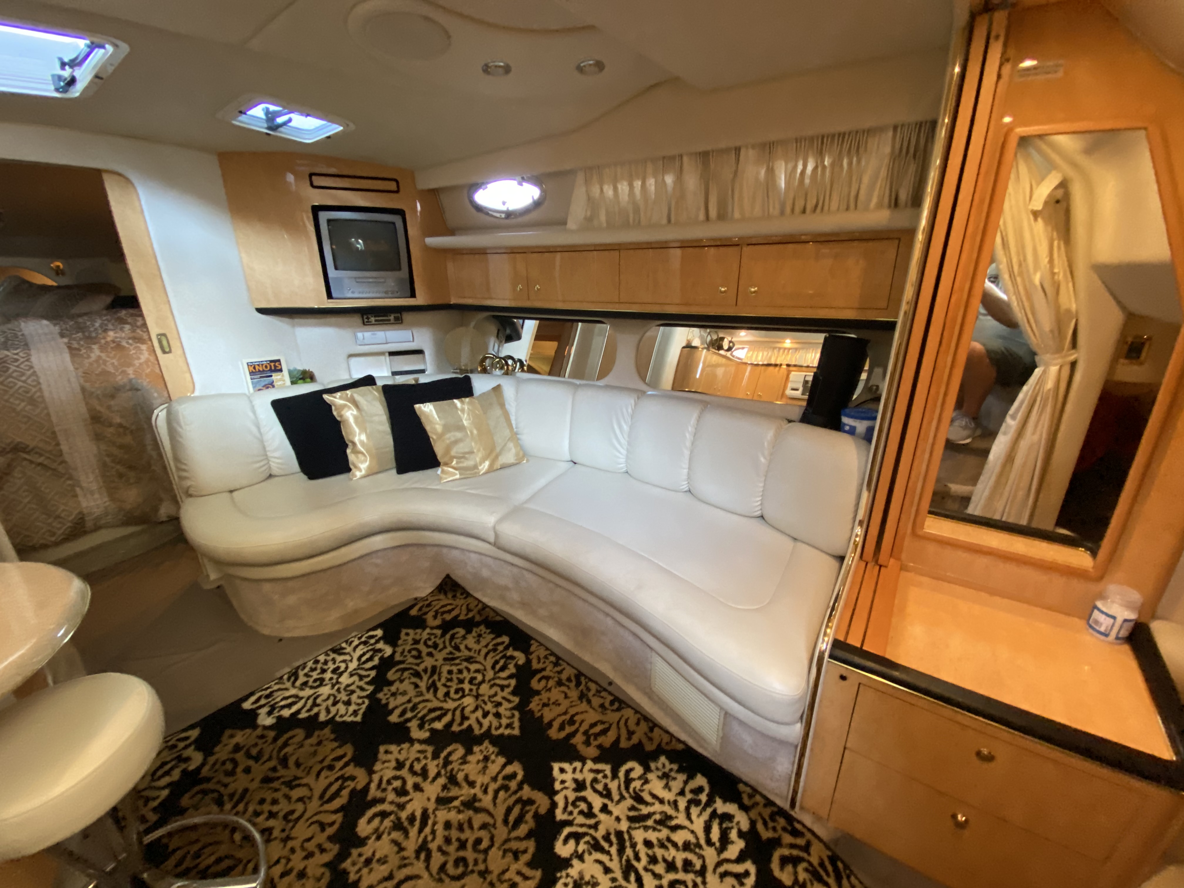 Stylish cruiser that offers style, space, and comfort. Roomy cockpit and sleeping for 6 in cabin with a privacy door for forward stateroom. Beautiful maple cabinets, fuel injected engines, and only 500 hours makes this boat the complete package.