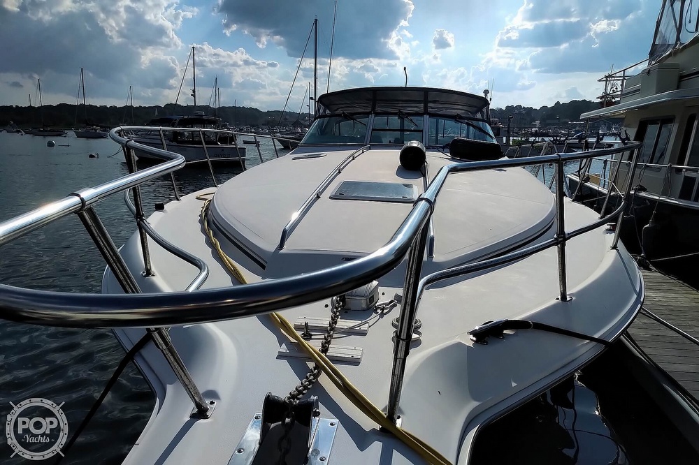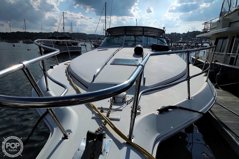 This vessel is located in Scituate, Massachusetts and is in great condition. She is also equipped with twin Mercruiser engines that have 864 hours.