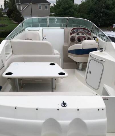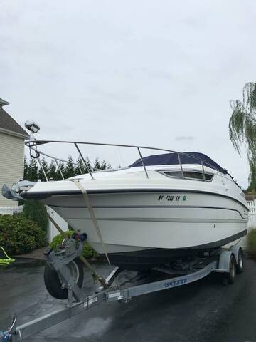 1998 Chaparral Signature 260 LOA 28' cabin cruiser with kitchen (Frig, stove, sink), bathroom with shower, dinning area, extended swim platform. Comfortably sleeps 4 in the cabin. Upholstery throughout boat like new, as well as, All canvas including cock pit cover, front and rear Bimini top and full camper cover with Eisenglass like new! New drive shaft and U joint assembly with new gimble bearing and bellows just redone. Lower unit was recently replaced 4 years ago with less than 50 hours. Has been trailered for the past 4 years, used lightly and flushed with fresh water after each use. Engine completely rebuilt only used once since then. Excellent/Perfect running condition with less than “1” hour on rebuilt engine and properly maintained by boat mechanic Tandem trailer included. Boat is truly like new for a fraction of the price!!!