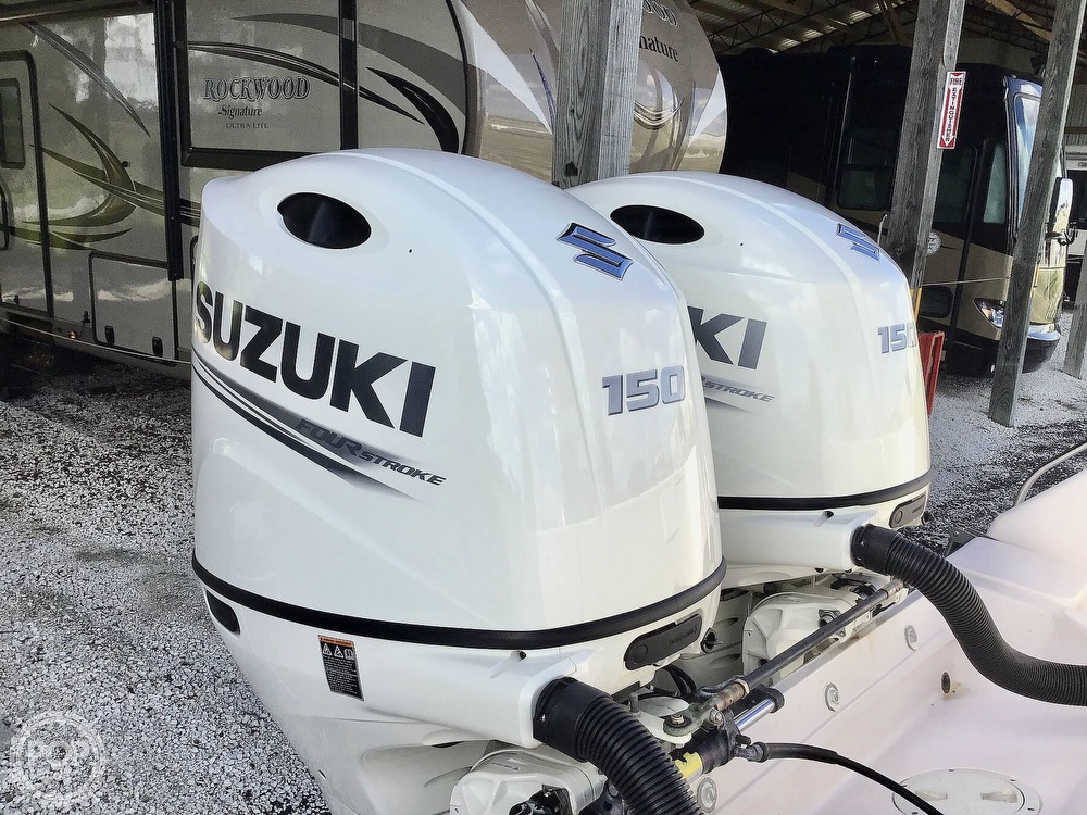 This boat is located in Edgewater, Florida and is in great condition. She is also equipped with twin Suzuki engines that have only 10 hours.