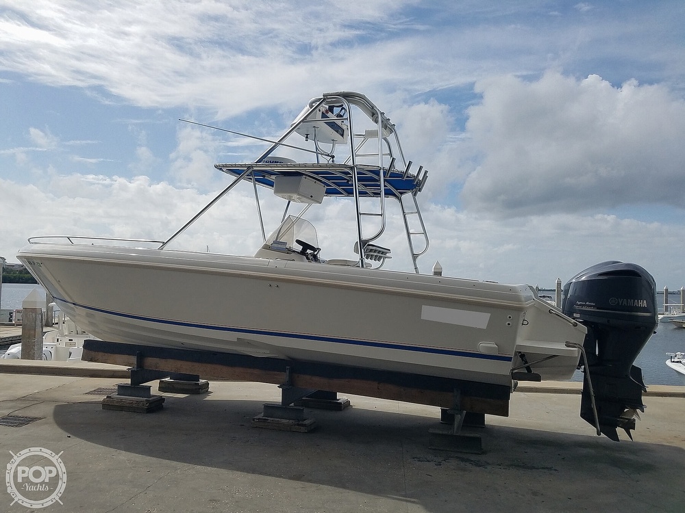 ***SALE PENDING*** ORIGINAL OWNER! Repowered with Yamaha 300hp 4-stroke outboards. Upper and lower helm. Onboard head. Lots of deck space, seating and storage.