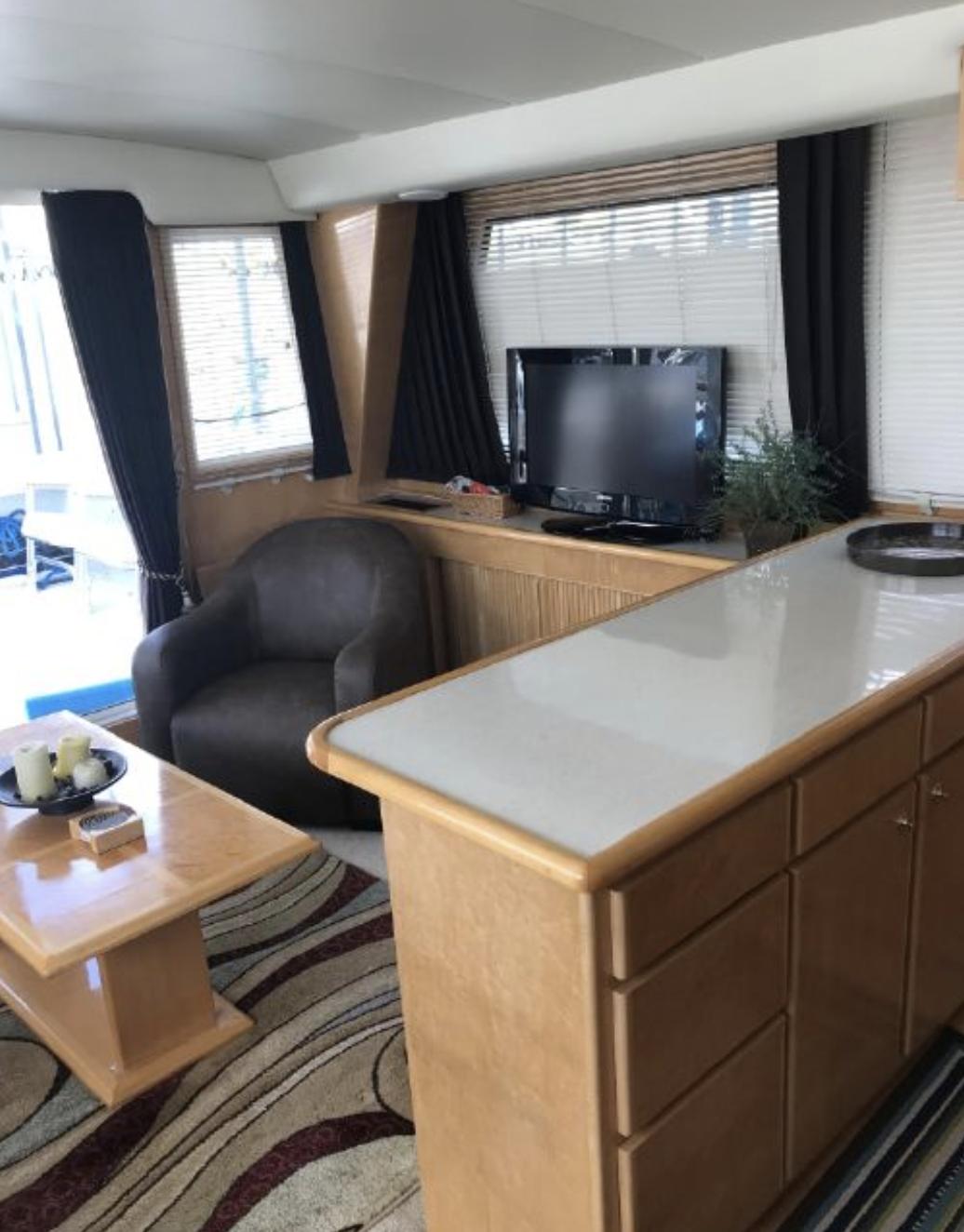 53' Navigator Yacht with twin Volvo Diesel engines. This is the smoothest riding luxury cruiser we have ever owned. The pictures do not do this boat any justice, you must see it in person at monkey island to appreciate how nice it is. The boat was purchased brand new on Grand Lake and has never left. It is not one of the uncared for seawater vessels. Every time we are done cruising, the entire boat gets washed down, dried off, and covered. The boat has room to sleep several guests comfortably yet still has a sleek sporty look to it. This boat only has 450 hrs on it and we have loved every minute we have ever spent on it. Our only reason to sell is that we don't get to enjoy it as much as we used to. We would like to see it go to a good home for someone who can enjoy it as much as we have. Price just reduced