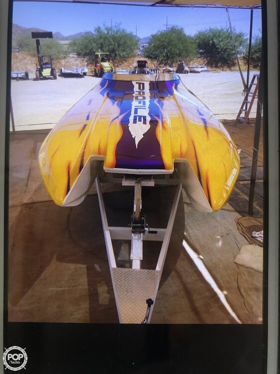 This boat is located in Desert Hills, Arizona and is in great condition. She is also equipped with a Custom engine that has only 12 hours.