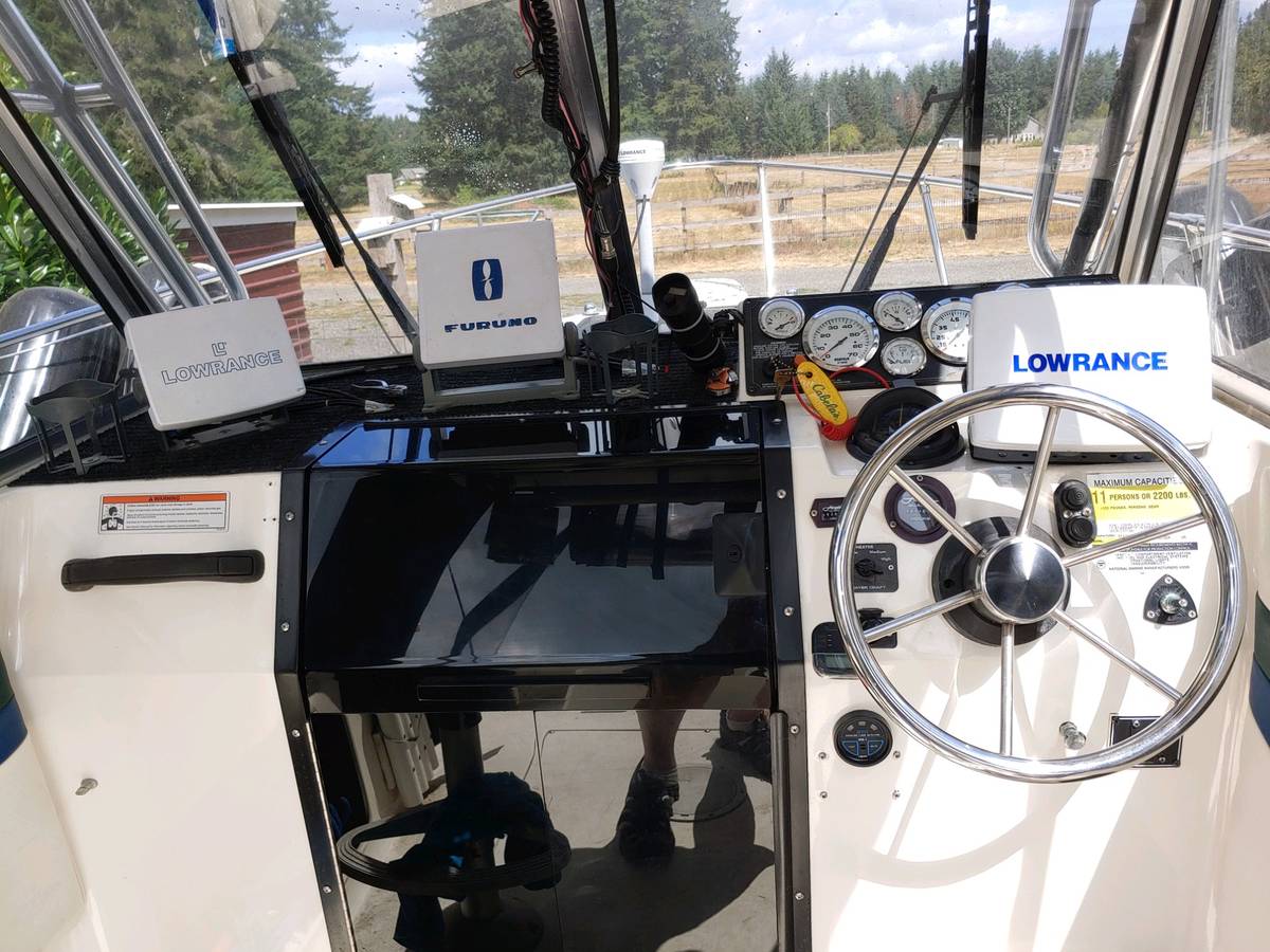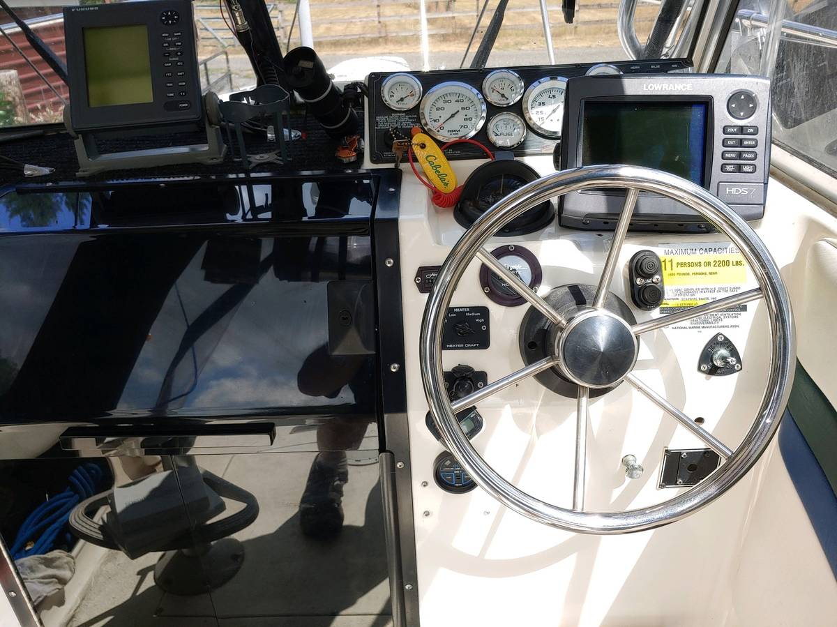 Total hrs. on boat less than 275. Boat has brand new engine, exhaust manifolds, waterpump, gimbel bearing, starter, with less than 4 hrs. on new engine with warranty expiring 82021. Two new downriggers, some new electronics radios, radar, new quad screen fish finderGPS. Have all receipts on work done. Health forces sale, all work done during my recovery that's why the 4 hrs.