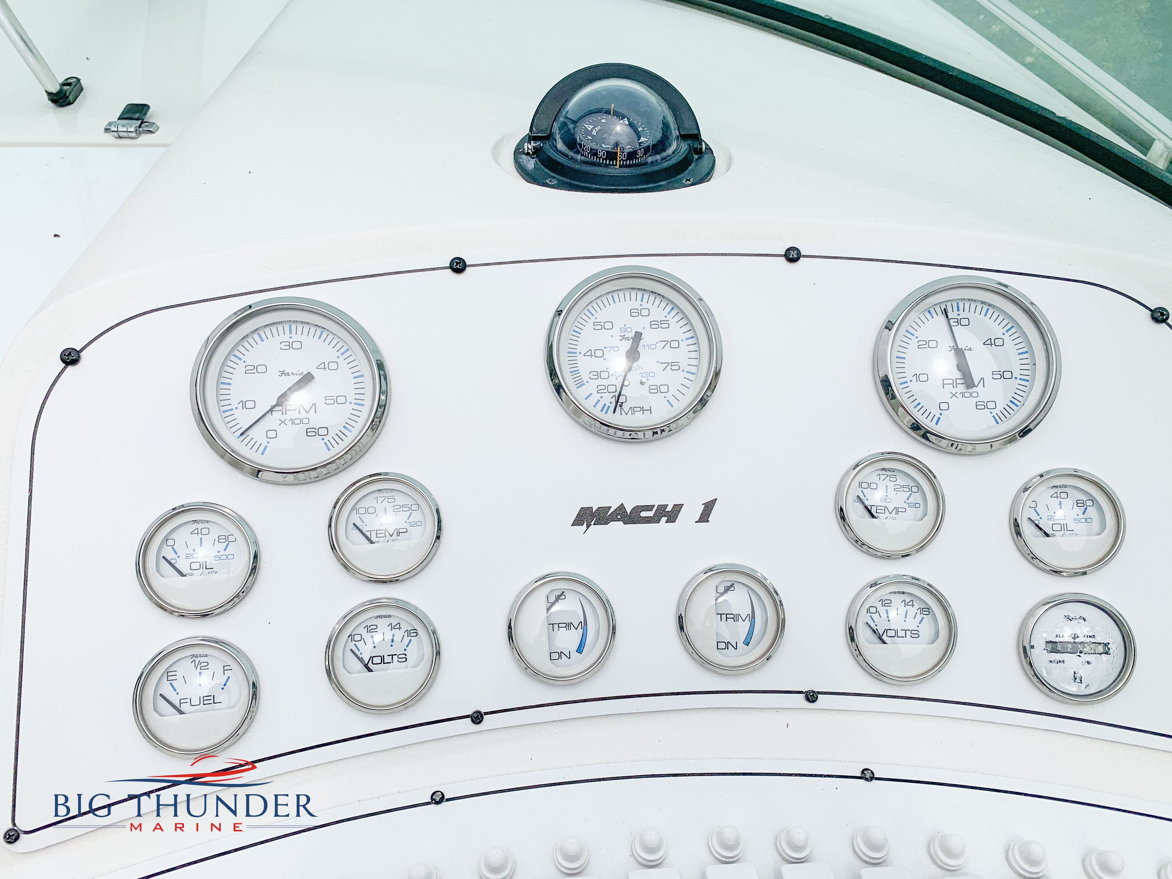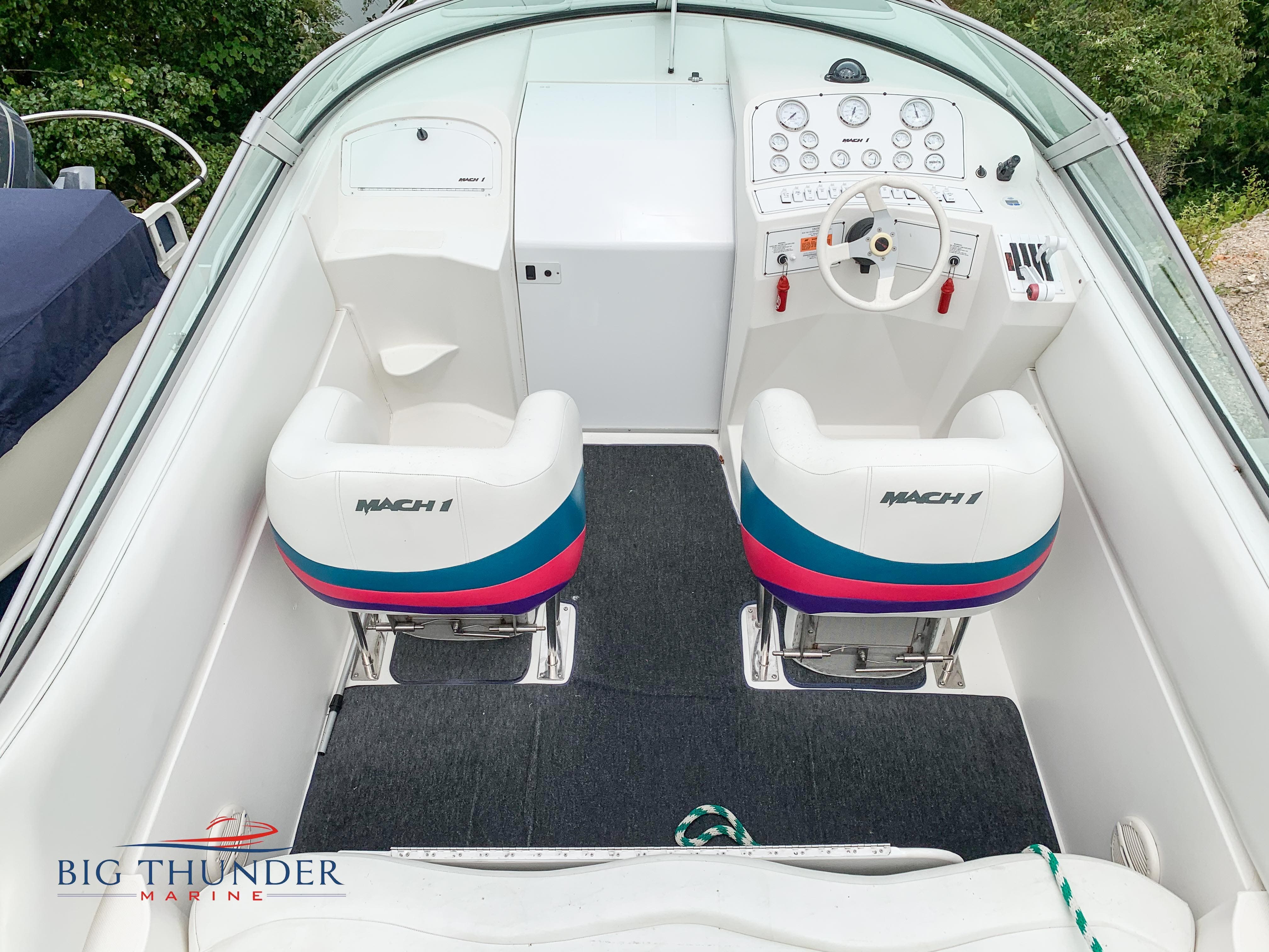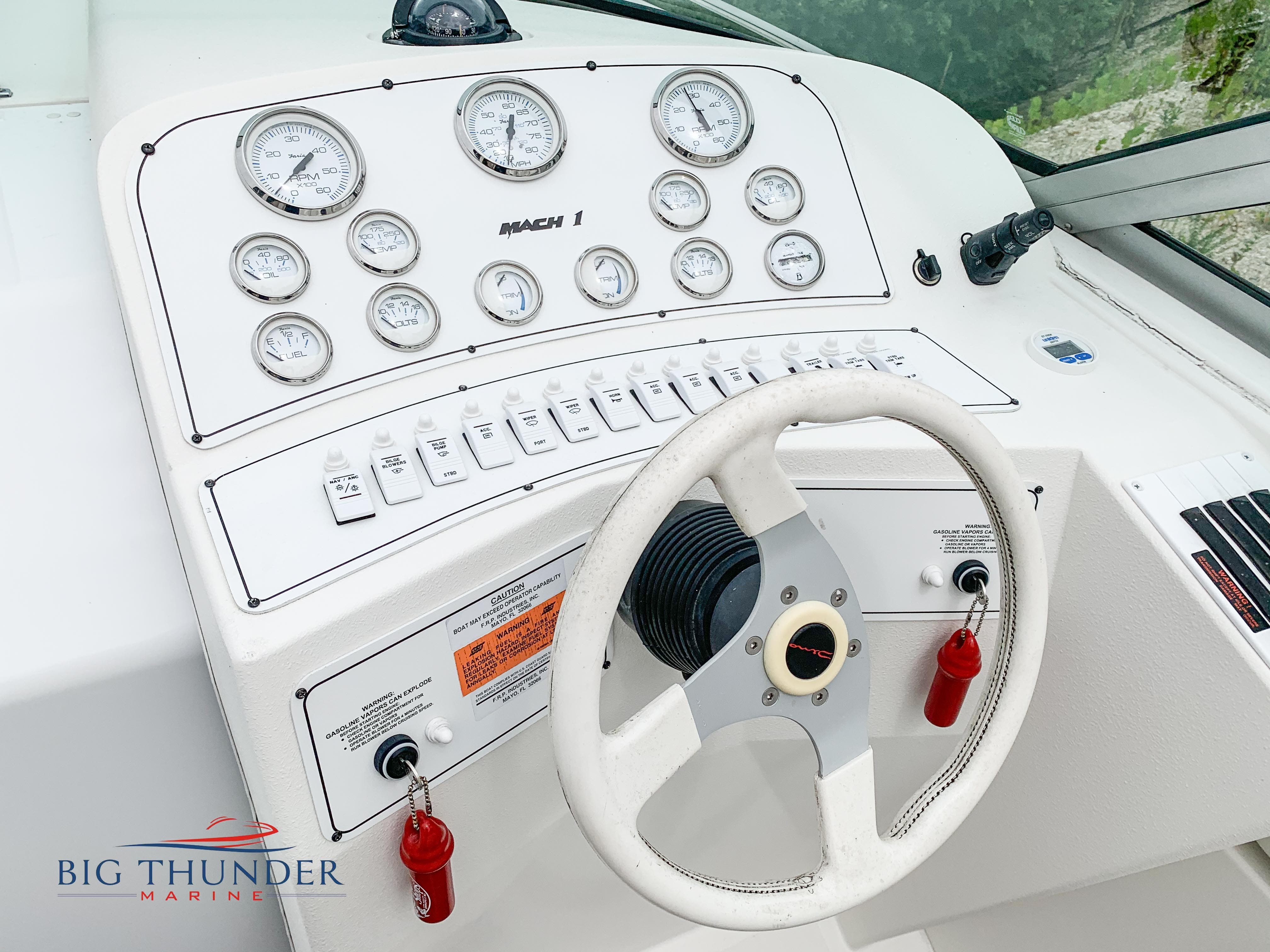 1999 Baha Cruisers Mach1 340 Twin Mercury 454 Mag’s (385HP 425 hours on meter) w/ Bravo One drives. Mid Cabin Open Bow, Swim Ladder, Ski Tow Pylon, Trim Tabs, Cockpit Carpet, Bilge Blower, Depth Finder, Sink, Fridge., Sony CD Player/Stereo System w/ Helm Remote, Porta Potti, Dual Batteries w/ Switches. Call for more info and demo scheduling.