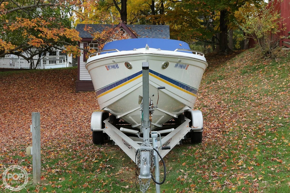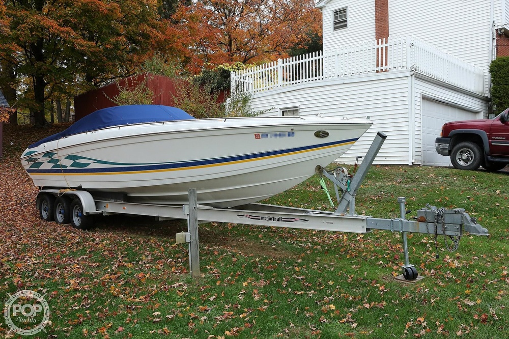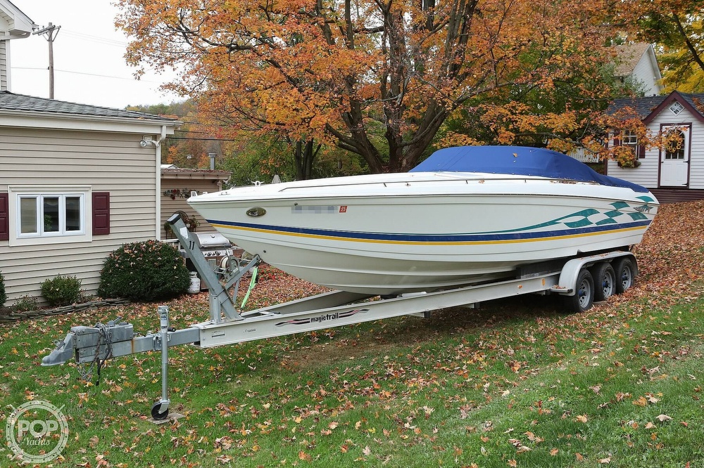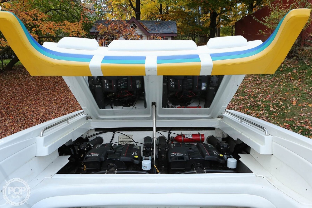 This boat is located in Goshen, New York and is in great condition. She is also equipped with twin Mercruiser engines that have 450 hours.