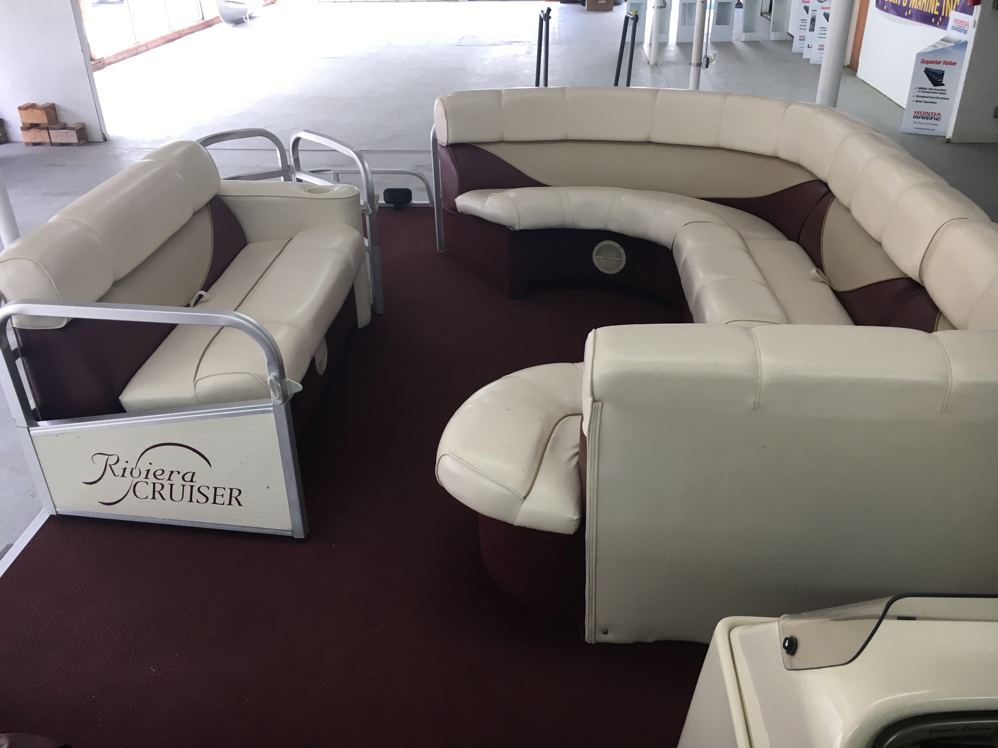 LOA: 23’10”, Tube Diameter: 22”, Beam: 8’6”, Deck Length: 21’, Capacity: 15, Bimini Top, Seat Covers, Docking Lights, Tow Ring, Gauges (Fuel, Trim, Volt, RPM, Warning), Aquatronics AM/FM Cassette Player, (1) Boarding Ladder, Windshield, Navigation Lights, Horn, Cup Holders, Fire Extinguisher