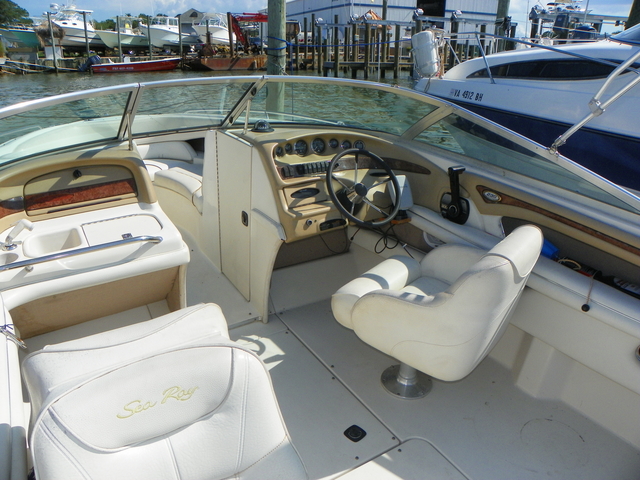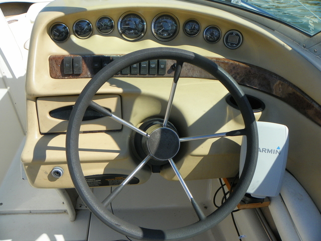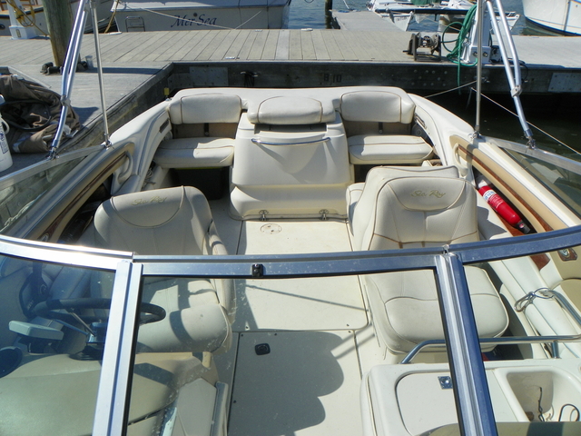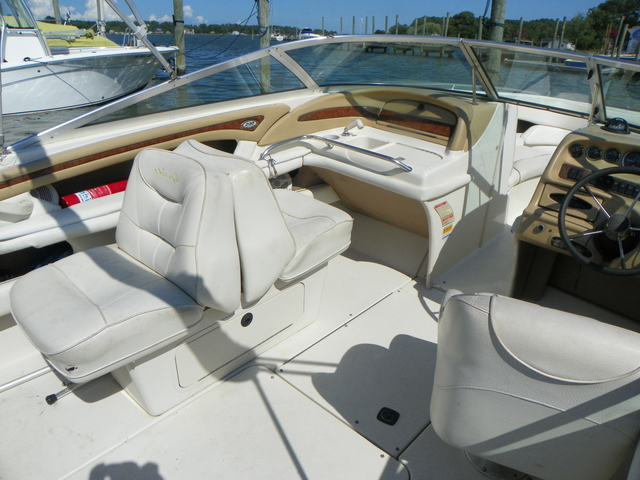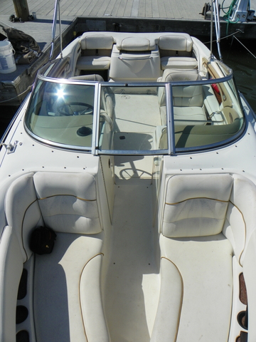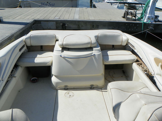 Other stuff 348 hrs on Mercruiser 357 engine, Bravo3 Stern Drive, Dual SS props, Bimini Top, Garmin GPS, Recently replaced all ignition parts plugs, cap, rotor, spark plug wires Cockpit Features Adjustable back to back lounger and swivel helm seat with bolster and Slide Vertical Adjustment Large storage areas through out, lockable glove box, ski and kneeboard storage with gas-assisted lid and storage beneath bow seating AMFM stereo with CD and BT and four waterproof speakers. insulated ice chest built right into the dash Stainless steel hardware through out Bimini top with boot and vertical storage Aft, access to the water is easy with an extra wide, integral swim platform with a three-rung stainless steel ladder that's kept neatly concealed for a cleaner look.