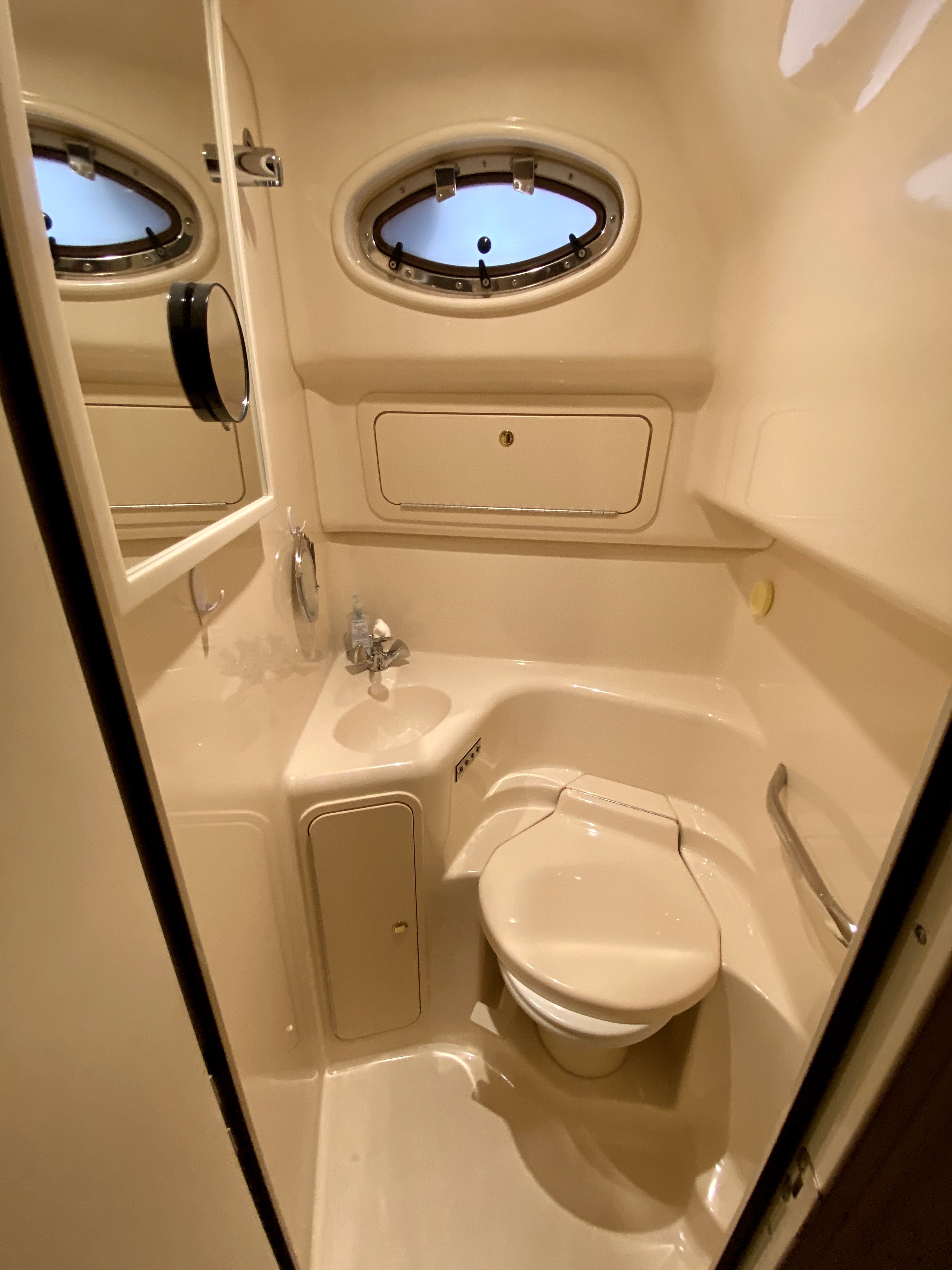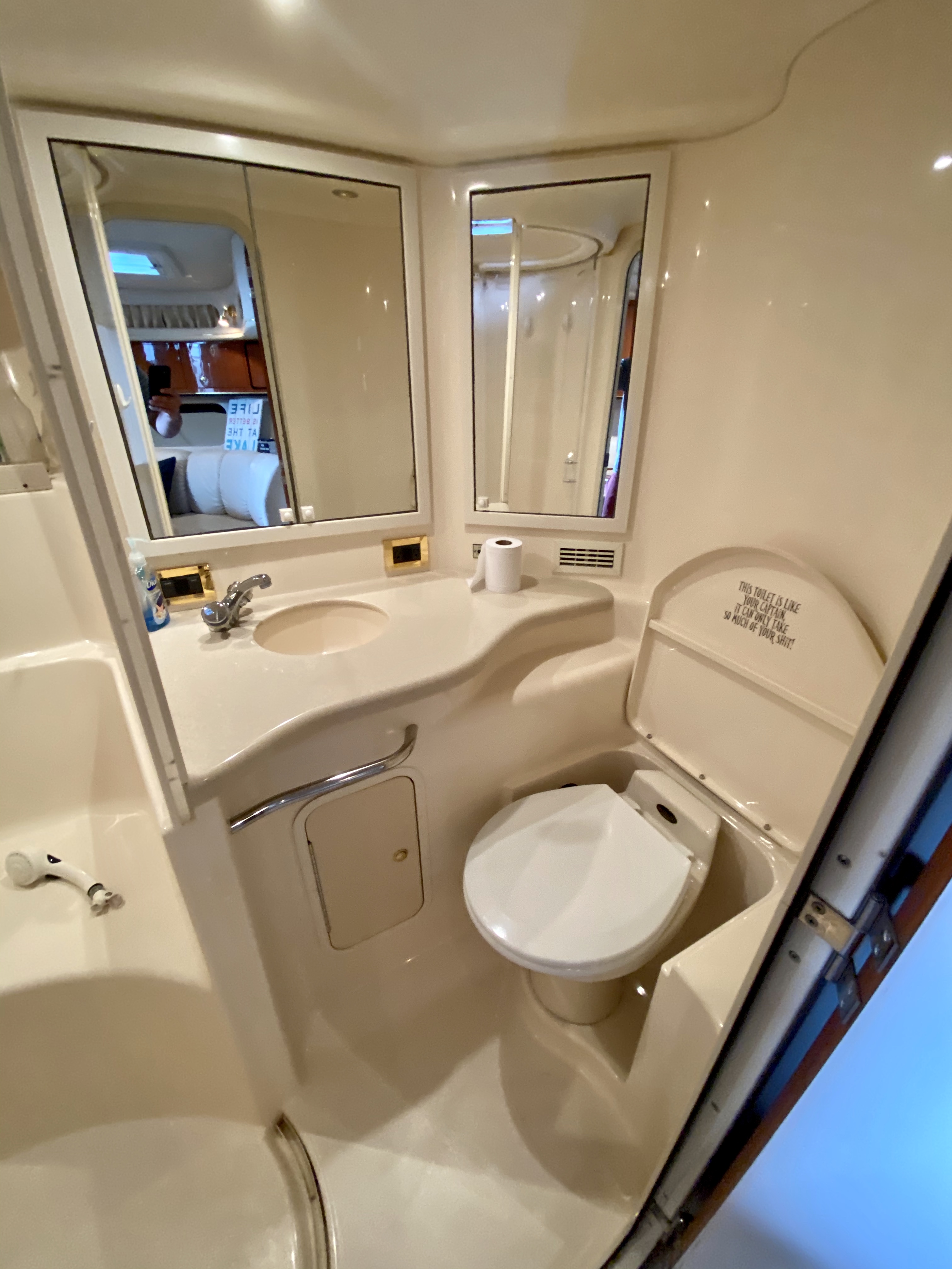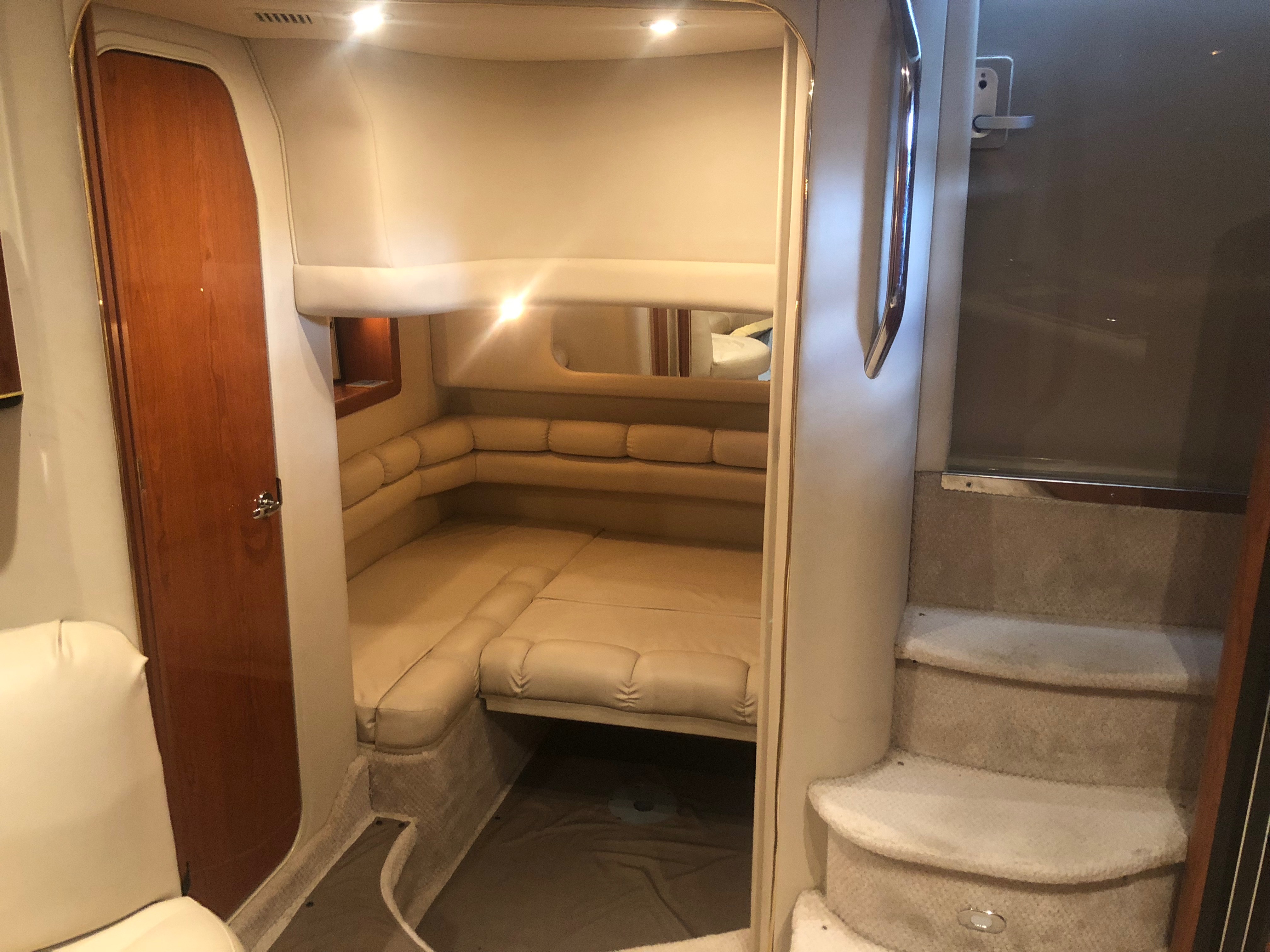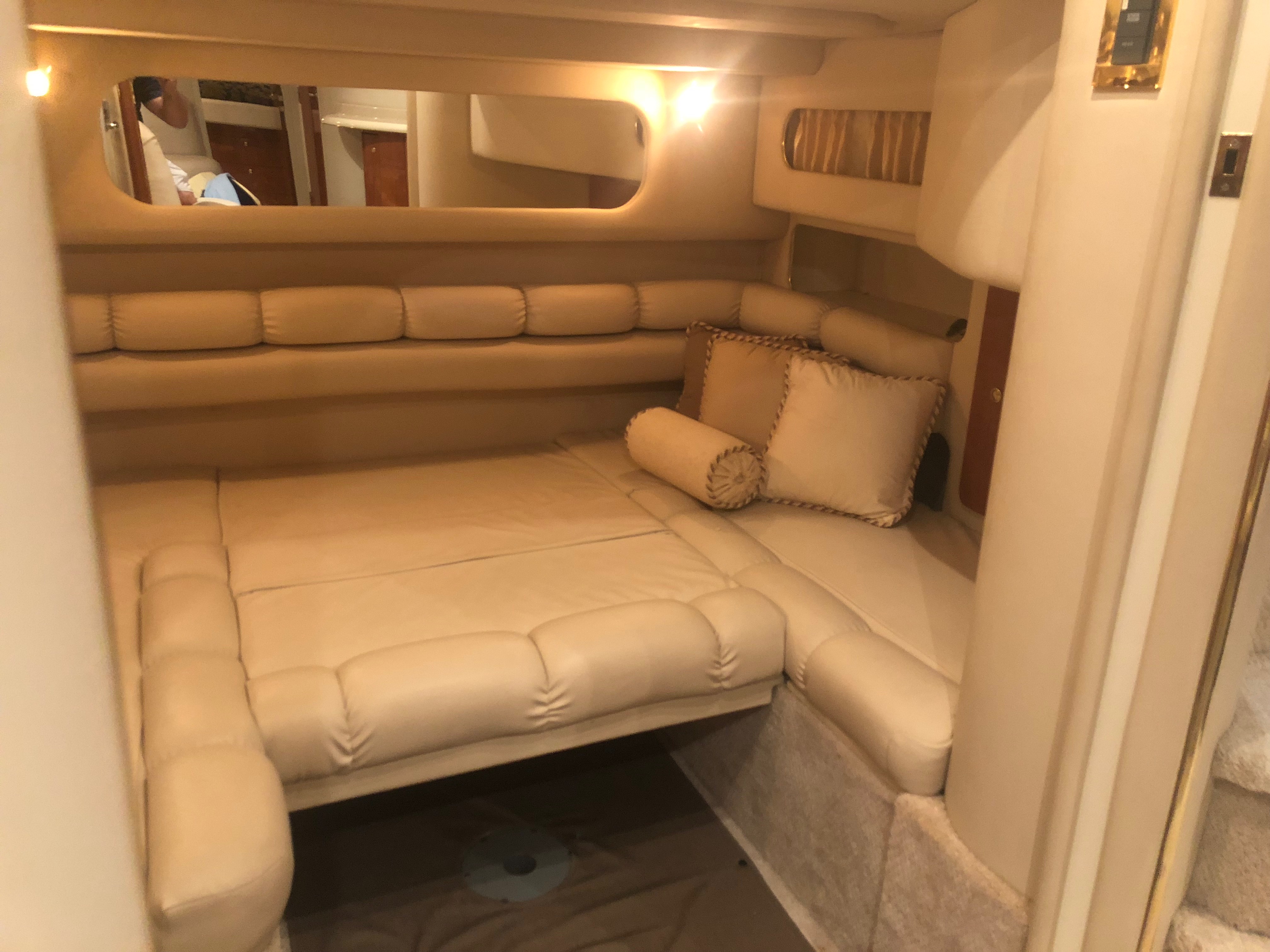 Accommodations: Queen bed in forward stateroom, queen bed in midcabin, vacuflush head and separate shower, 2nd head in midcabin, 2 Panasonic TVs, Upgraded Kenwood CD player with aux hook-up and Fusion speakers in cockpit.