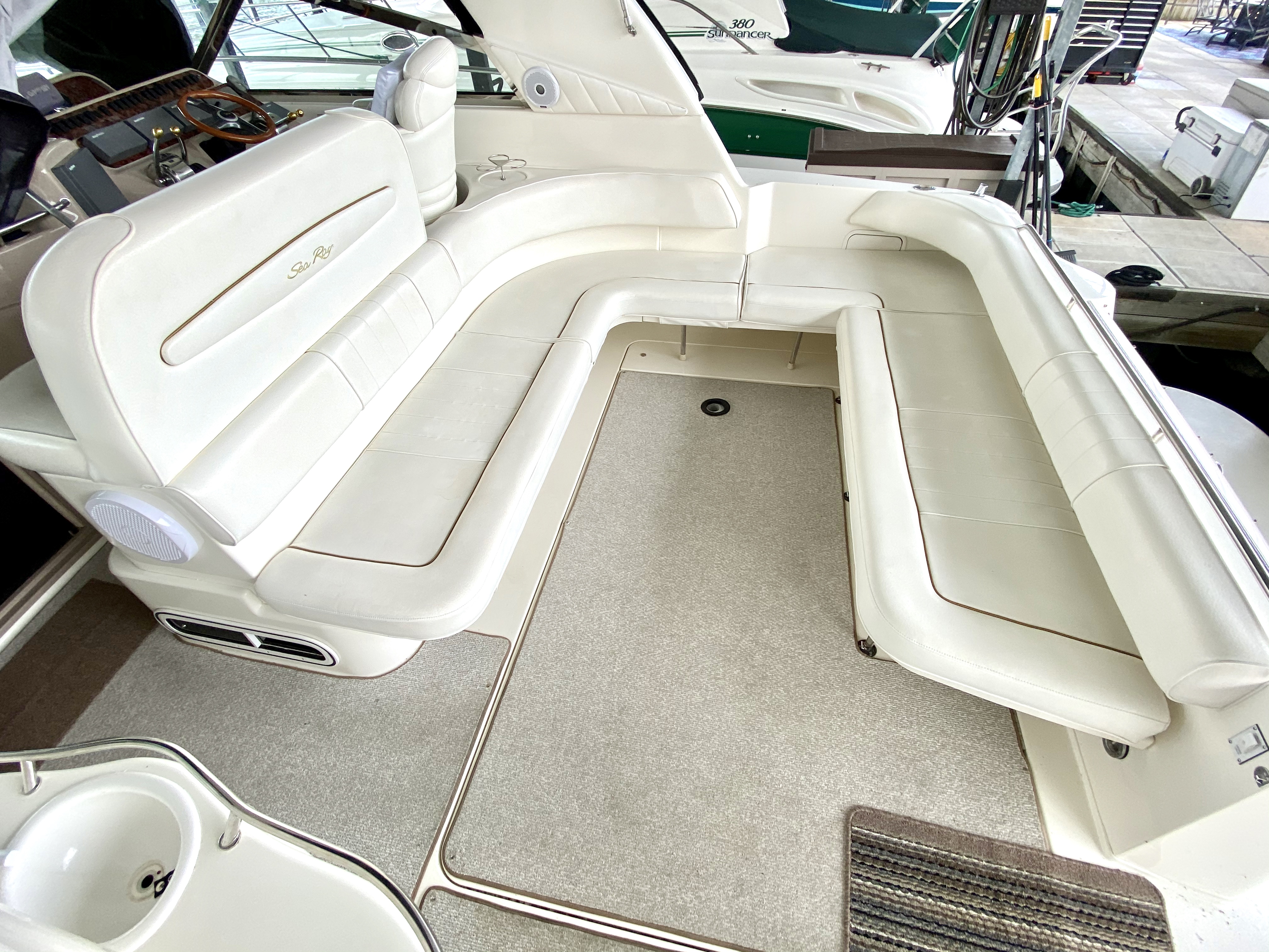 Popular fresh-water Sea Ray offers lavish midcabin interior with premium décor package, two staterooms, two heads, and large cockpit. Fresh bottom paint, new canvas/enclosures, upgraded Fusion speakers. Extremely Clean, always in freshwater and in great shape. Call for more details on this “turn key” Sea Ray.