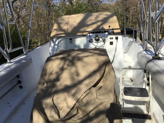 Has Rear Platform with Ladder and Chart Plotter; Fish Finder Runs Strong.