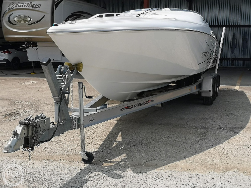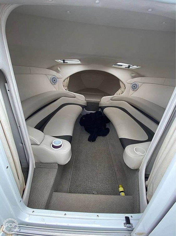 This boat is located in Rockwall, Texas and is in great condition. She is also equipped with twin Mercruiser engines that have only 295 hours.