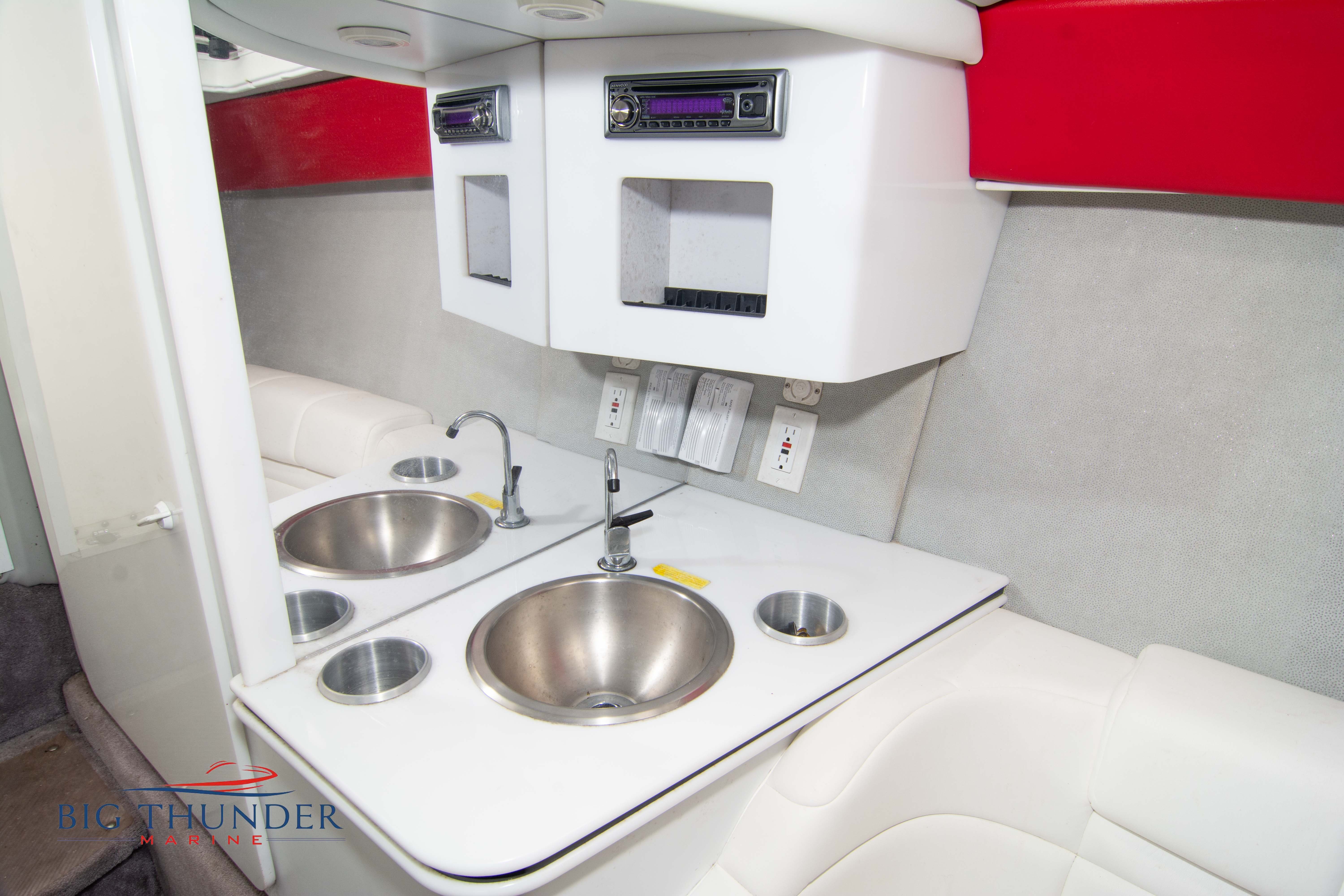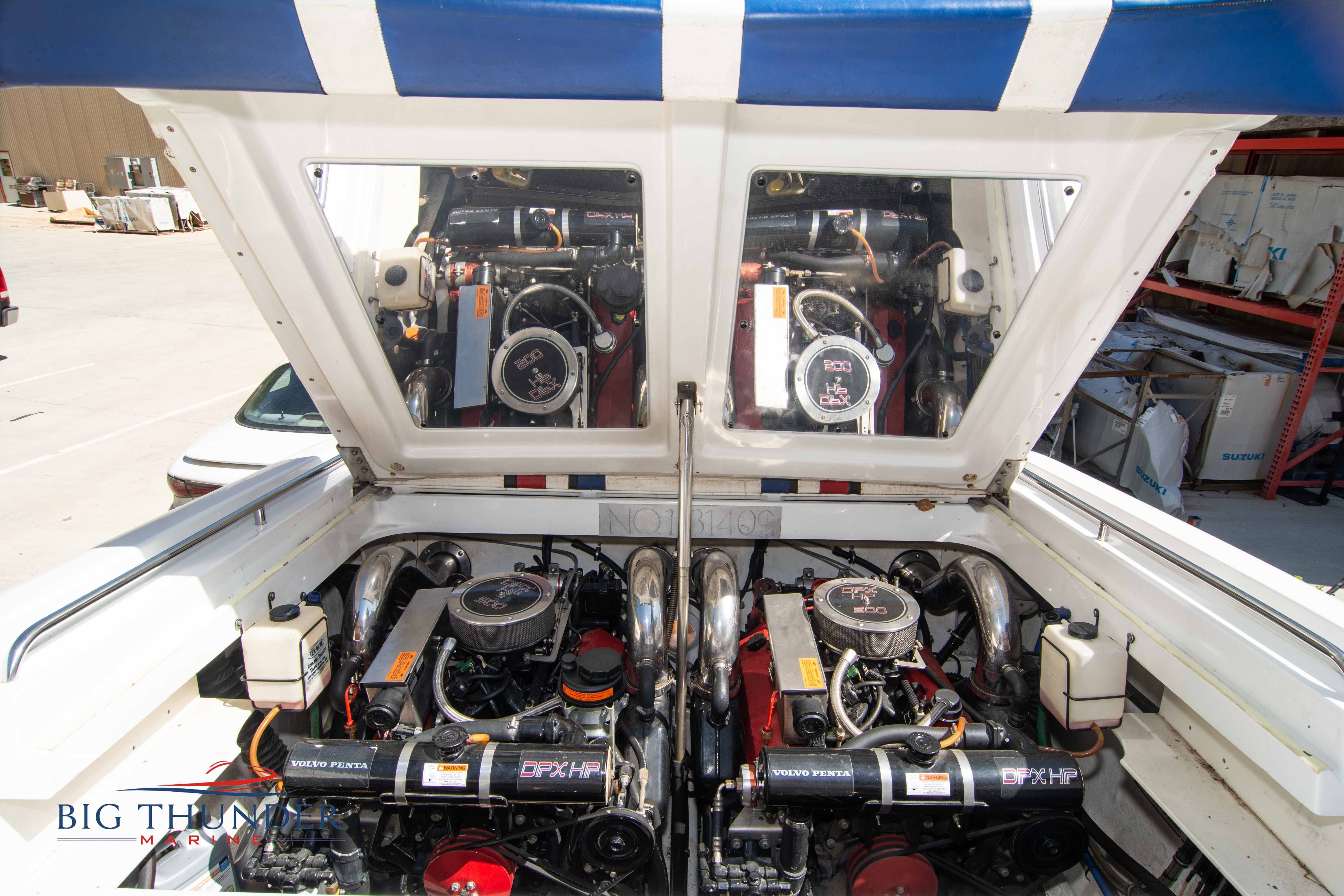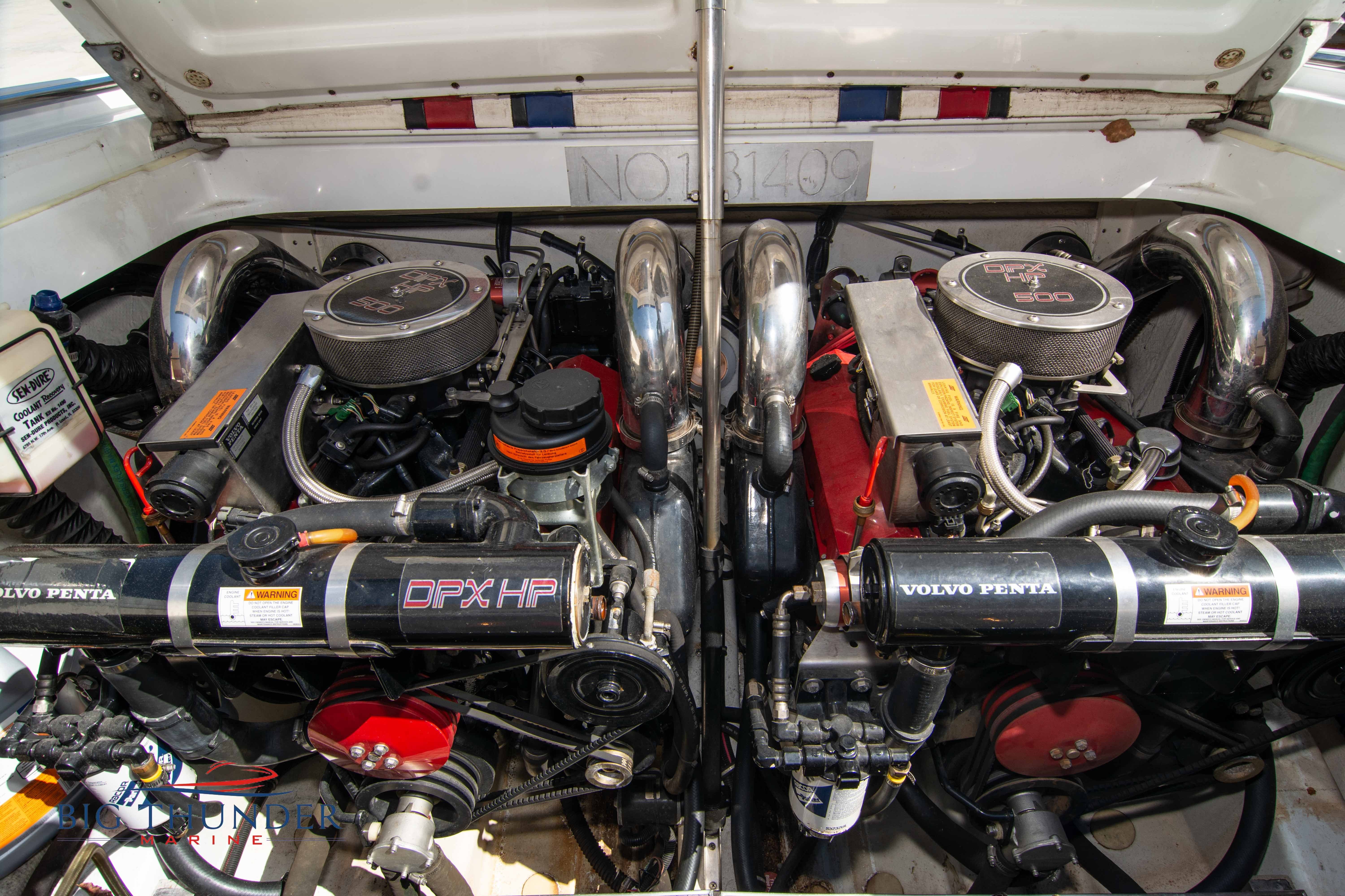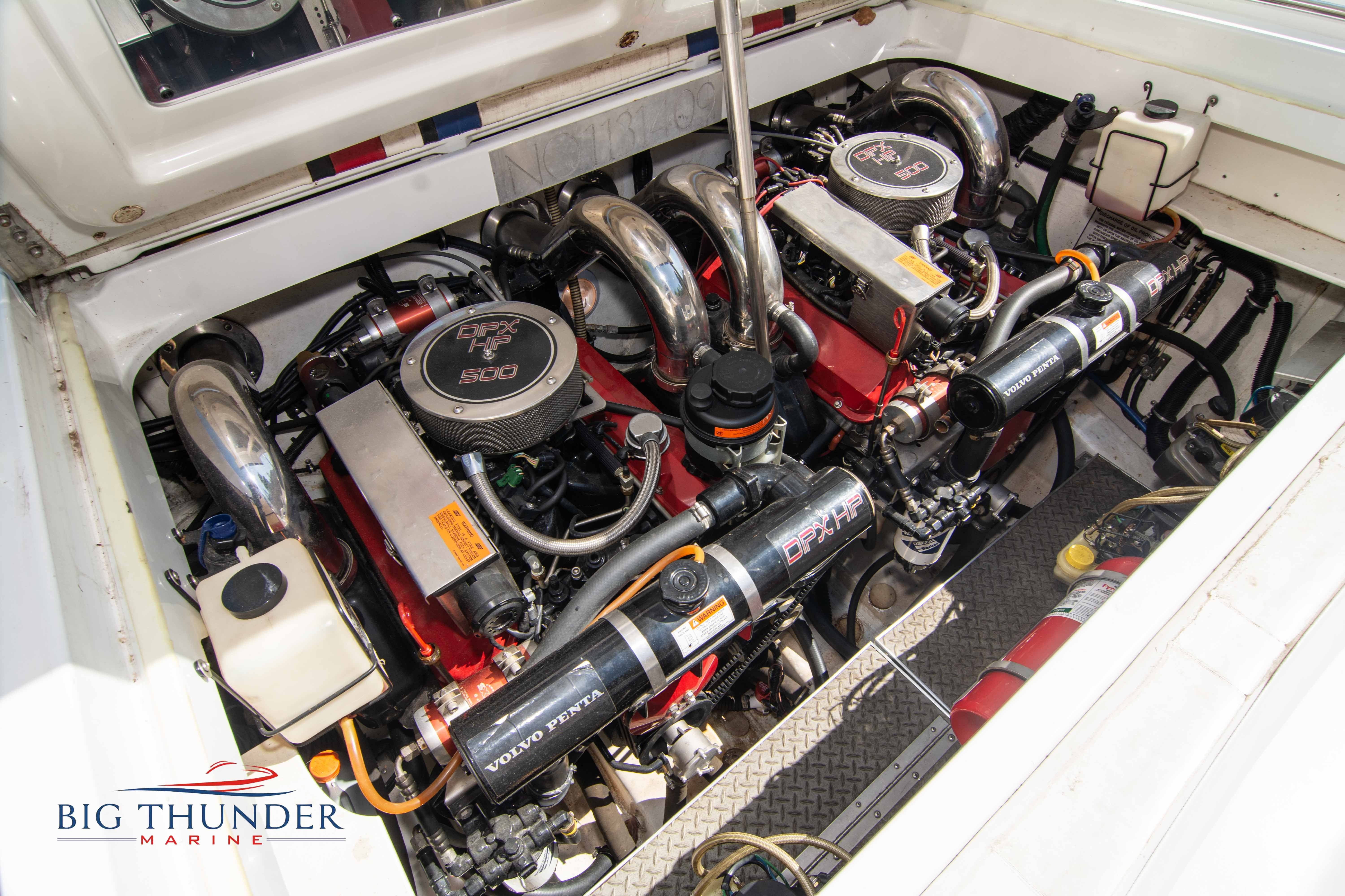 2000 Formula 353 FAStech Volvo DPX 500 (345 hours on meter) w/ DPX Duoprop drive, Aeromarine K-Planes w/ indicators, Bilge blower, Halon system, Garmin GPS 128, Depth finder, Compass, VHF marine radio, Kenwood stereo w/ helm remote, Gaffrig backlit performance gauges, Gaffrig controls, Latham power assist steering, Electric engine hatch, Dual battery switch, Battery charging system, Nav/Anchor lights, Interior courtesy lighting, Cockpit carpet, Electric bolsters, Swim ladder, Cabin filler cushions, Fresh water sink, Porta Potti, Regrigerator, Cockpit cover. No trailer. Call for more info and demo scheduling.