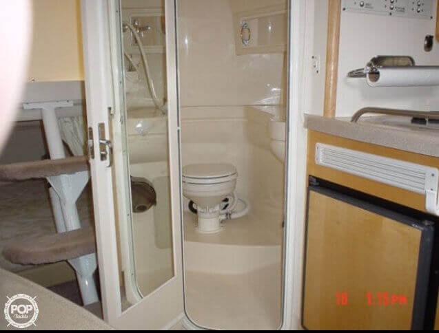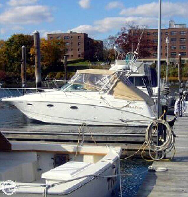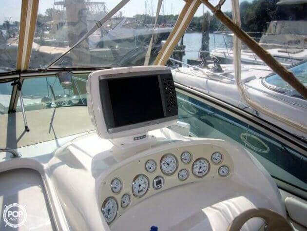 This boat is located in Haverstraw, New York and is in great condition. She is also equipped with twin Mercruiser engines that have 402 hours.