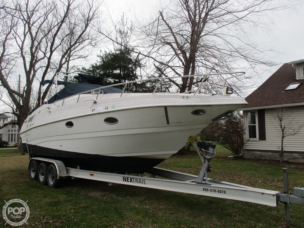 This boat is located in Brocton, New York and is in good condition. She is also equipped with twin Mercruiser engines.