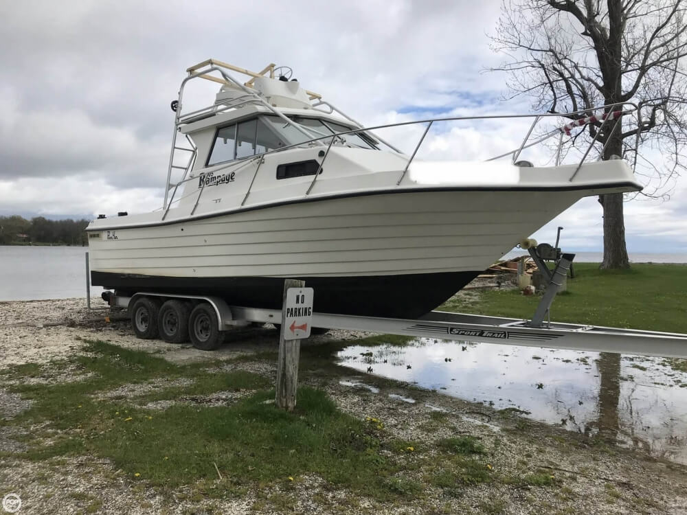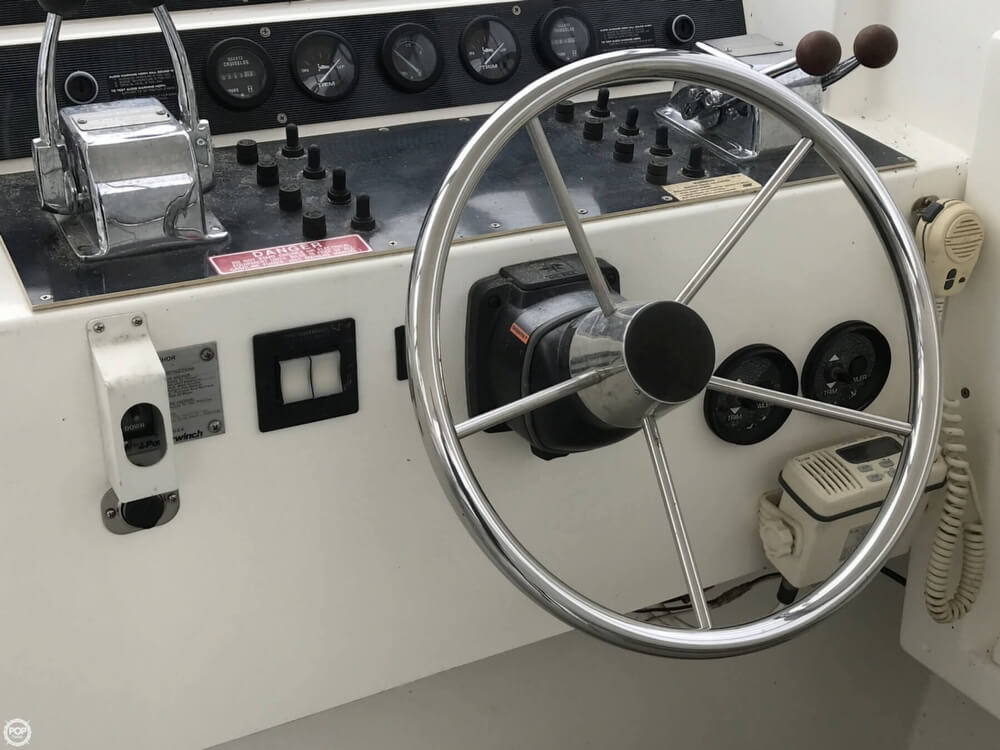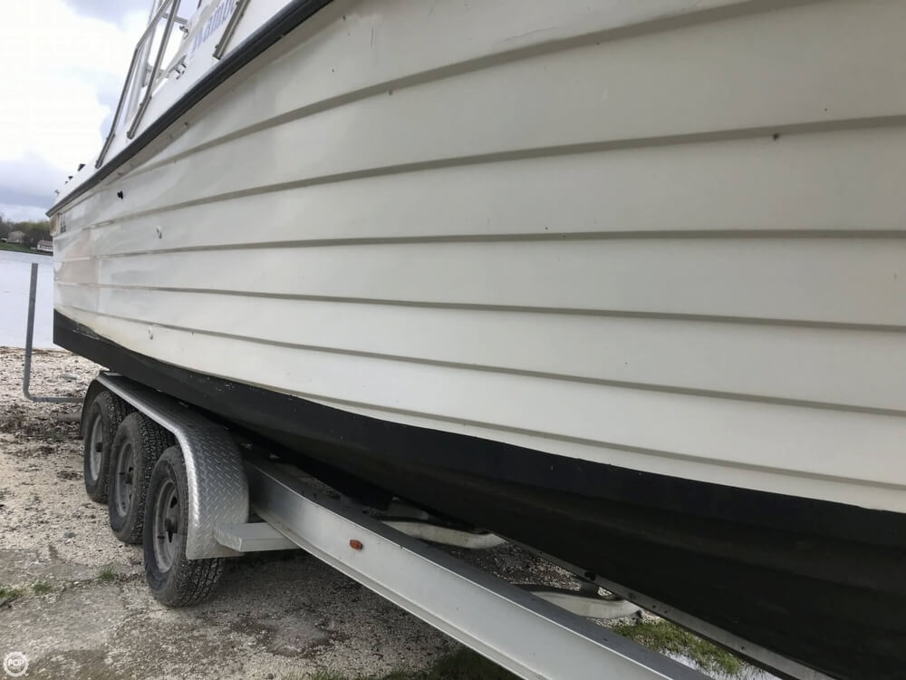 This boat is located in Henderson, New York and is in good condition. She is also equipped with twin Mercruiser engines that have only 200 hours.