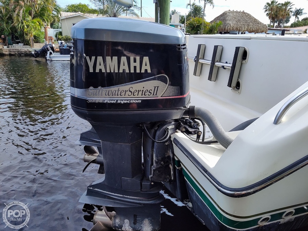 This vessel is located in Pompano Beach, Florida and is in decent condition. She is also equipped with twin Yamaha engines that have 1,100 hours.