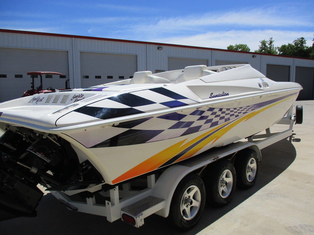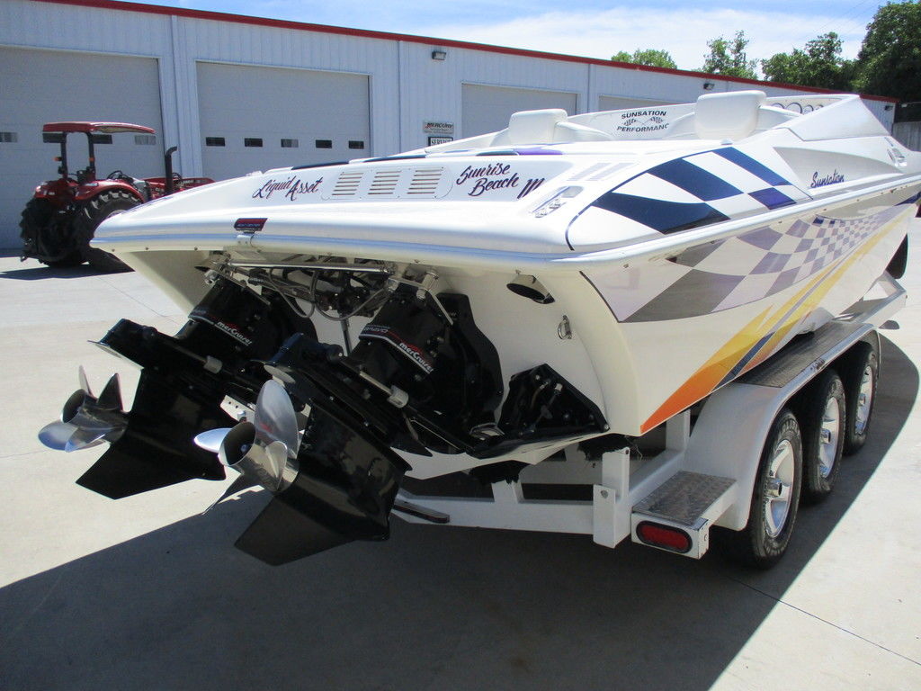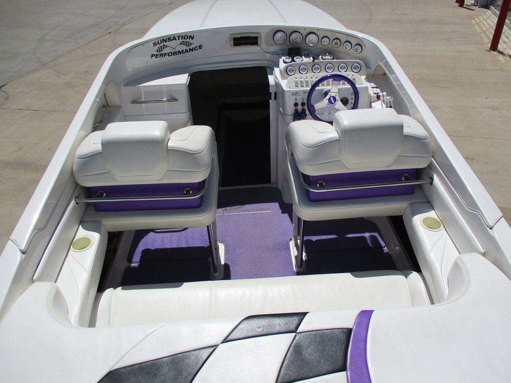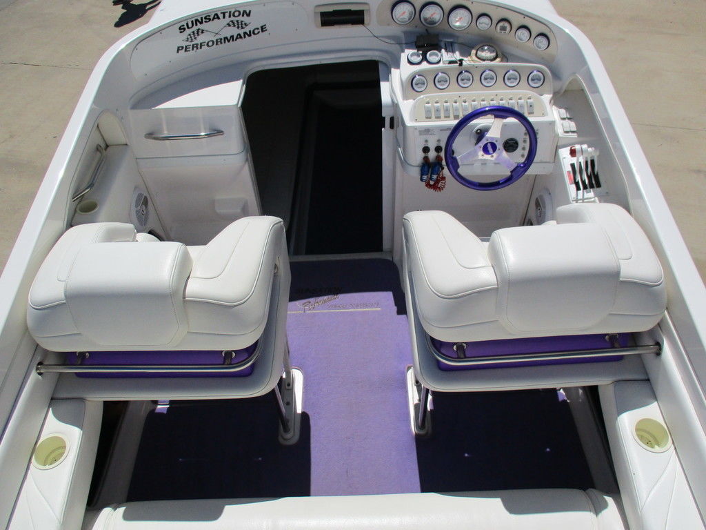 2000 Sunsation 32 Dominator powered with custom 500 carb motors with 372 hours, Bravo drives, hydraulic steering, Gaffrig gauges, Tab indiacator, seat bolsters, mushroom fender holders, cd player with dash phone mount, cockpit cover, trailer included