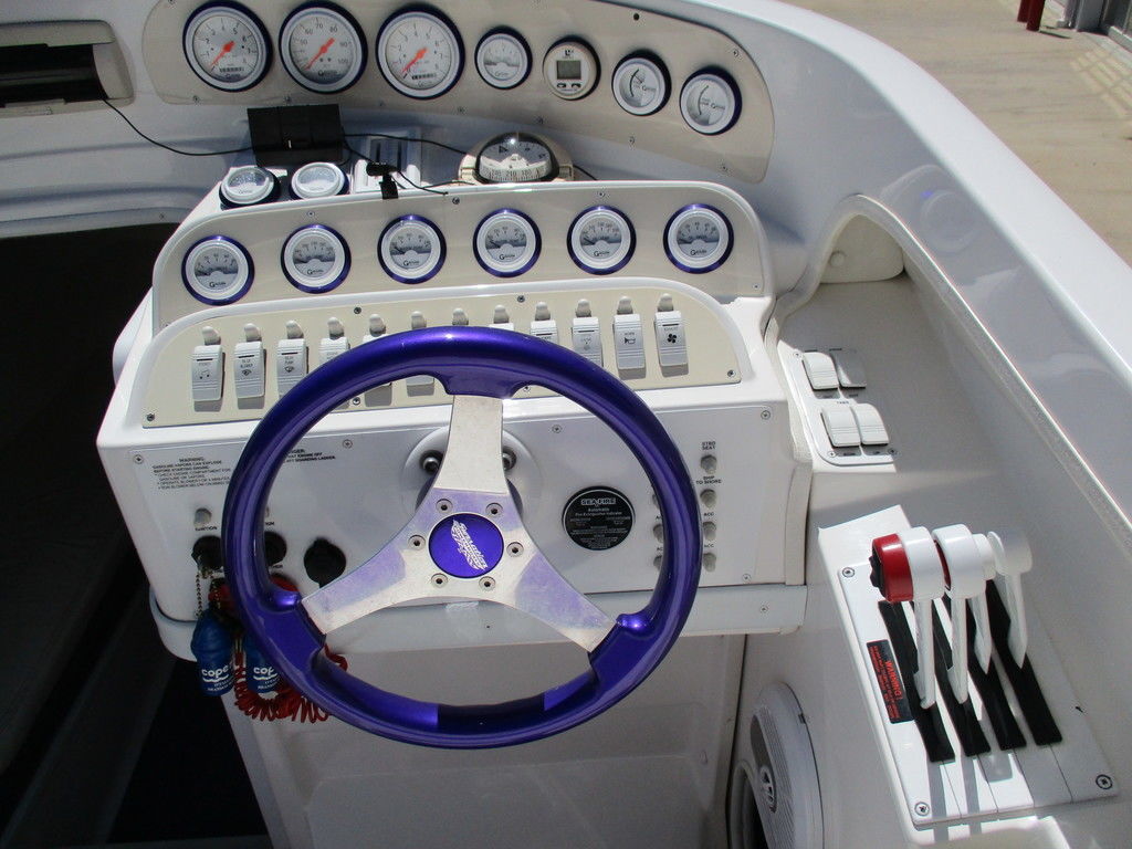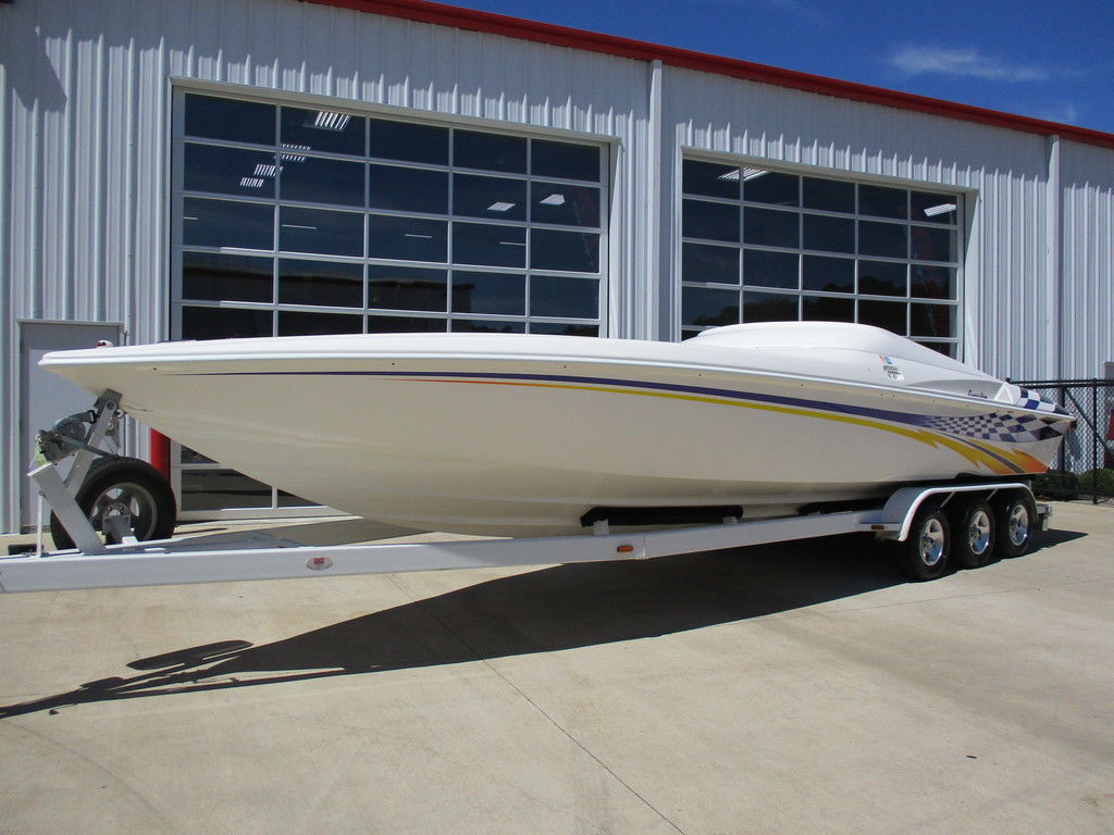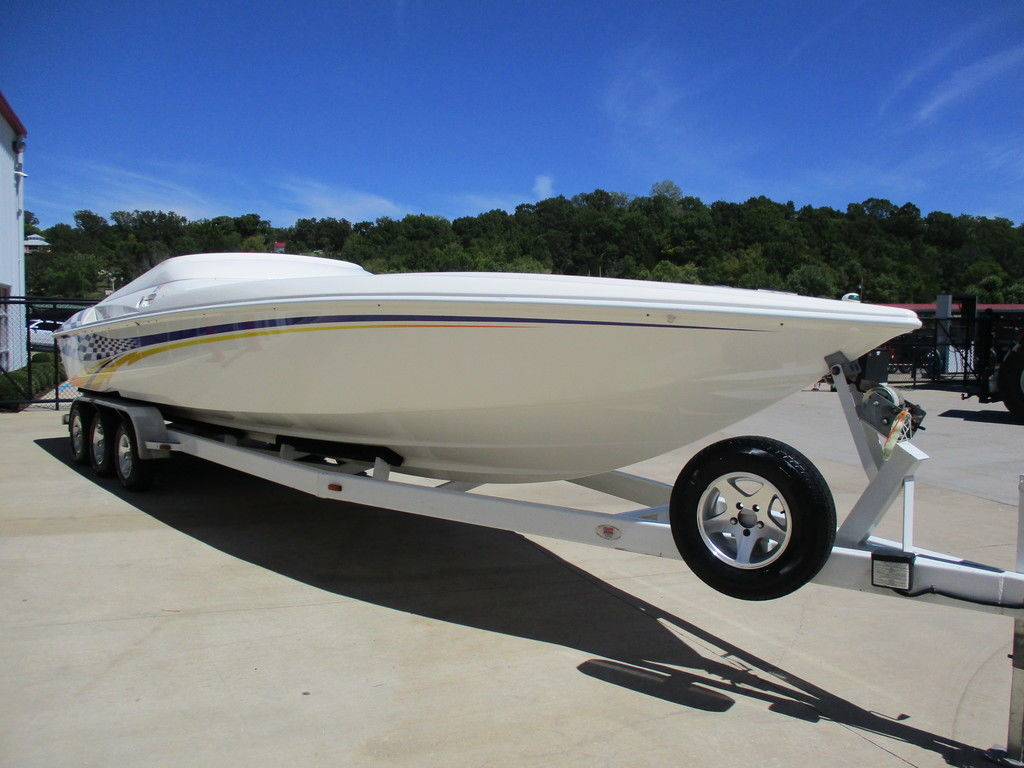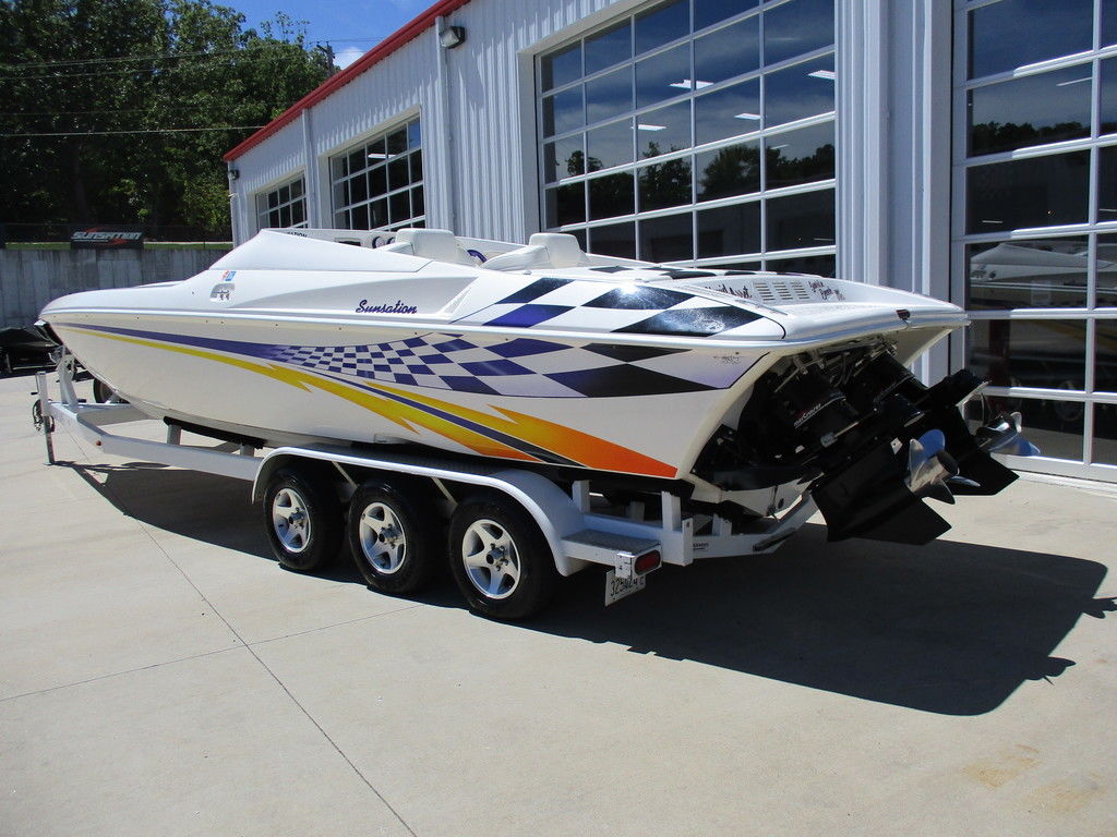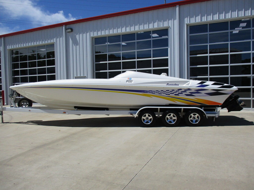 2000 Sunsation 32 Dominator powered with custom 500 carb motors with 372 hours, Bravo drives, hydraulic steering, Gaffrig gauges, Tab indiacator, seat bolsters, mushroom fender holders, cd player with dash phone mount, cockpit cover, trailer included