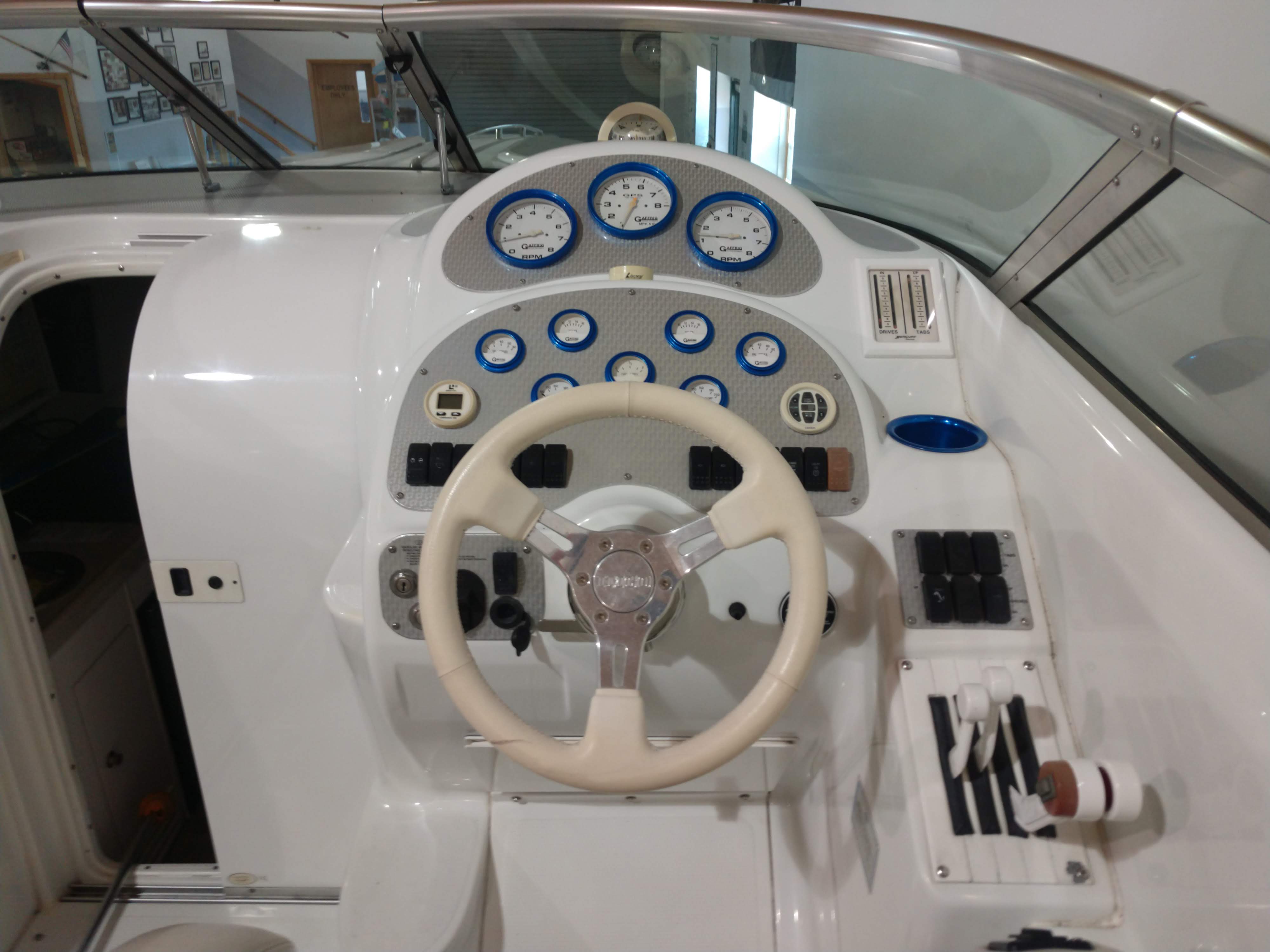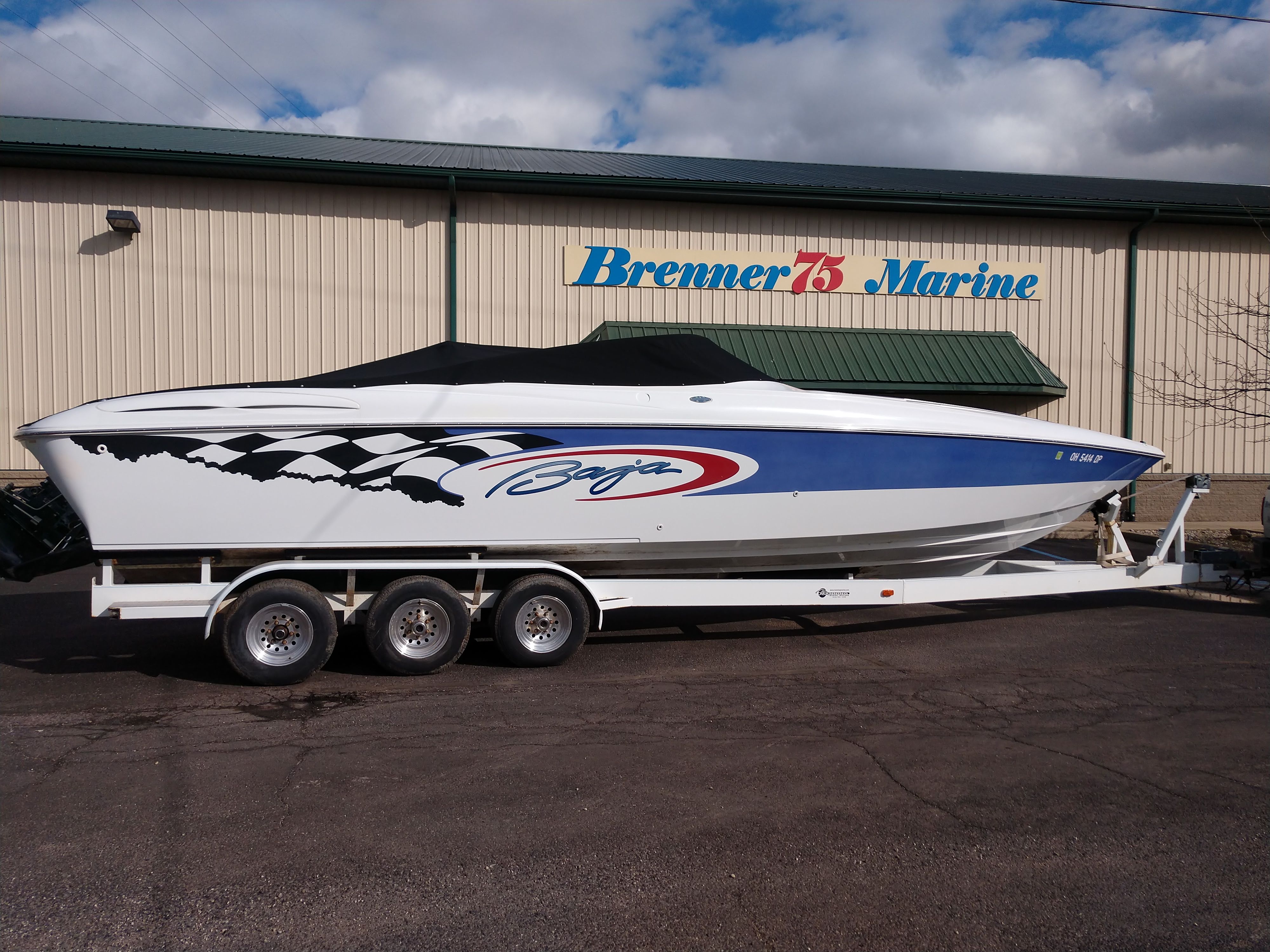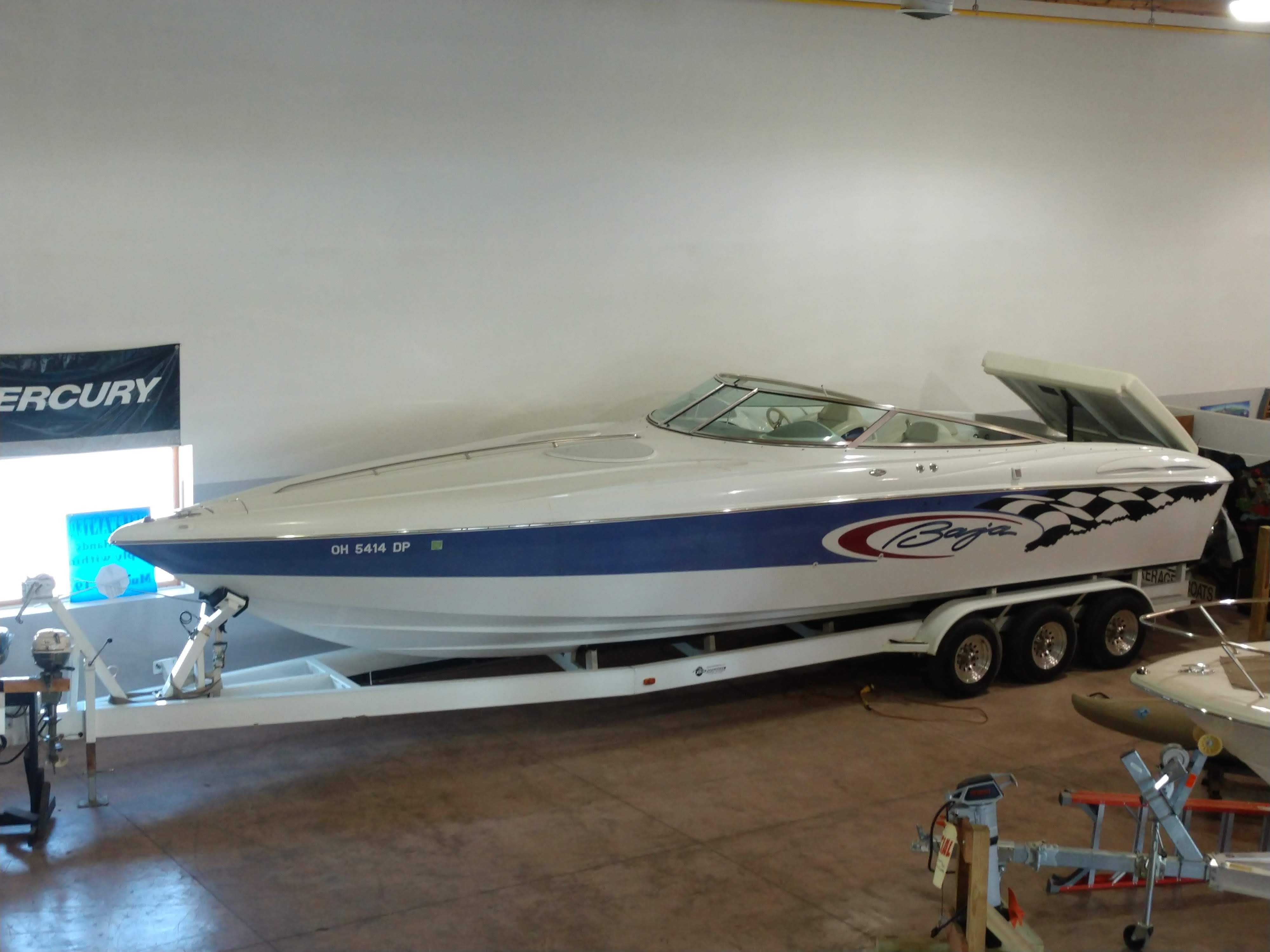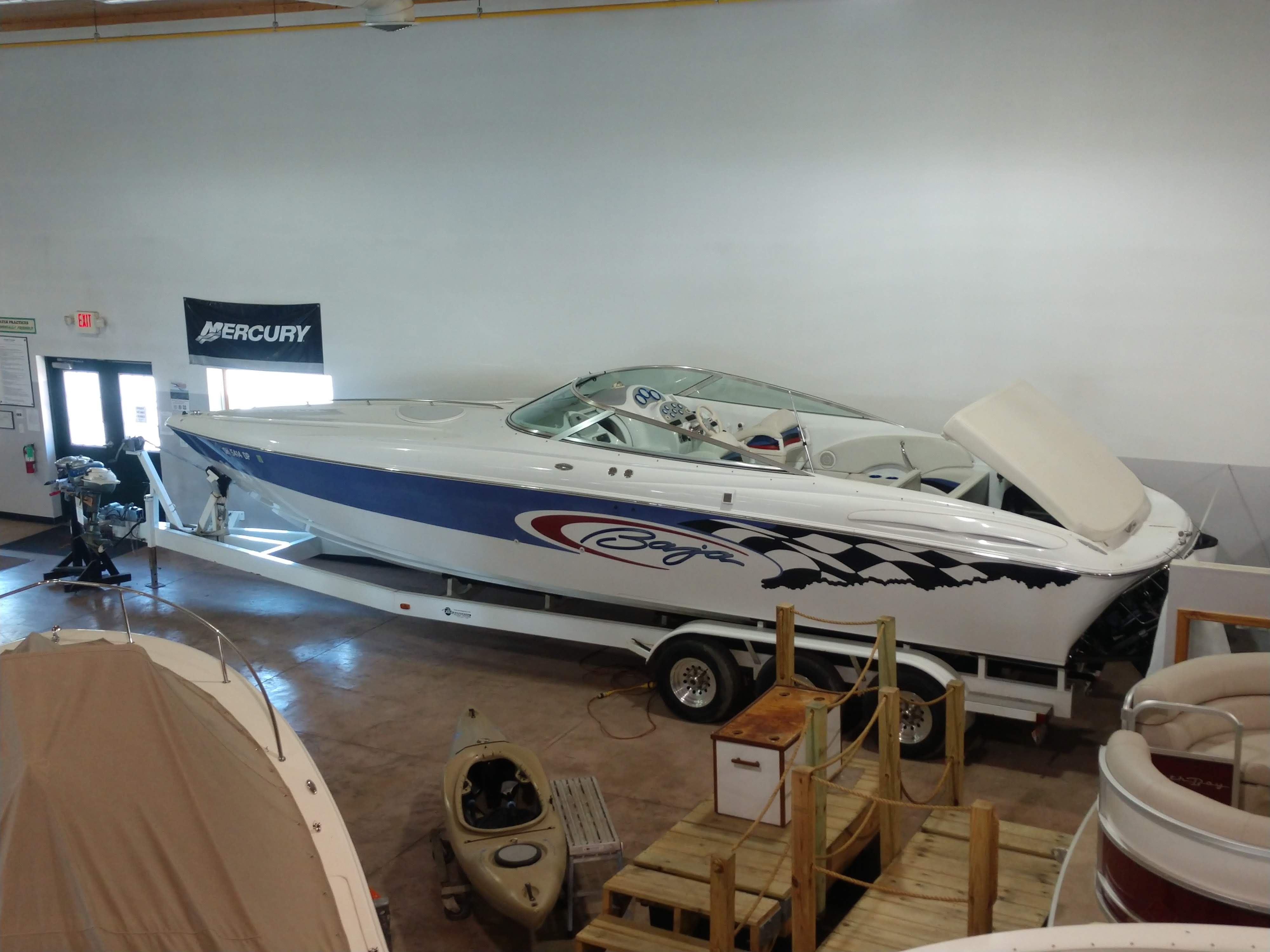 2001 Baja just in on the showroom floor. This boat is ready to go. It is powered with twin Mercury 502 MAG MPI Engines with 600 hours after the rebuilds. This boat has been detailed and ready for her next owner. Extras include cockpit cover, bow to stern cover, IMCO hydraulic steering installed, flat screen tv, dvd player, vcr, and microwave . It is located on the showroom floor at Brenner75 Marine. Open until 6 M-F and 2 on Saturdays.