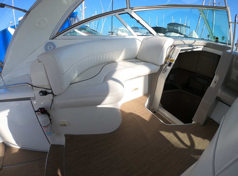 Port Side Chaise Lounger w Storage Underneath; City Water Connection; Stainless steel bow rails; Port-Side Transom Gate; Hot & Cold Cockpit Shower; Boarding Ladder; Trunk Storage w Electrical Connections; Formed in Fender Holders; Bennett trim tabs.