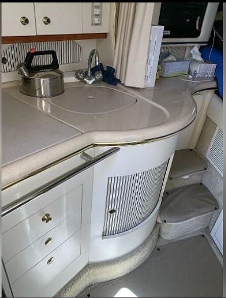 This vessel is located in Edgewater, Maryland and is in great condition. She is also equipped with twin Mercruiser engines that have 600 hours.