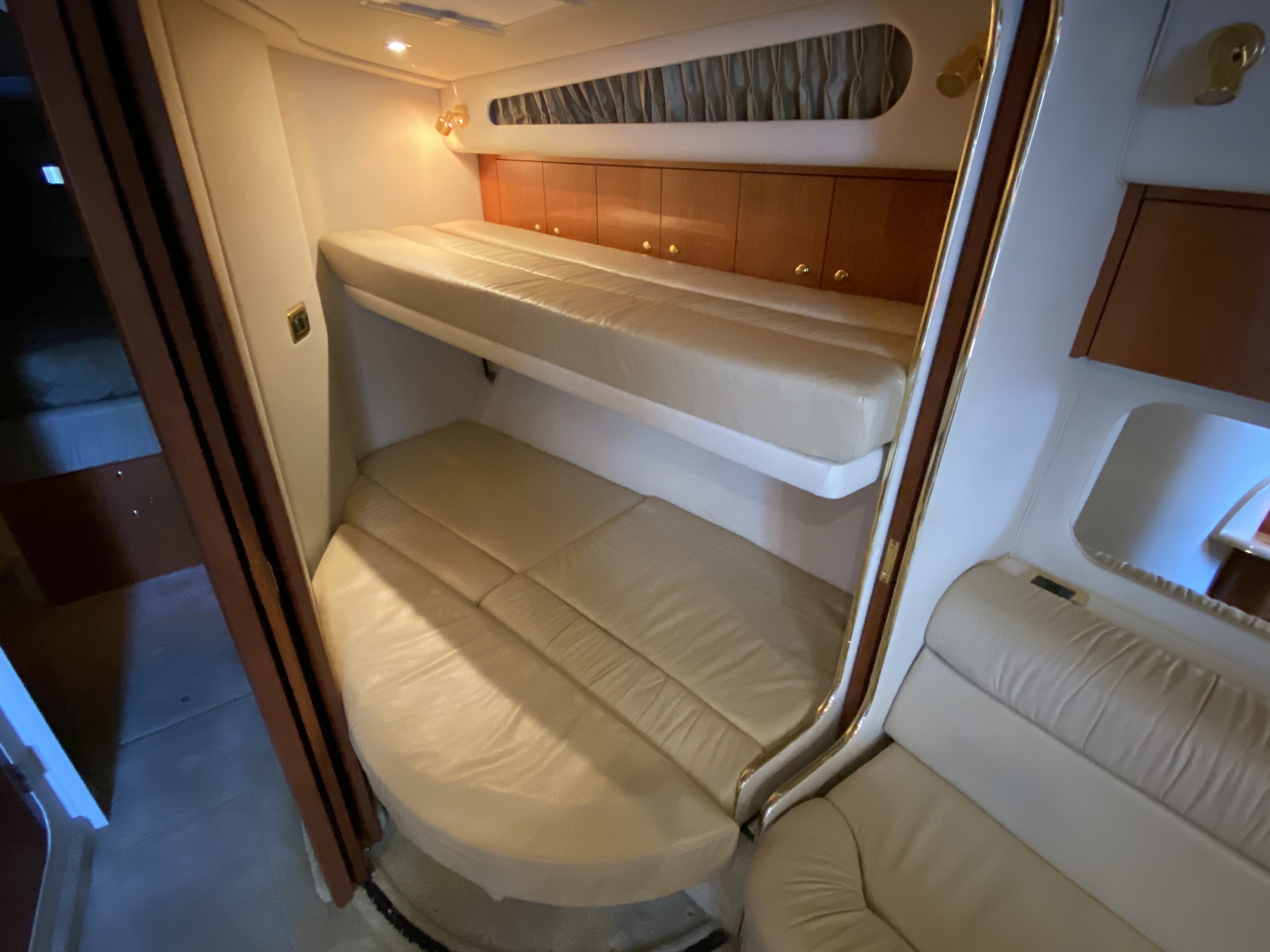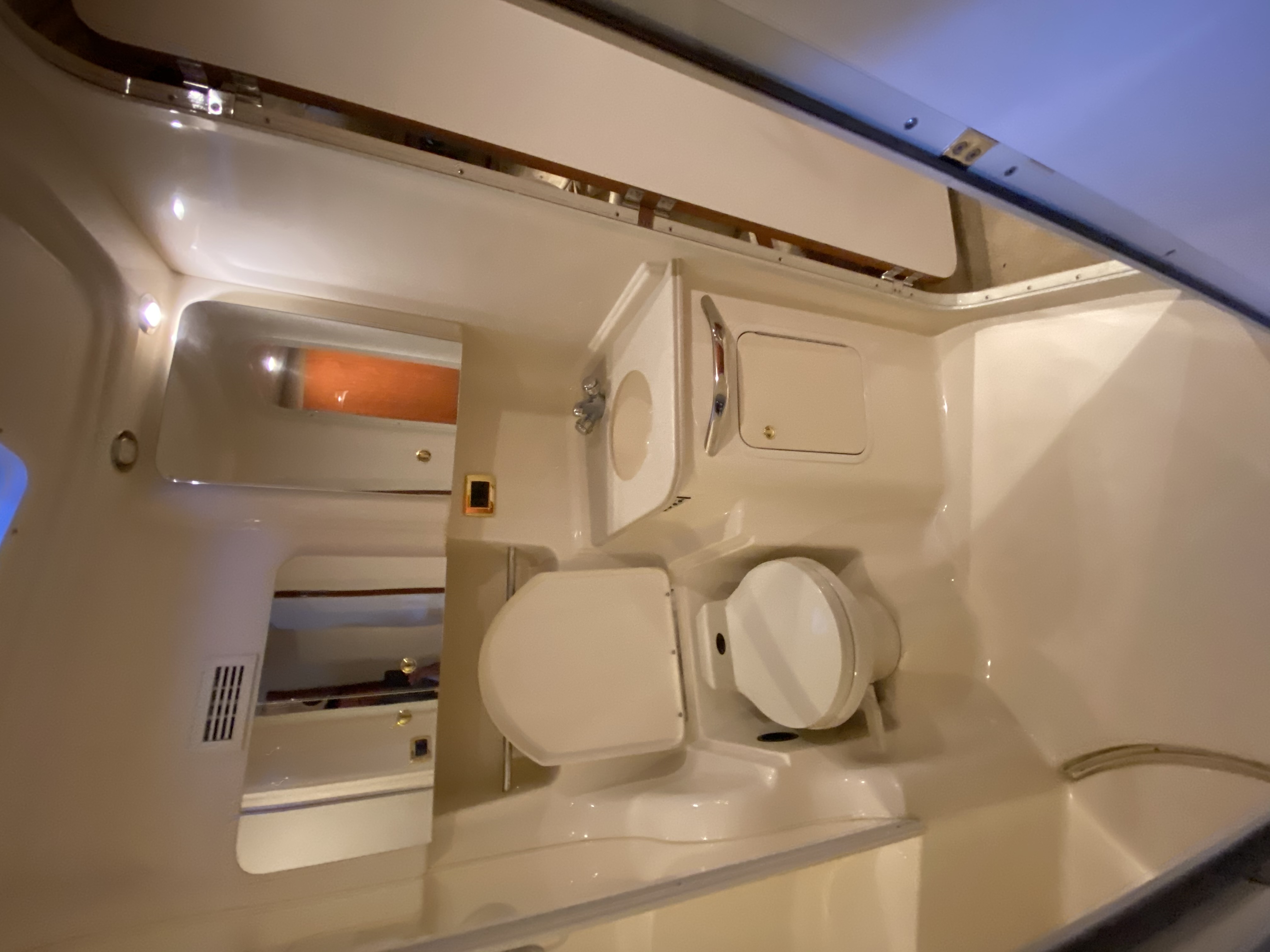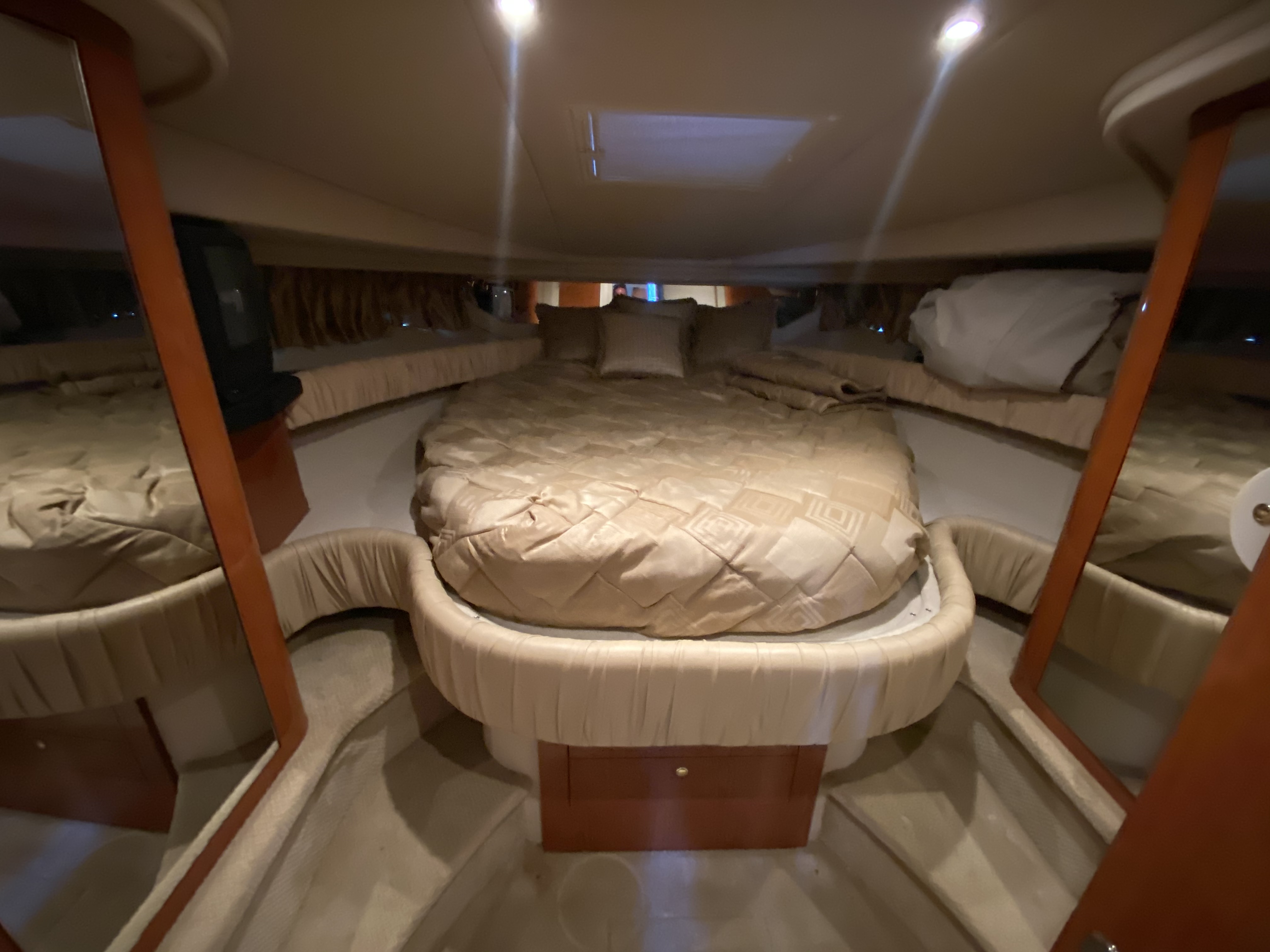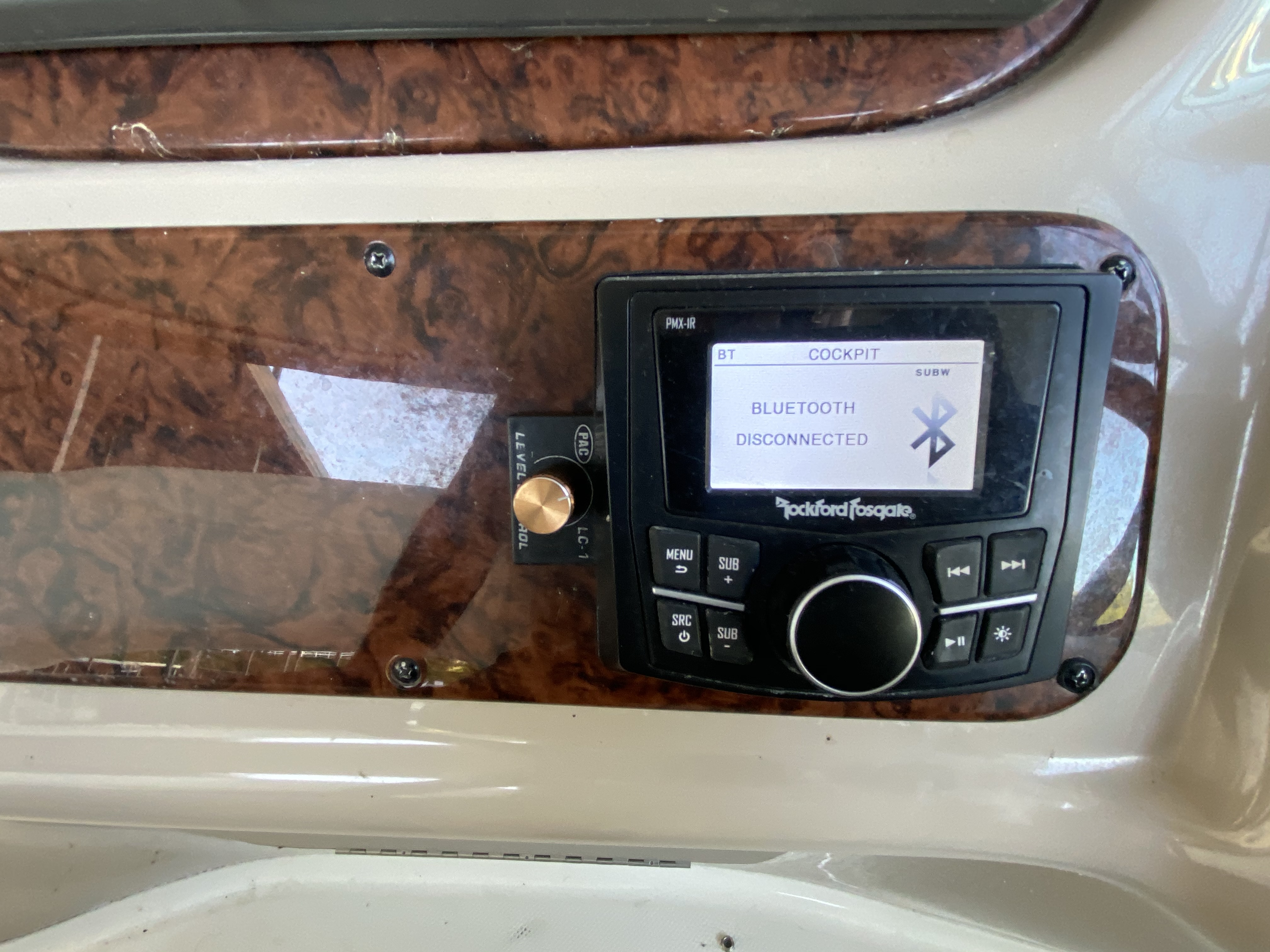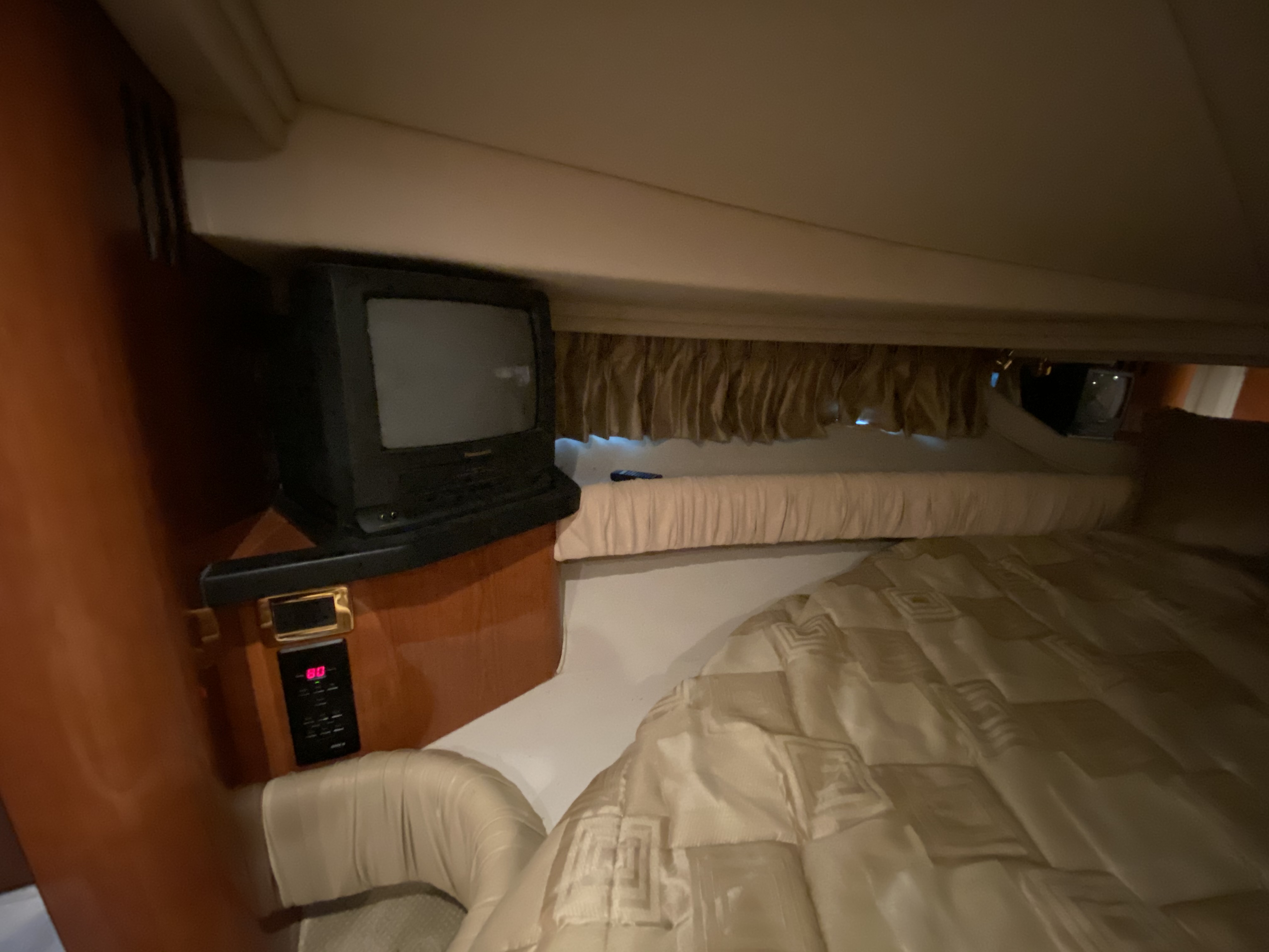 Accommodations: Queen berth in 1st stateroom, bunk beds in 2nd stateroom, vacuflush head with enclosed shower. Salon has 19’ Panasonic TV with a VCR and upgraded stereo (Rockford Fosgate amps, JL speakers/subwoofers), flatscreen with DVD player in salon.