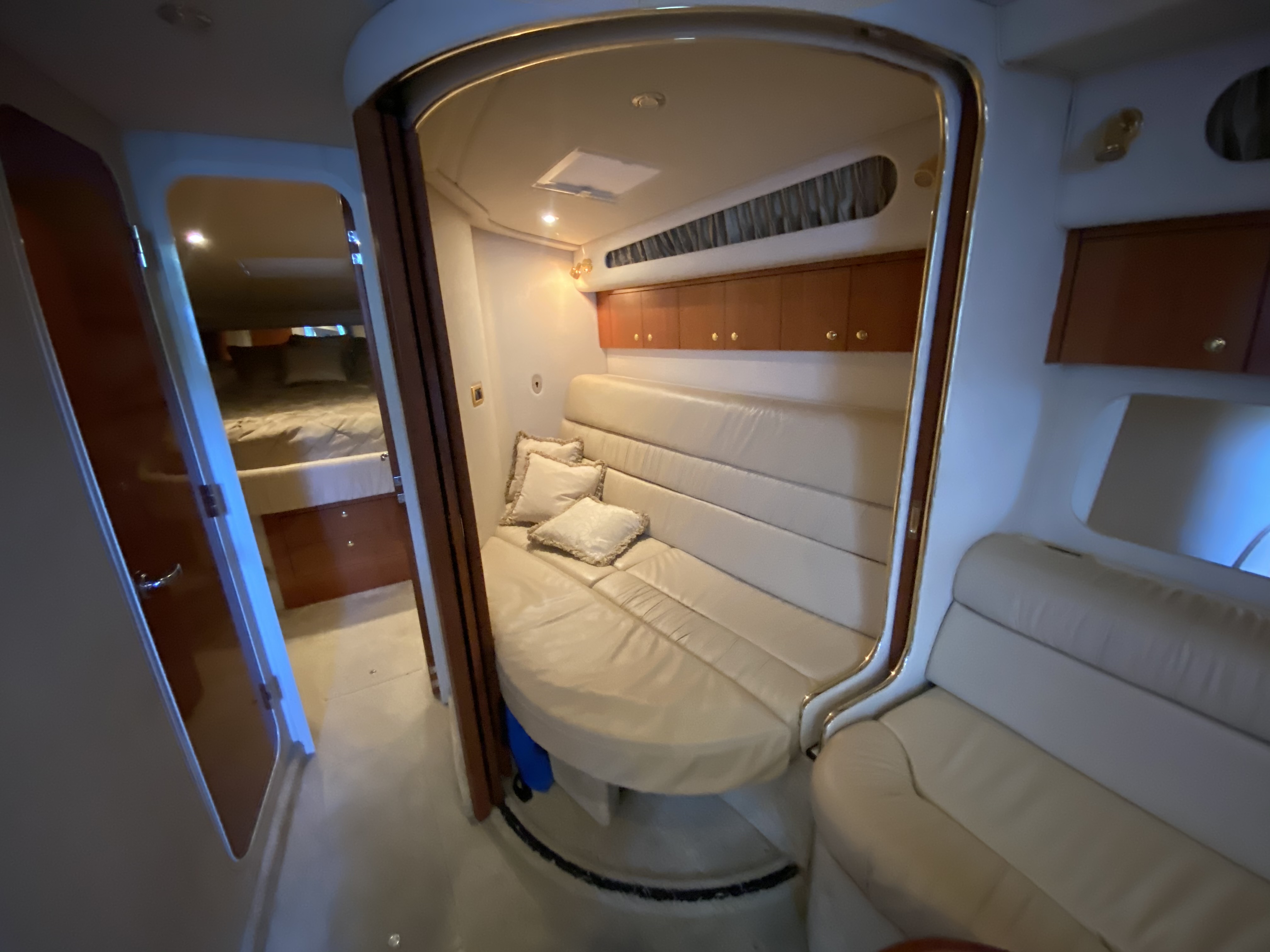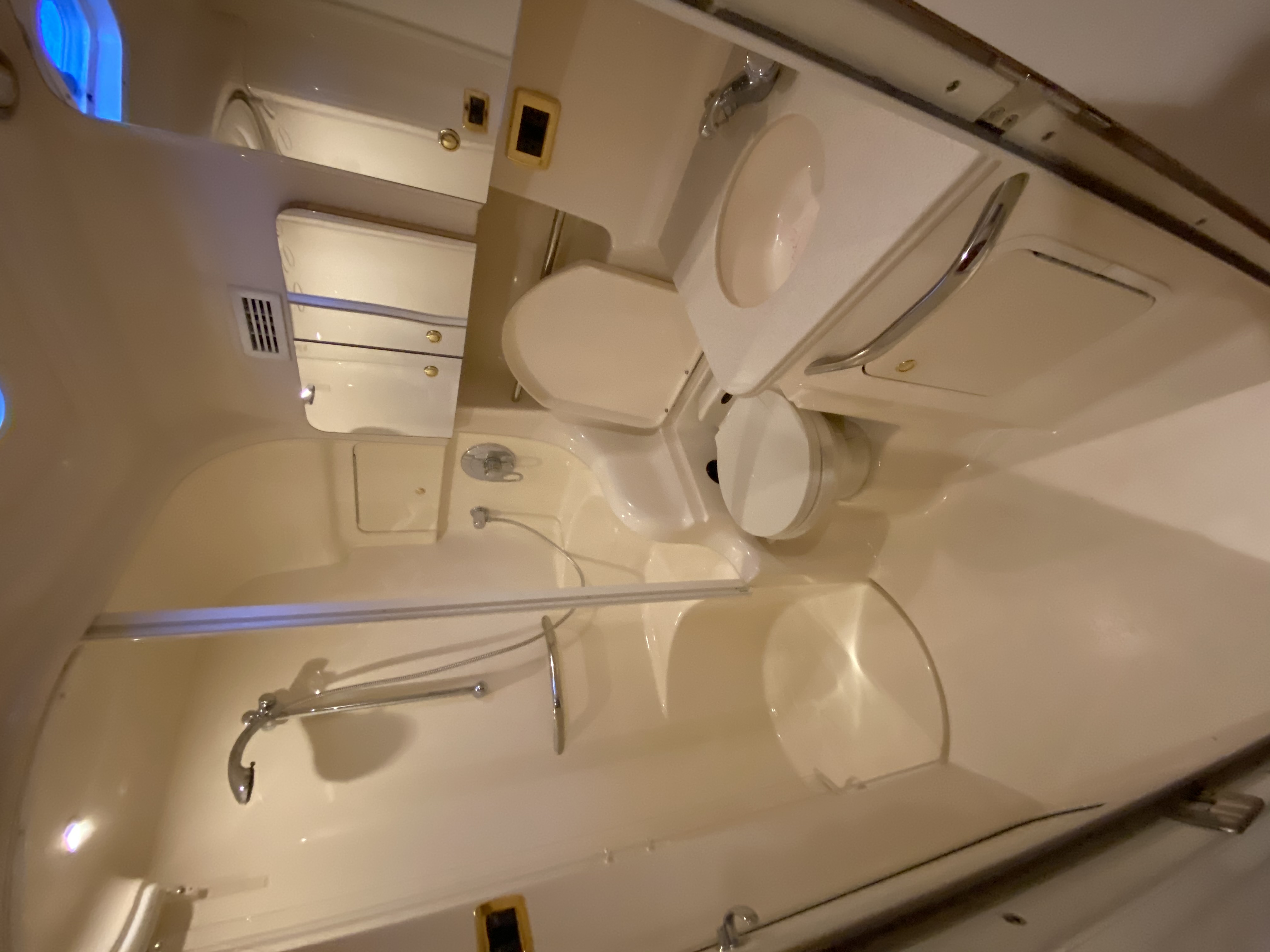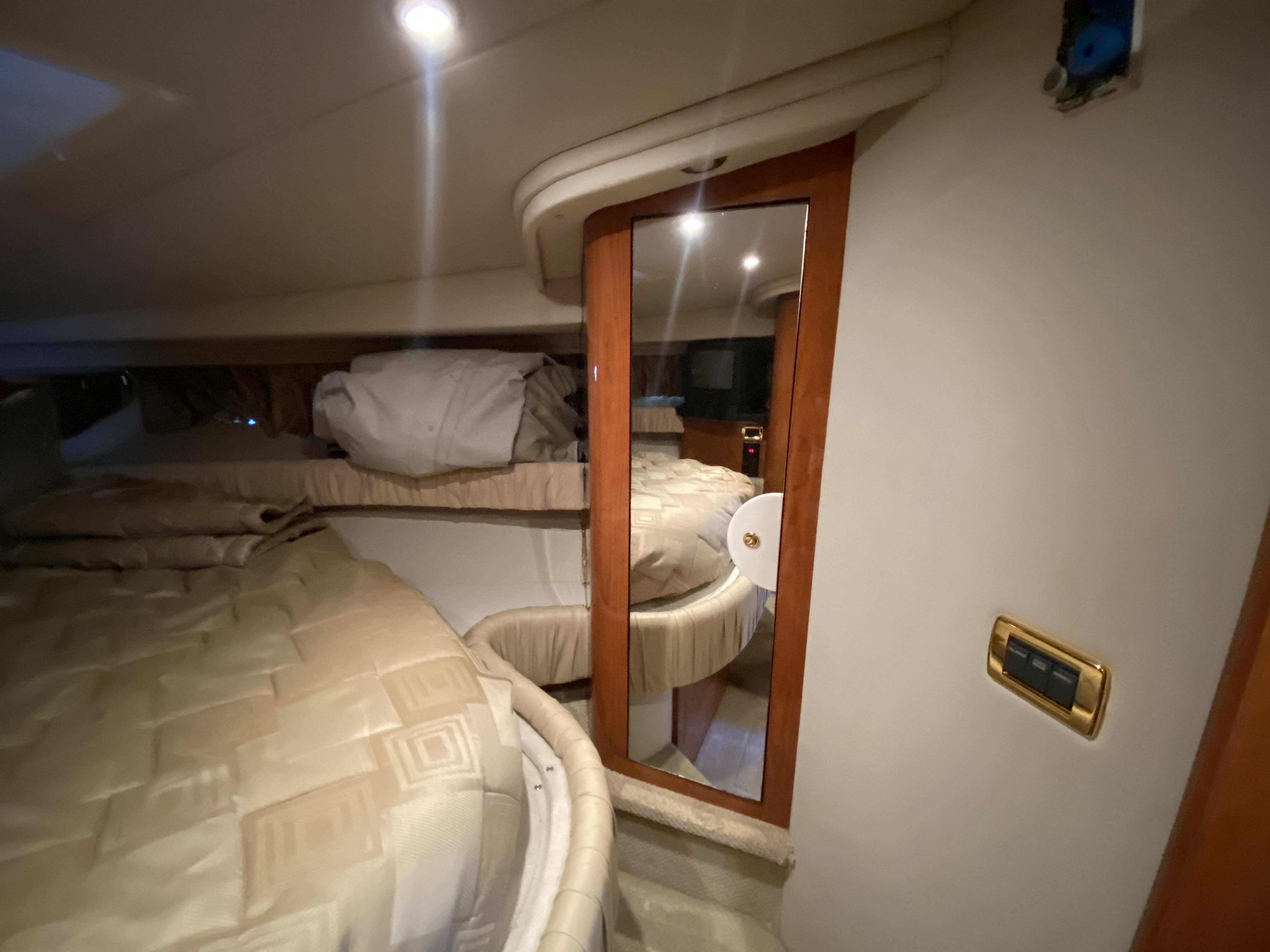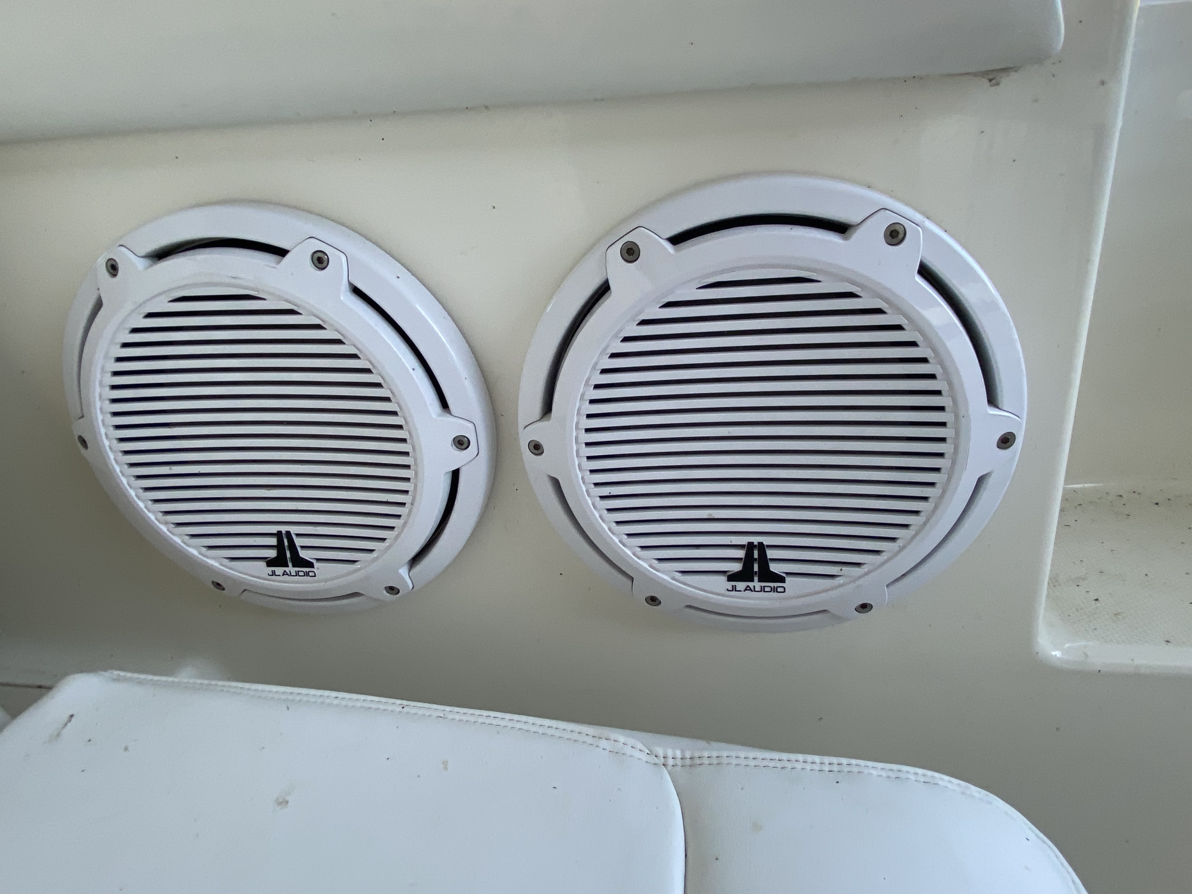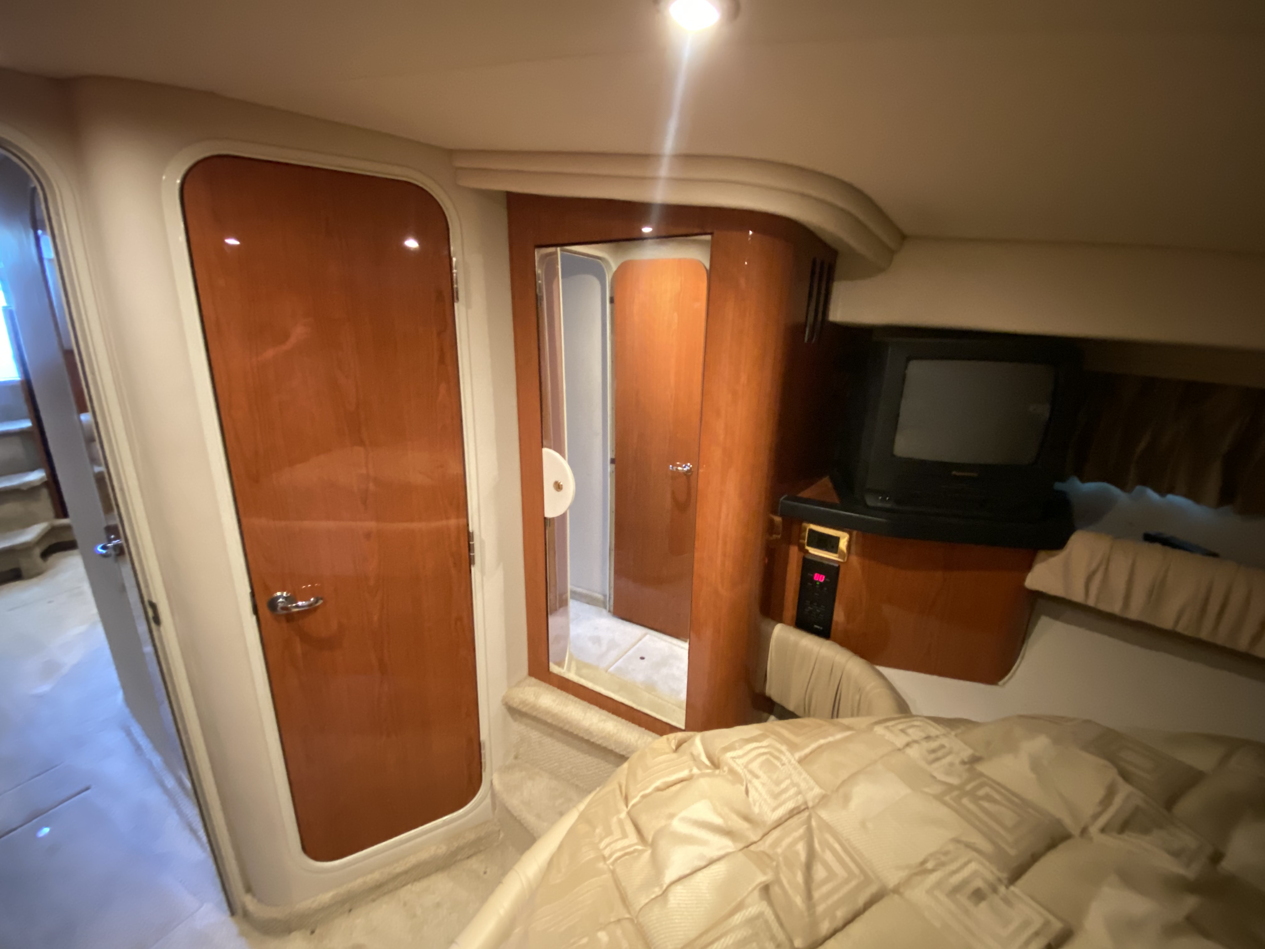 Accommodations: Queen berth in 1st stateroom, bunk beds in 2nd stateroom, vacuflush head with enclosed shower. Salon has 19’ Panasonic TV with a VCR and upgraded stereo (Rockford Fosgate amps, JL speakers/subwoofers), flatscreen with DVD player in salon.