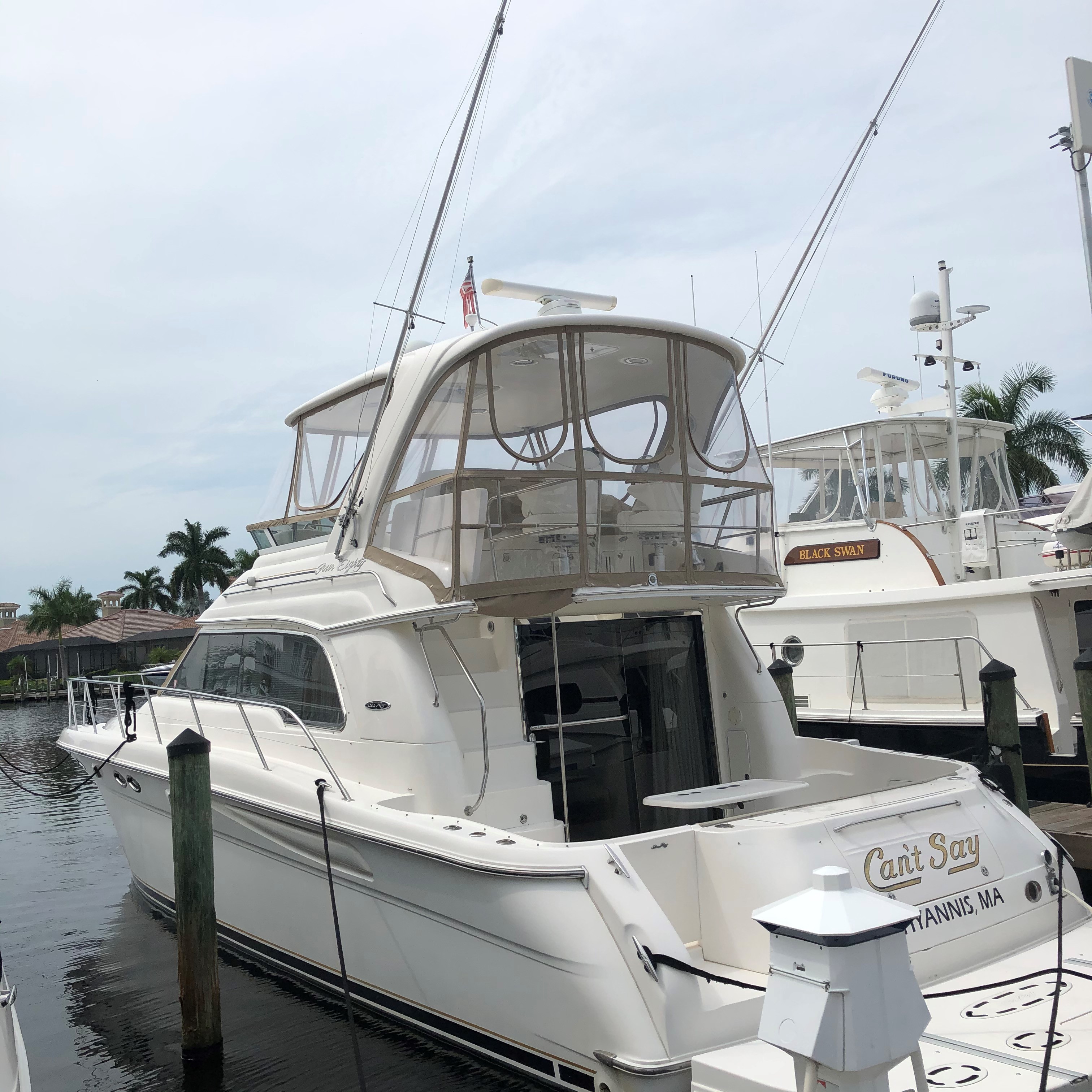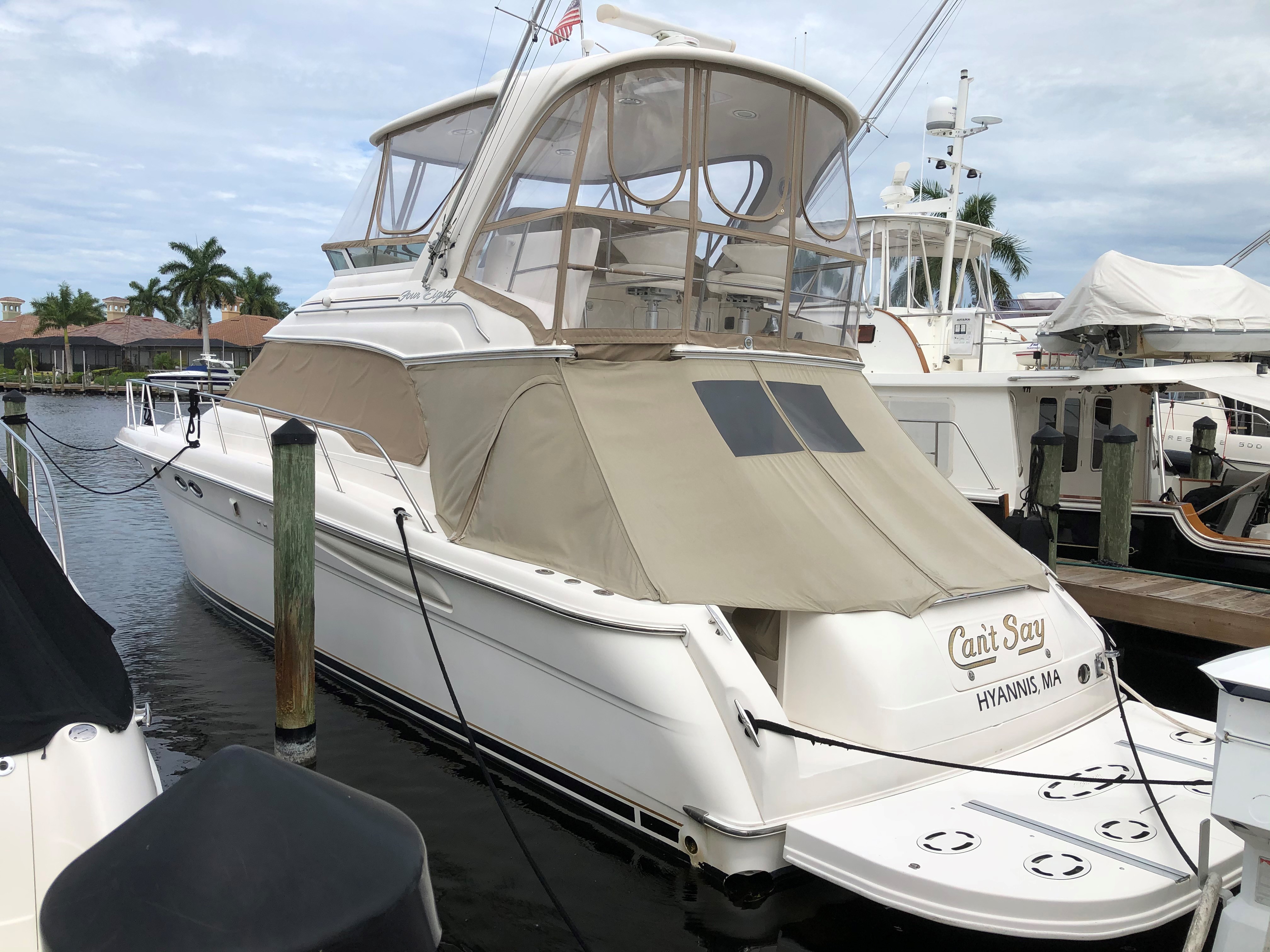 Sea Ray 480 Sedan Bridge 2001 One Owner, Excellent Condition, Well Maintained Amenities - Lower cabin area includes, Master State Room, Guest State Room and Starboard State Room with Dual Bunks. - Dinette Table with seating for four and 360 degree panoramic view. - Two Full Spacious Heads - Four Zones Air Conditioning Specifications - Overall Length 48” 3’ - With Hydraulic Platform 51’ 2” - Beam 15’ 3” - Fuel Capacity 500 Gal - Water Capacity 140 Gal - Holding Tank 68 Gal - Twin 640 hp CAT 3196 TA 1575 Hrs Features - 10 KW Generator 2075 Hrs - New Bridge Canvas Tan - Bow, Stern and Side Window Sun Cover Canvas - Stainless Steel Package Slider Windows - Outrigger, Rod Holders, Live Well Fish Finder - Raytheon Electronics Dual Chat Plotter Screens, GPS, Radar, Auto-Pilot, ect. - Washer Dryer - Four Burner Stove - Microwave - Central Vac - Sub-Zero Fridge Freezer - Spare Props - Six Man Self Inflating Raft - Aft Bench Seat - Cock Pit Dinning Table - Dual Captain Helm Chairs - Bridge Couch Seating and Dining Table - Hydraulic Swim Platform with Jet Ski Mounting Davits.