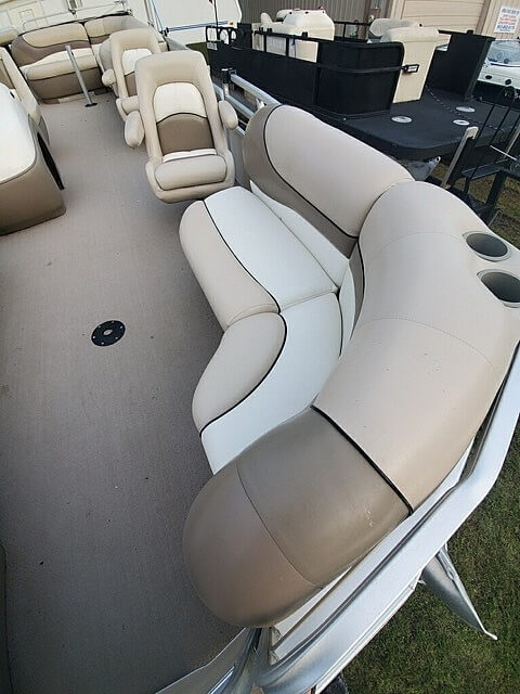 FAMILY PONTOON BOAT READY TO GO CRUISING! BOW COUCH SEATING WITH TABLE! BIMINI TOP! WELL POWERED WITH AN I/O 135HP MERCRUISER! MUCH MORE INCLUDED!