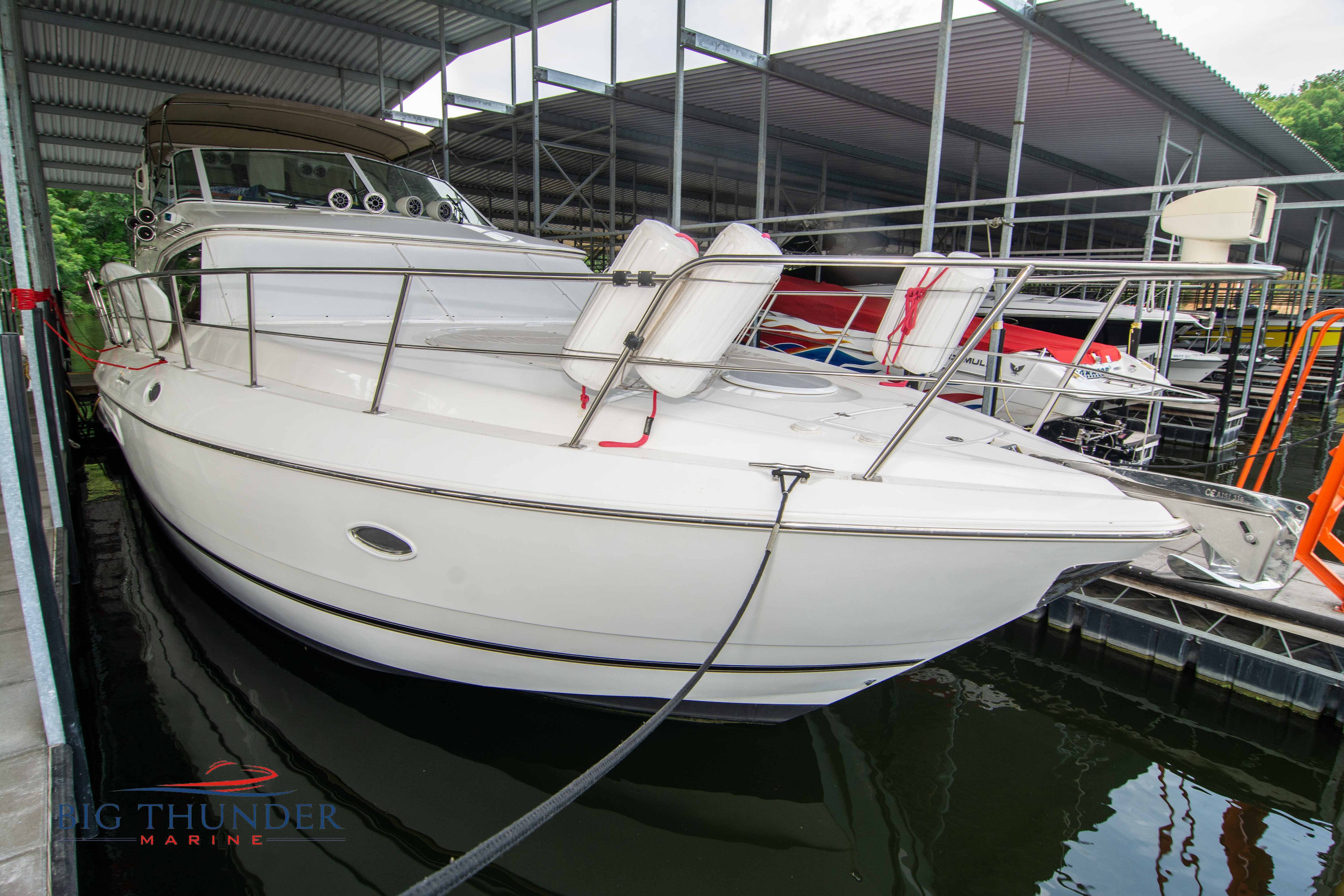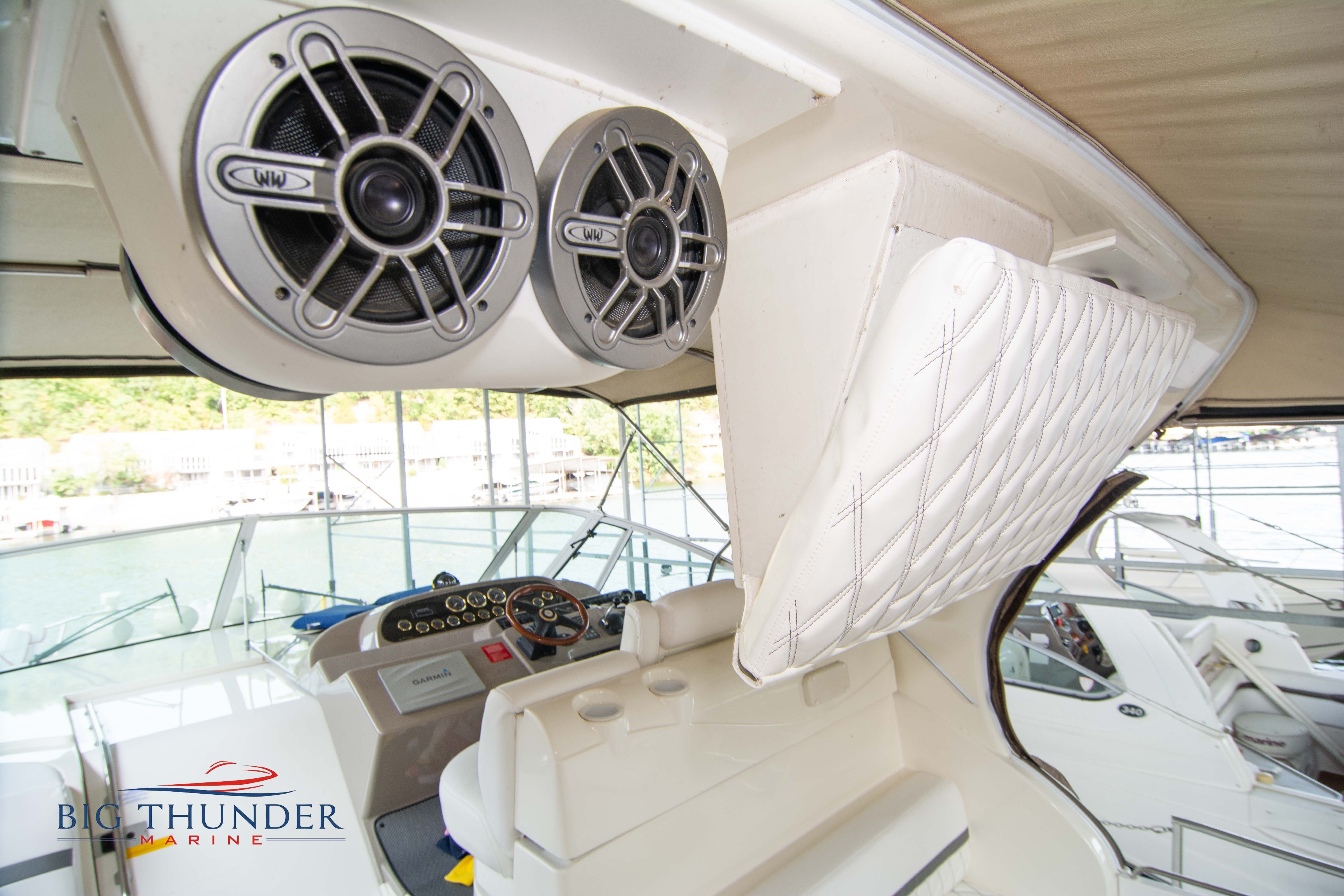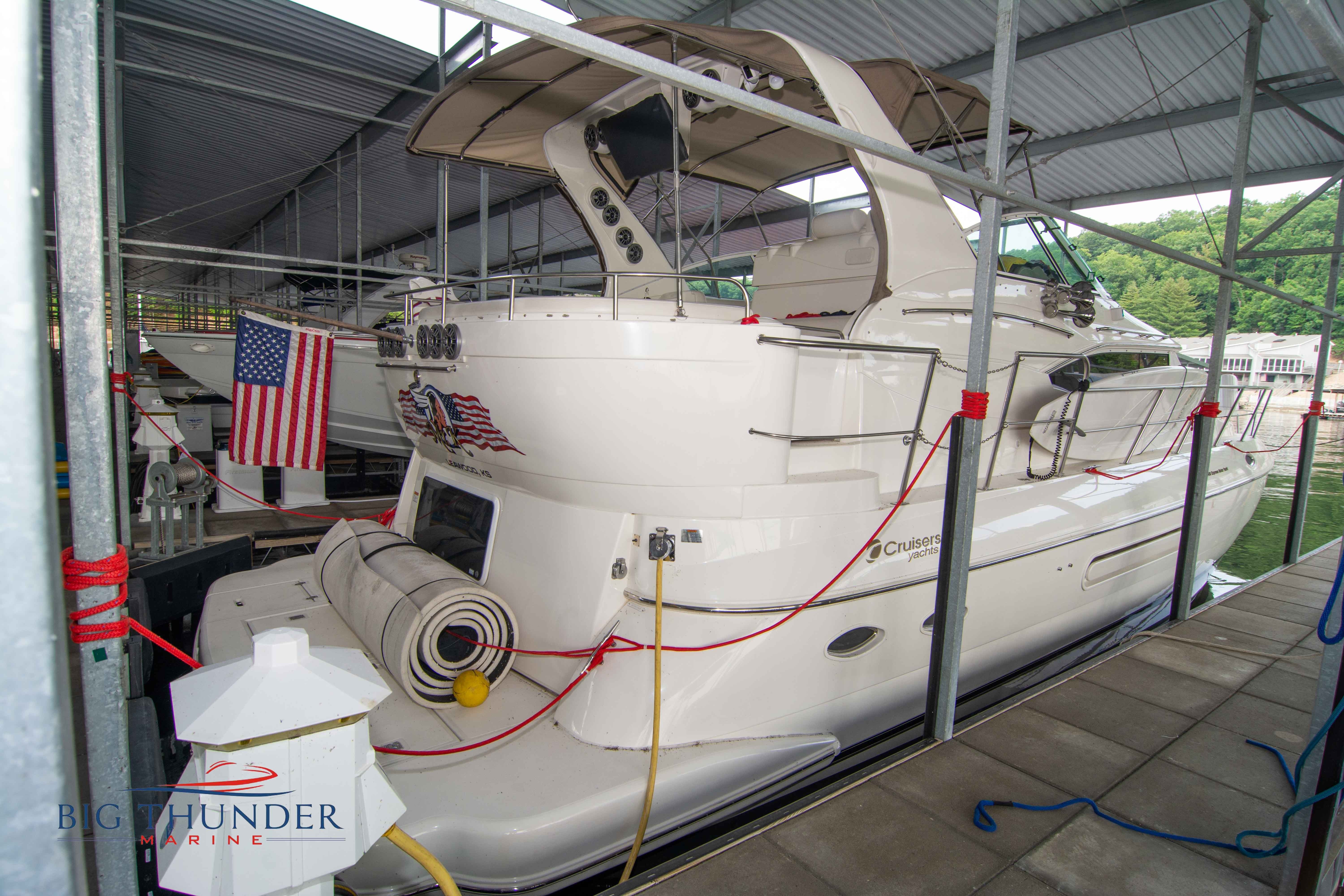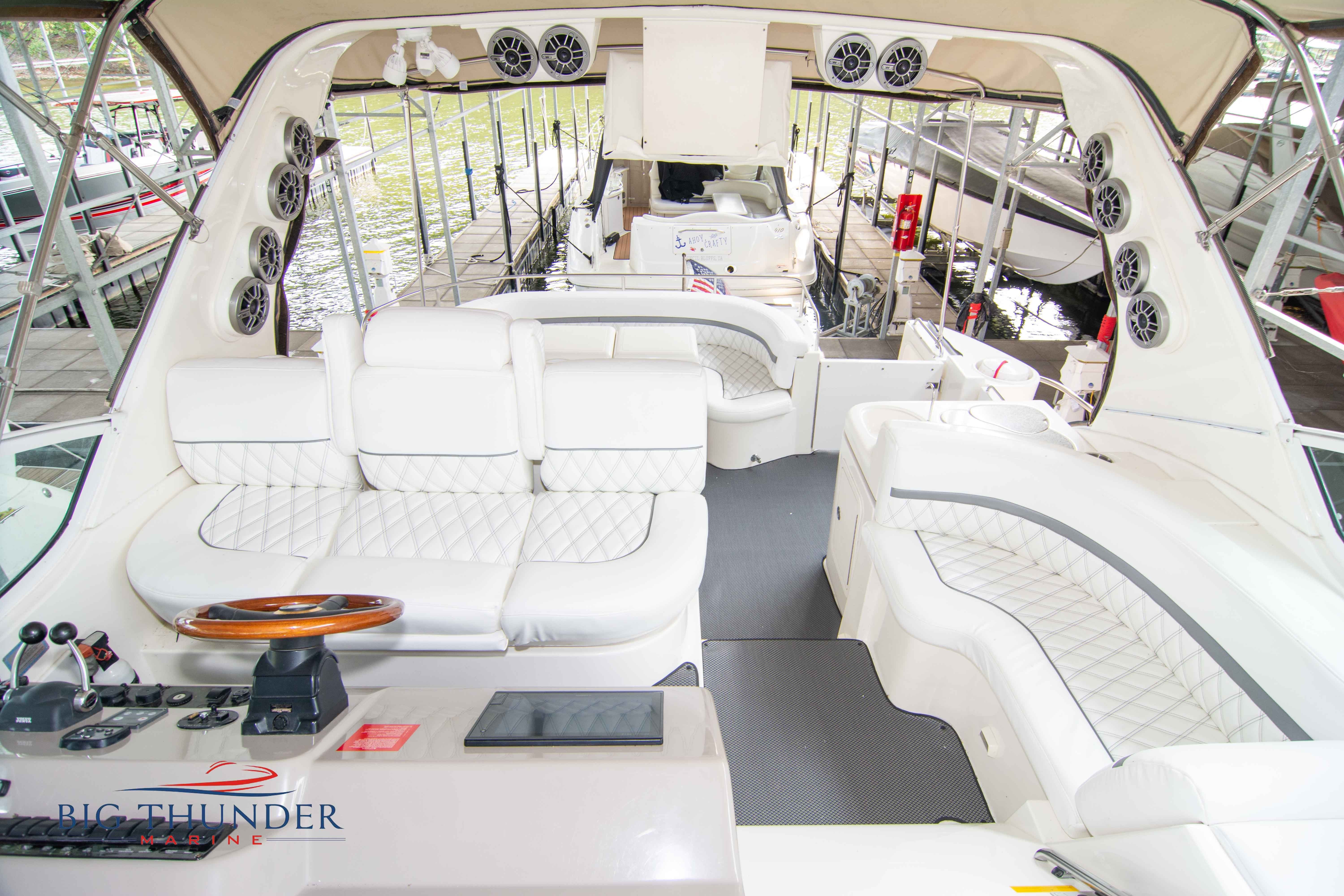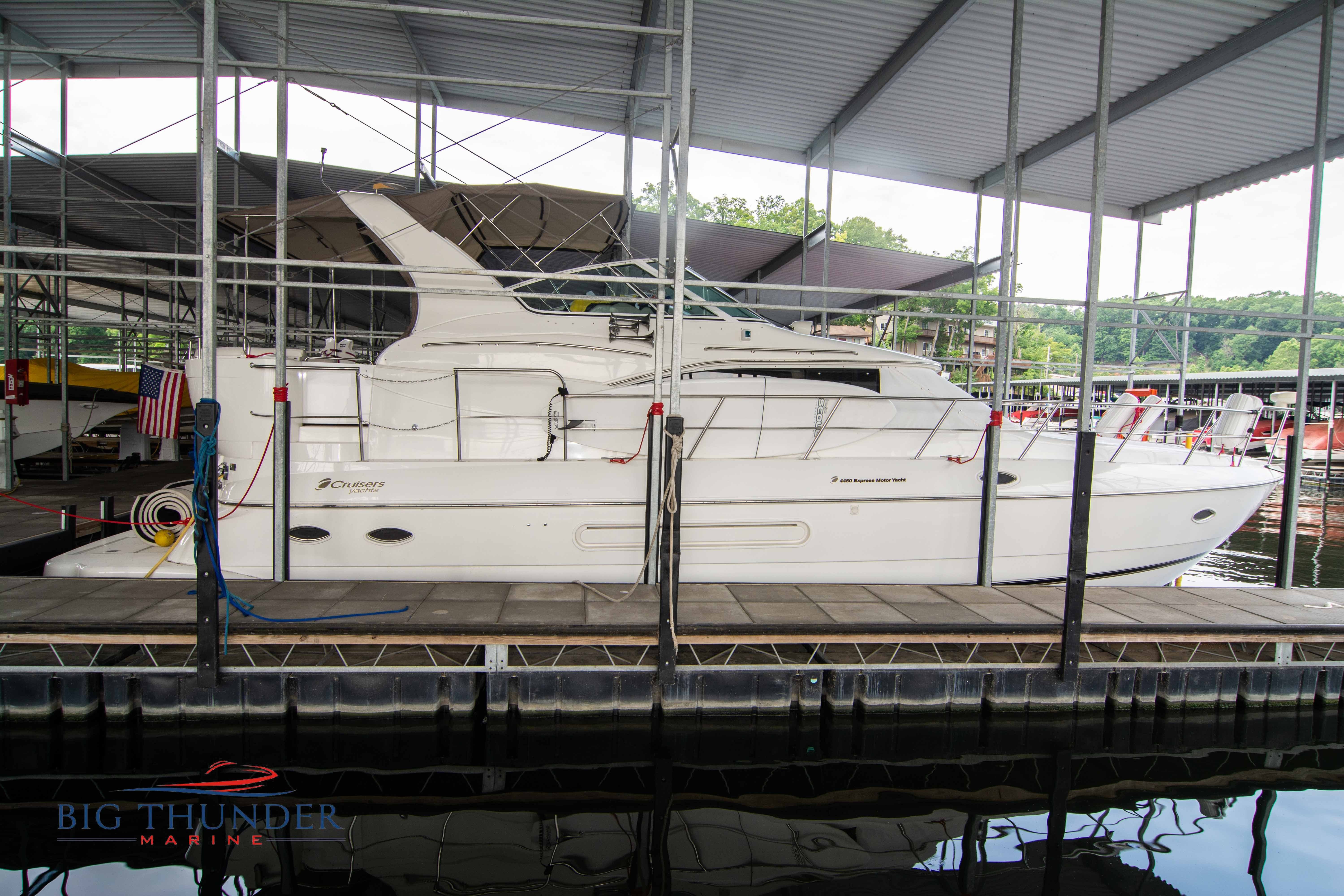 2002 Cruisers Yachts 4450 All aboard this immaculate, meticulously maintained by one owner express motoryacht! Vessel has been fresh water only its entire life, with all service and maintenance schedules kept. Offers all the advantages of express-style cruising and entertaining while keeping with the luxury at-home accommodations of a triple-stateroom aft aft cabin motoryacht. Complete inside and out professional sound system installed and tuned by Waves & Wheels w/ its own battery system, Express style seating, Companion helm, Full facing dinette, Master bath w/ HOT TUB & shower, Guest bath w/ shower, Cherry wood interior, Cabin large flatscreen & entertainment center, Cockpit flatscreen TV, Full gen heat & air, Hot water heater, Full fridge/ice maker, Full kitchen, Power windlass, Battery charging system. Too many features to list, this one must be seen. We consider all trades, financing options available. Call for more info and schedule a demo today!
