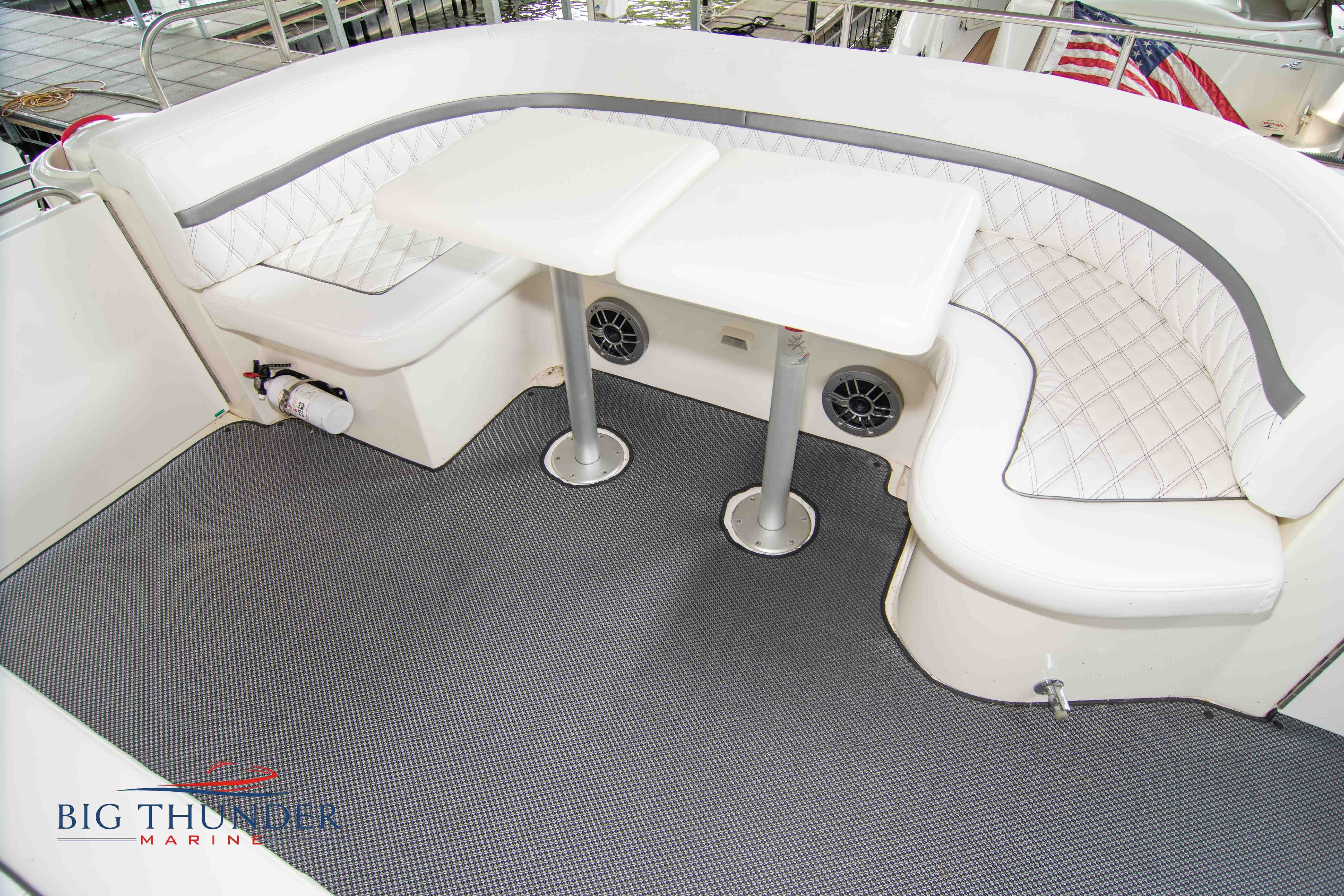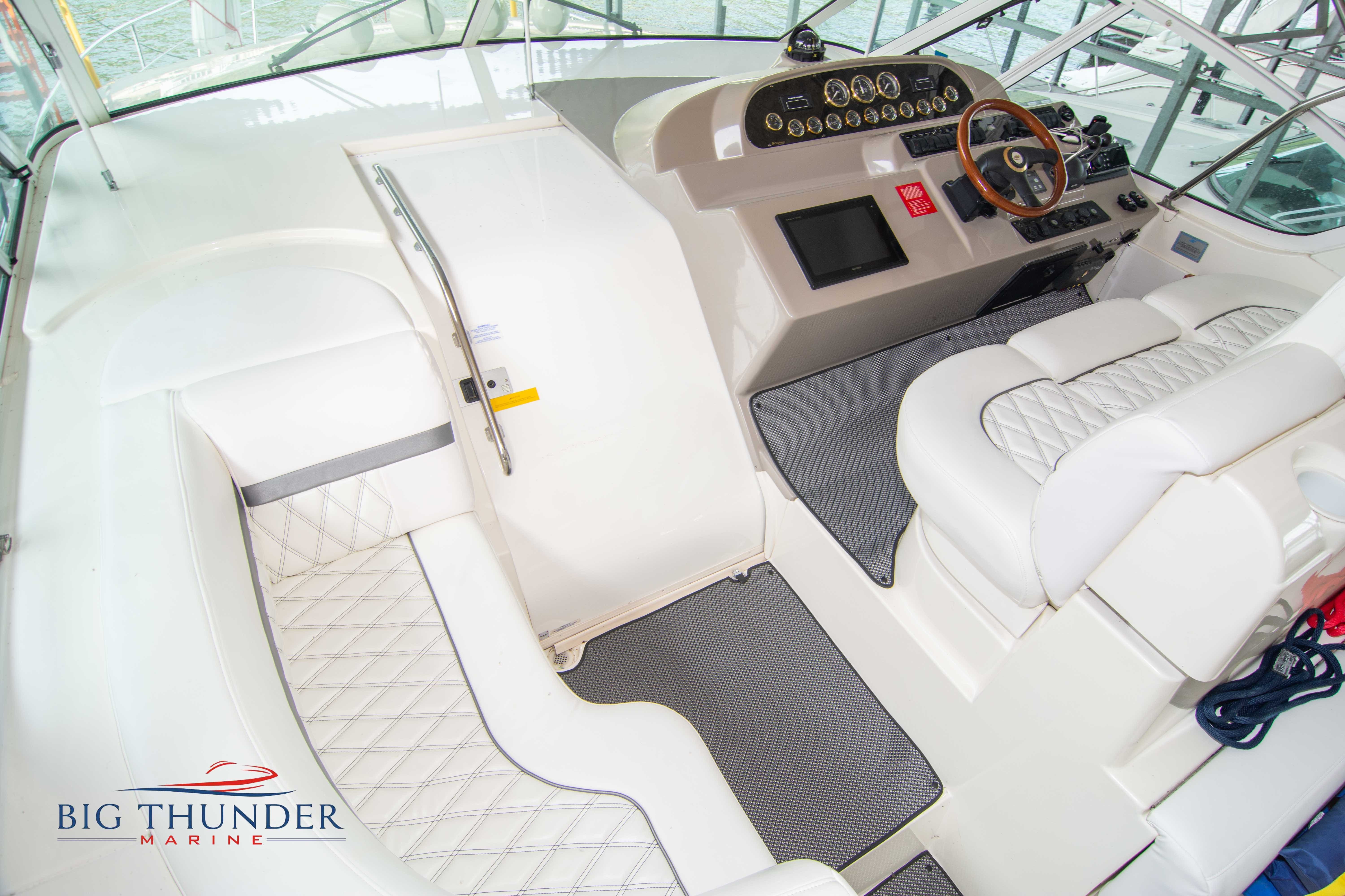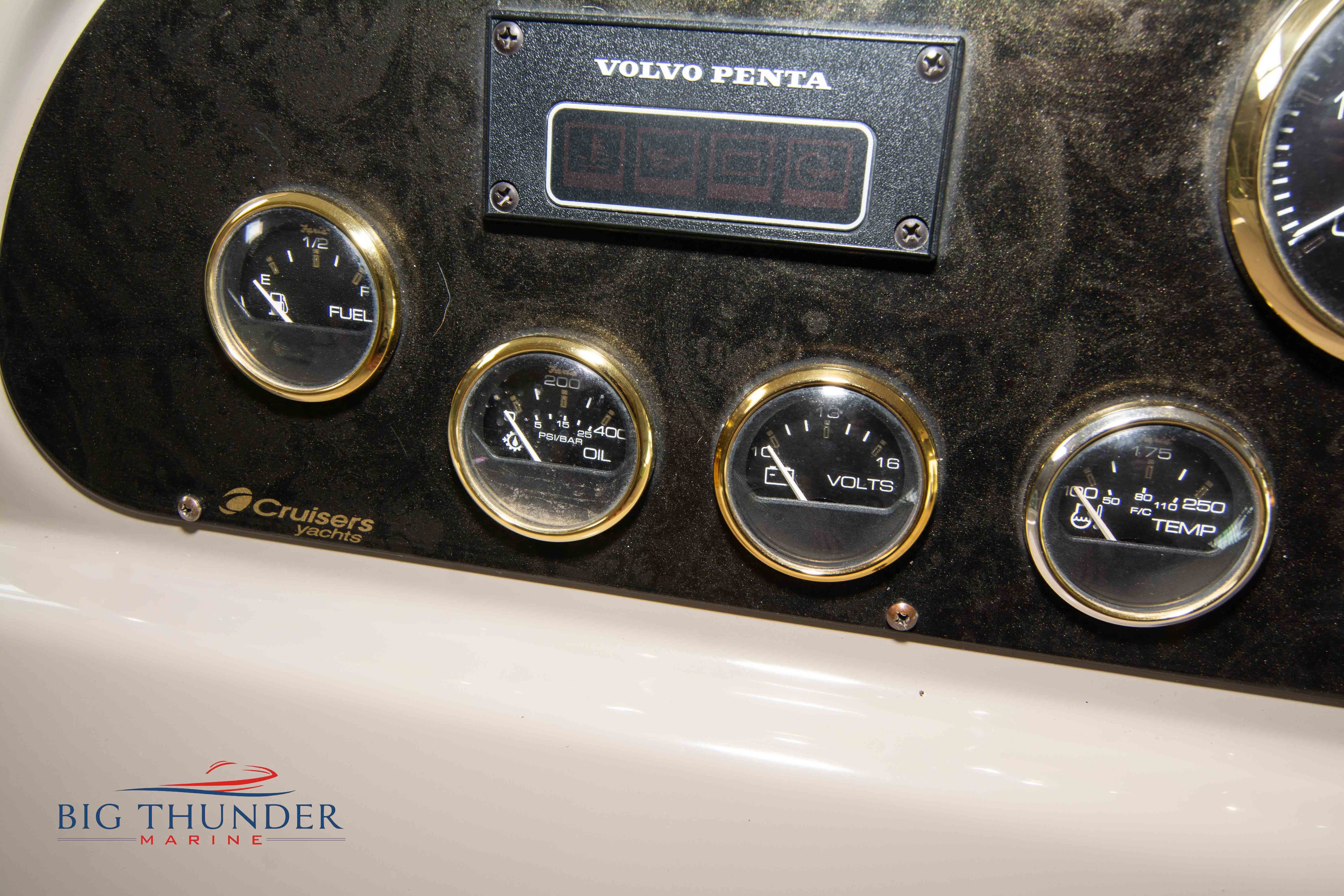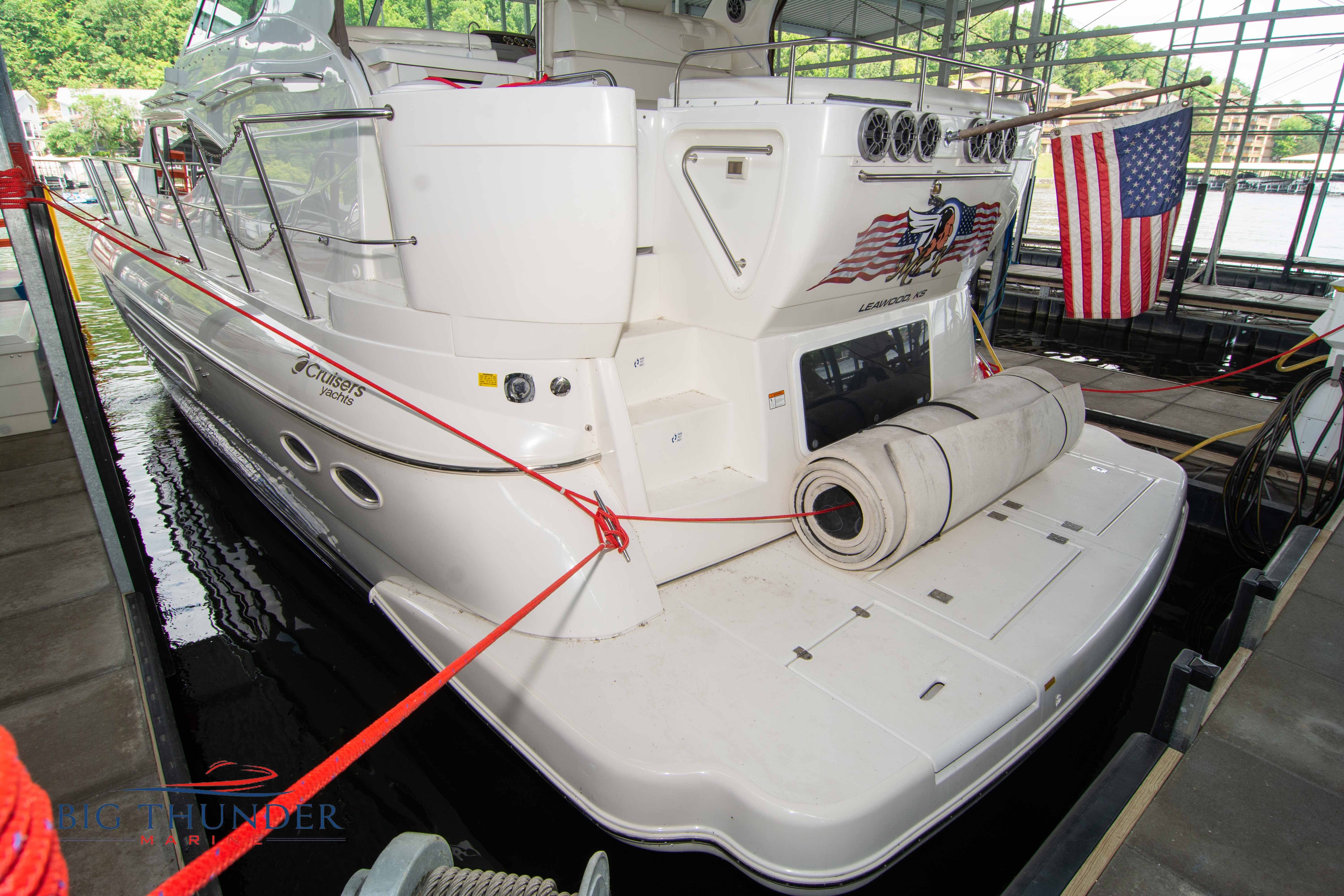 2002 Cruisers Yachts 4450 All aboard this immaculate, meticulously maintained by one owner express motoryacht! Vessel has been fresh water only its entire life, with all service and maintenance schedules kept. Offers all the advantages of express-style cruising and entertaining while keeping with the luxury at-home accommodations of a triple-stateroom aft aft cabin motoryacht. Complete inside and out professional sound system installed and tuned by Waves & Wheels w/ its own battery system, Express style seating, Companion helm, Full facing dinette, Master bath w/ HOT TUB & shower, Guest bath w/ shower, Cherry wood interior, Cabin large flatscreen & entertainment center, Cockpit flatscreen TV, Full gen heat & air, Hot water heater, Full fridge/ice maker, Full kitchen, Power windlass, Battery charging system. Too many features to list, this one must be seen. We consider all trades, financing options available. Call for more info and schedule a demo today!